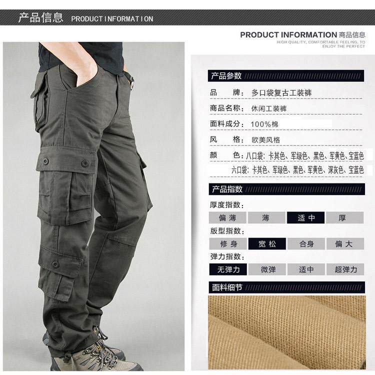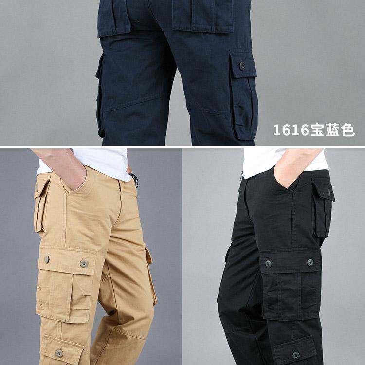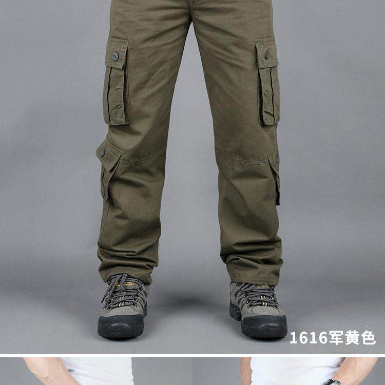Men's Cargo Pants, Pure Cotton, Straight-Leg, Loose Fit, Large Size, Spring and Autumn Style, Outdoor Hiking, All-Cotton, Wear-Resistant, Casual Pants with Multiple Pockets