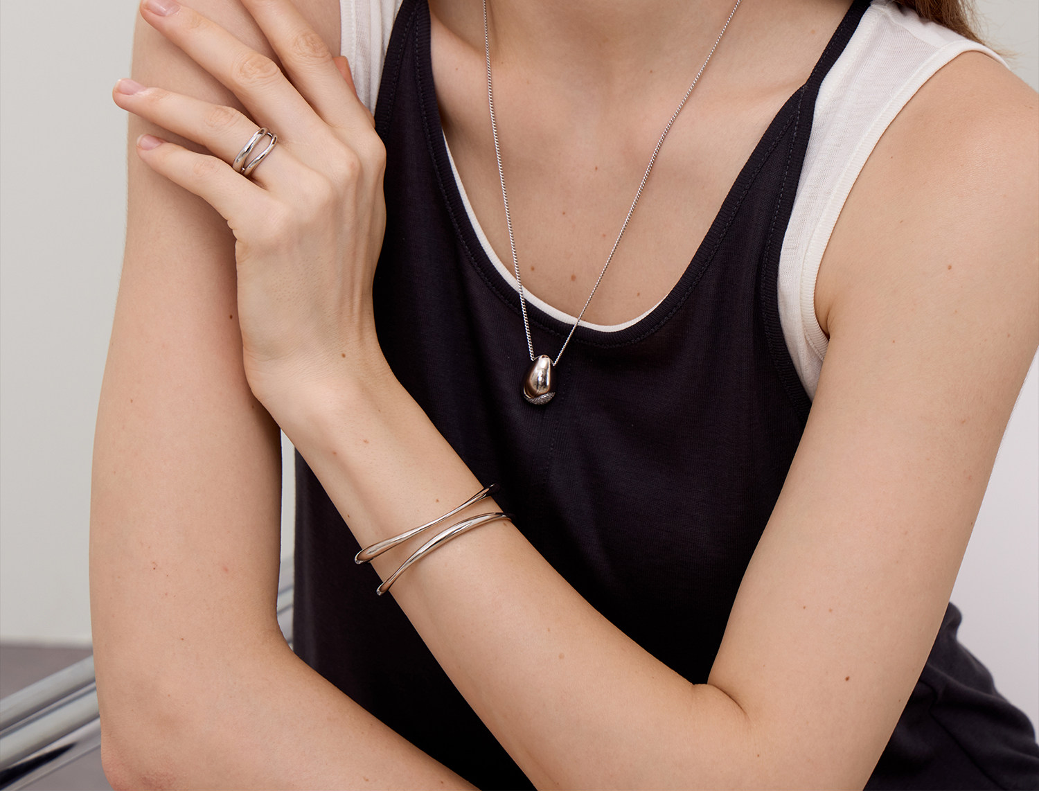 Arsis Streamlined Double-Layer Ring Versatile Niche French Minimalist Exquisite Open Ring for Women New Model