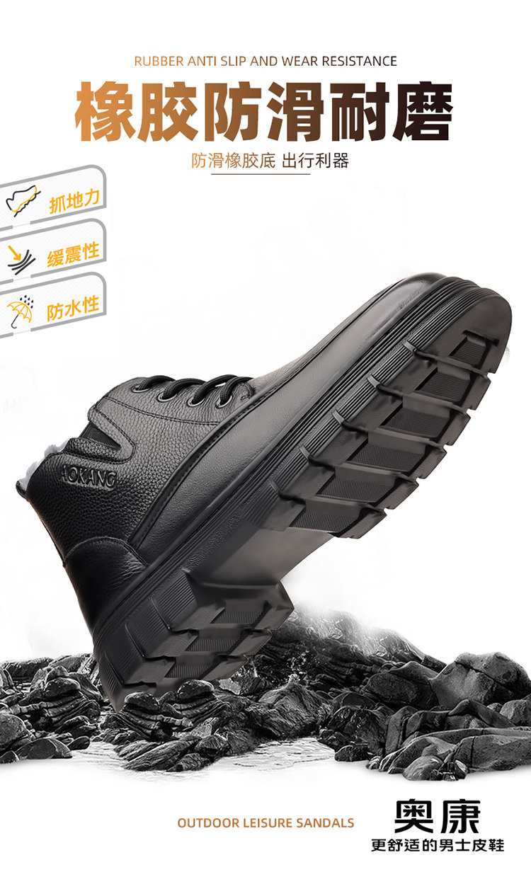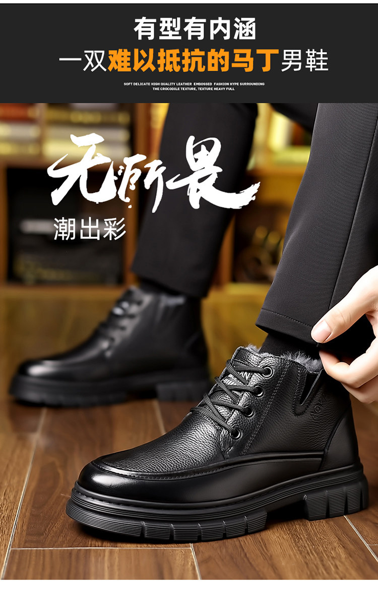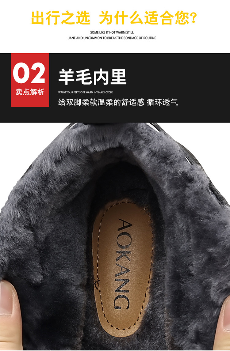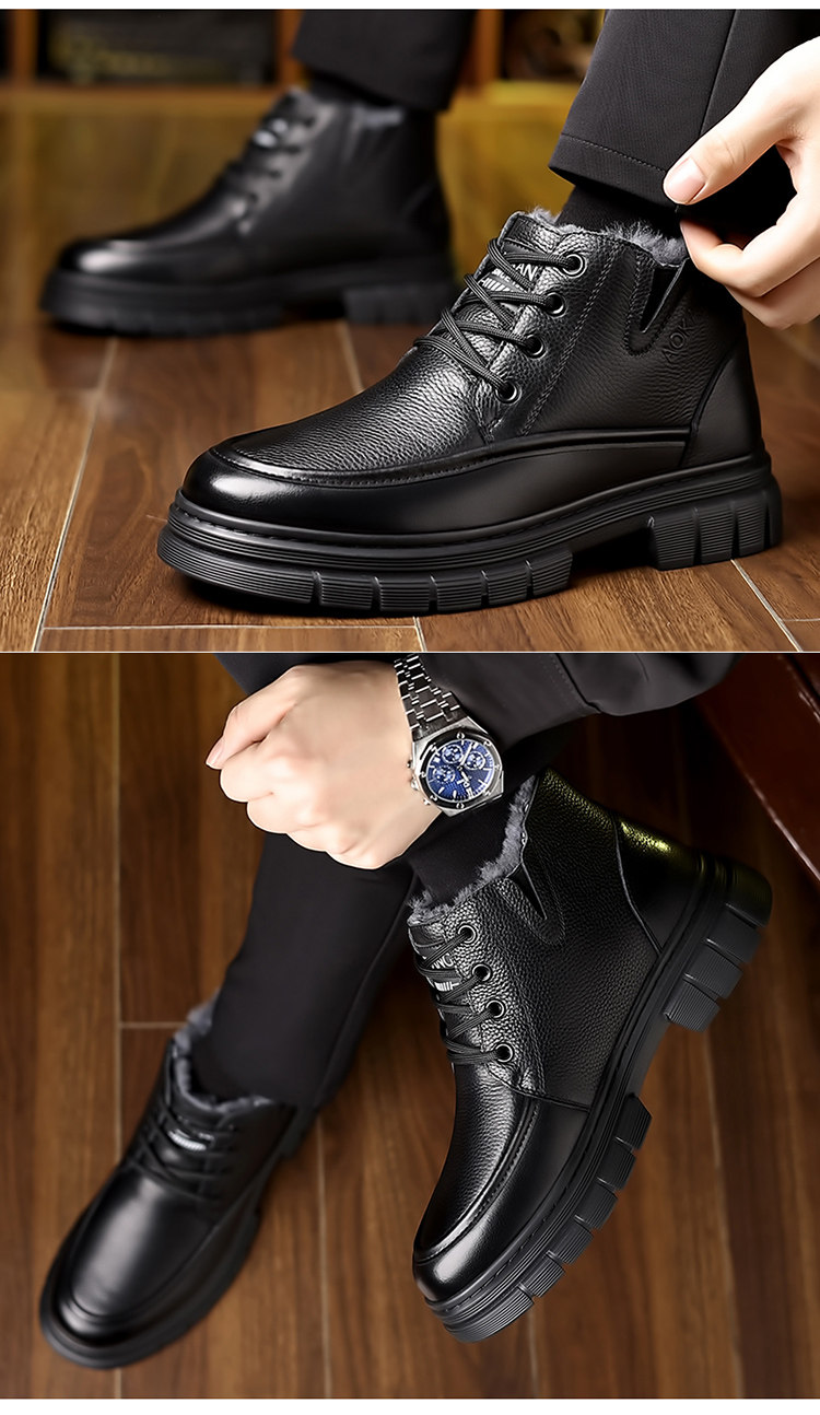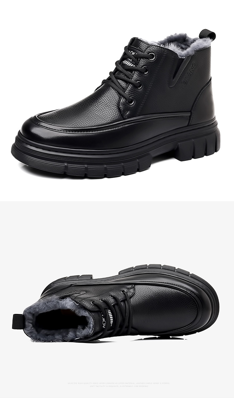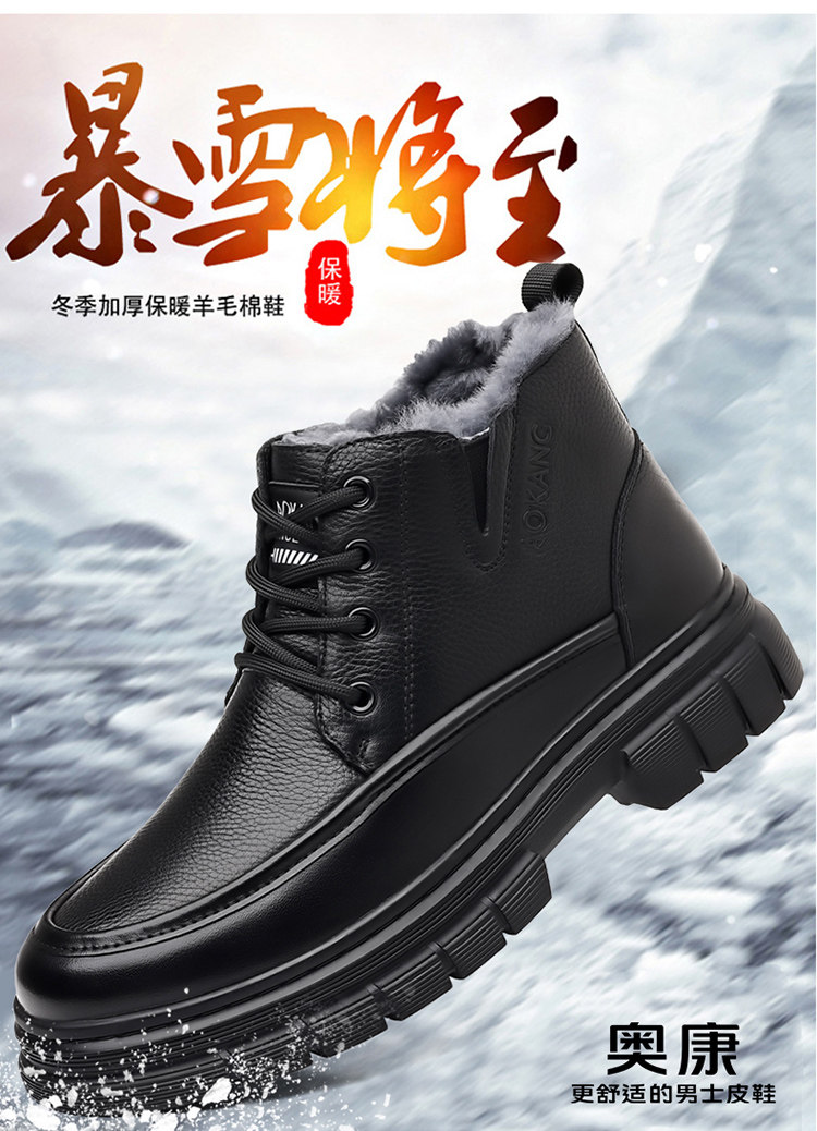 Aokang Men's Cotton Shoes 2025 Winter Genuine Leather Casual High-Top Warm Fleece-Lined Wool Middle-Aged and Elderly Dad's Cotton Leather Shoes