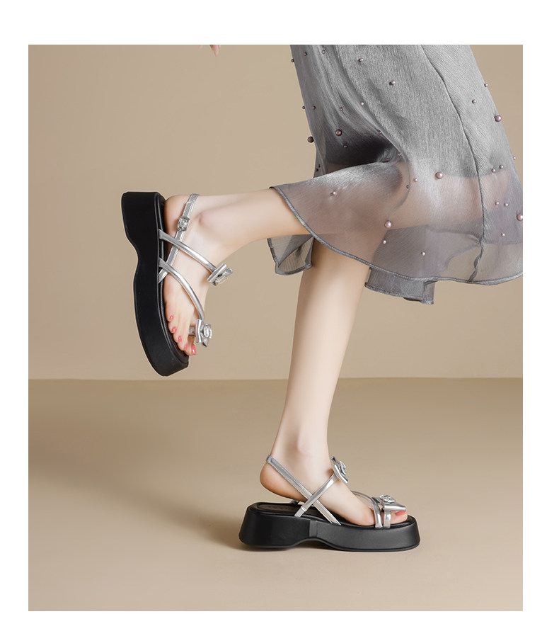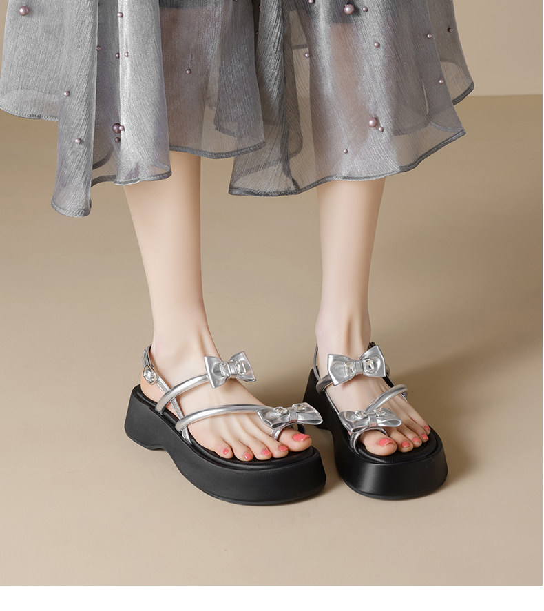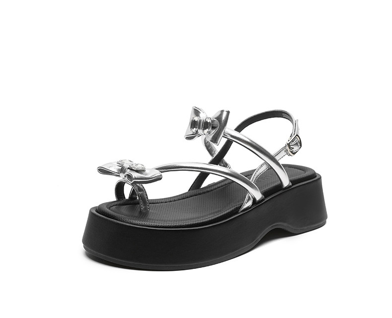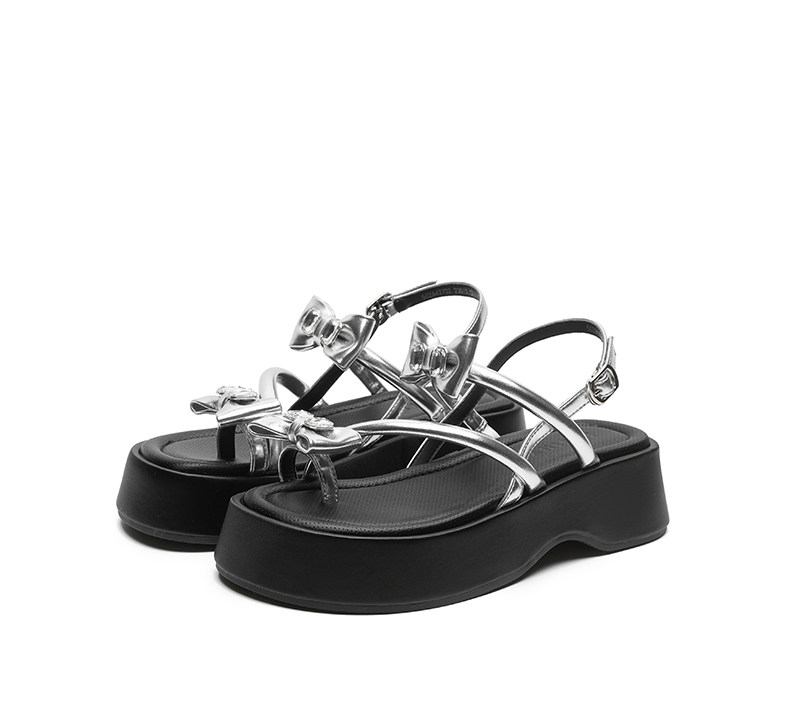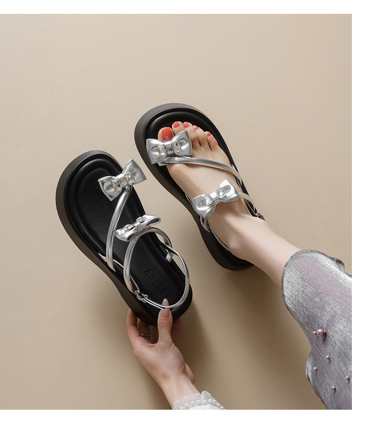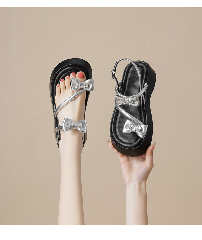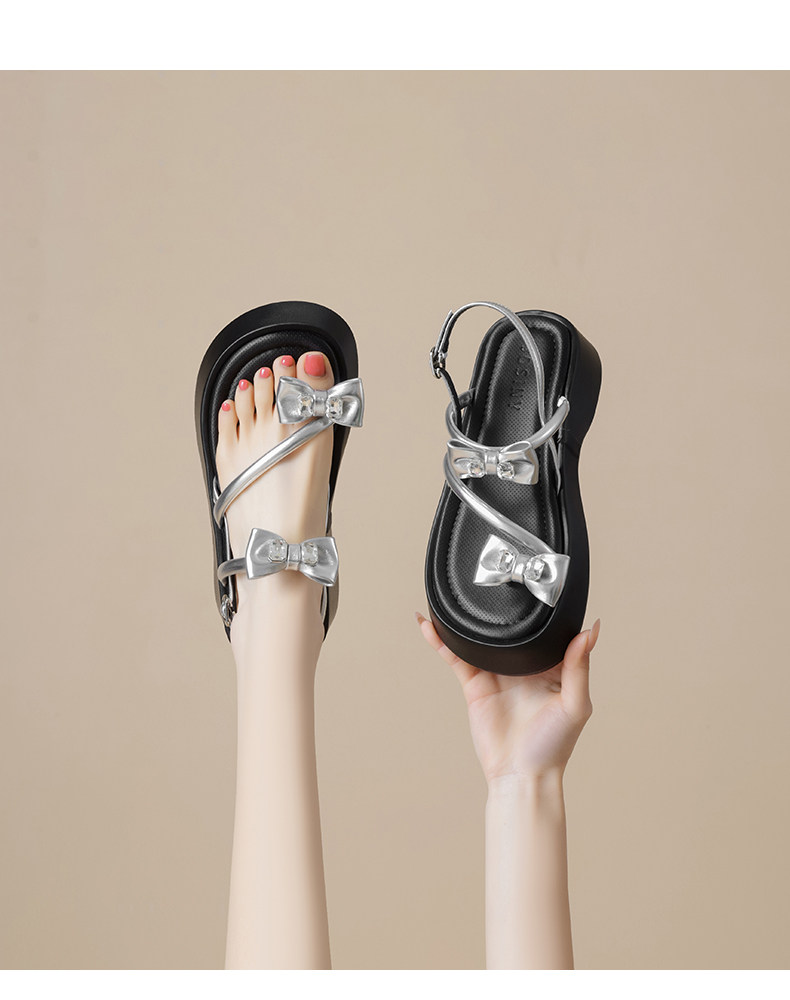 Zhuoshini Silver Sandals for Women 2026 Summer New Fairy Style Butterfly Women's Shoes Thick-Soled Height-Increasing Beach Sandals