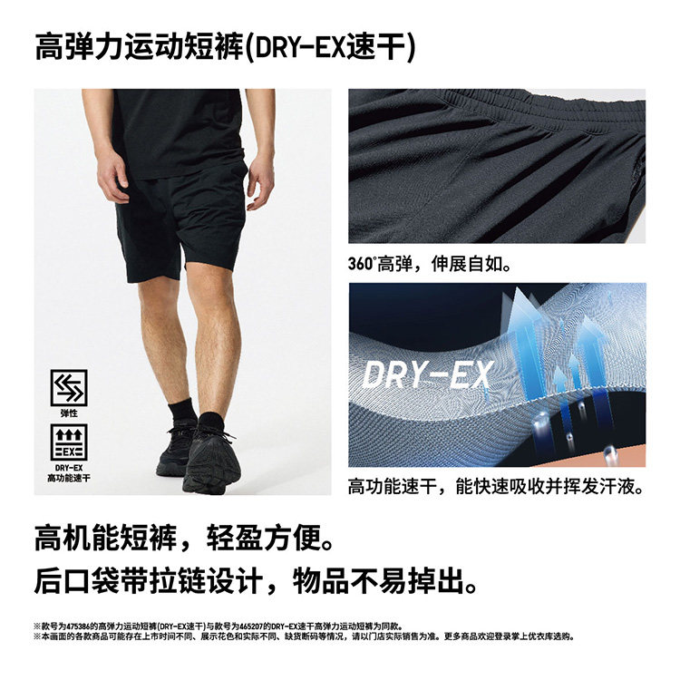 Uniqlo Men's and Women's Quick-Drying High-Elastic Sports Shorts Dry-Ex Pants Super Elastic 475386 465207