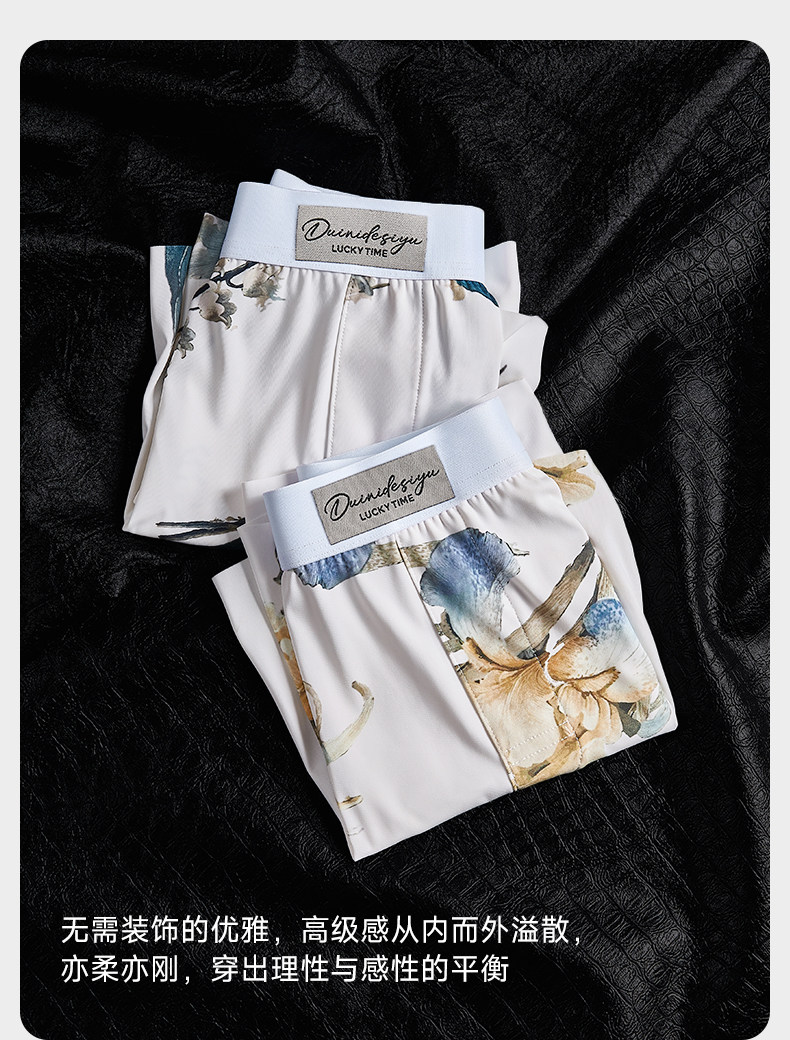 Whispering Ice Silk Boxer Briefs for Men, Summer Loose Home Pants, Breathable Large Size Underwear, Seamless Men's Style