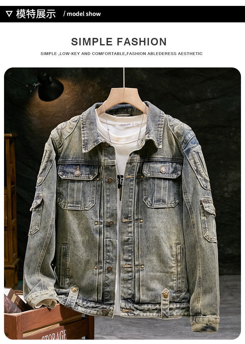 Overbearing and Overflowing with Confidence | Heavyweight Vintage Distressed Denim Jacket for Men, Trendy and Unique Design, Biker Jacket with a High-End Feel.