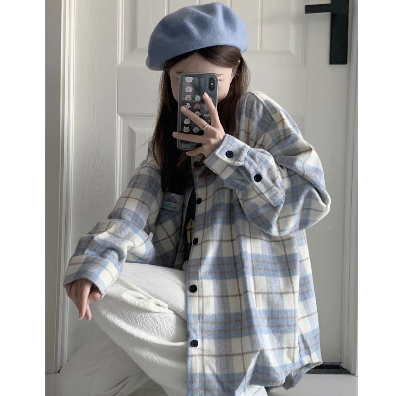 La Chapelle Plaid Long-Sleeve Shirt for Women 2026 New Style Petite Thin Summer Loose Cardigan Top