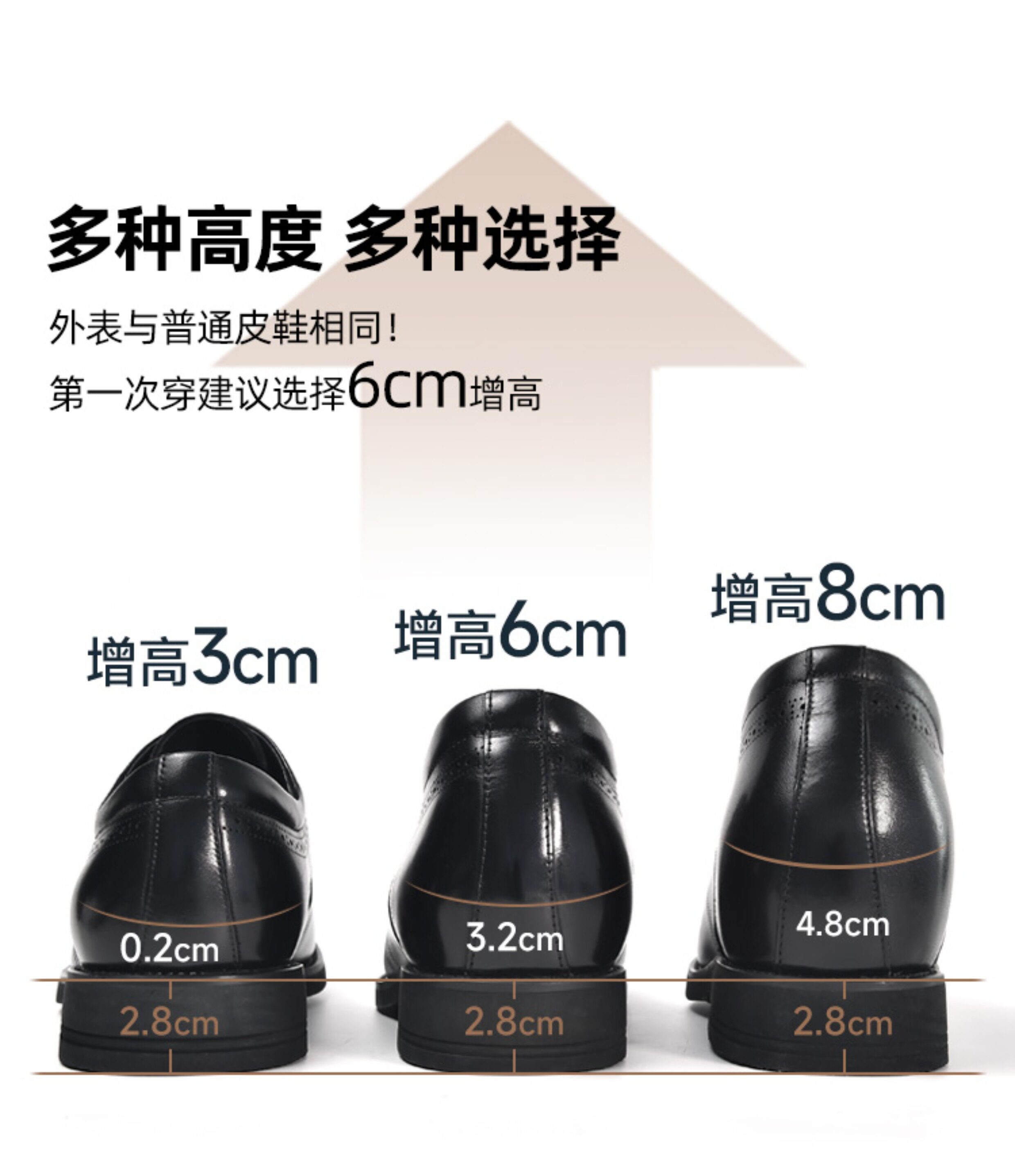 1m8 Height-Increasing Brogue Retro Groom Shoes Genuine Leather Men's Shoes Business Formal 6cm Wedding Shoes Invisible Casual Shoes