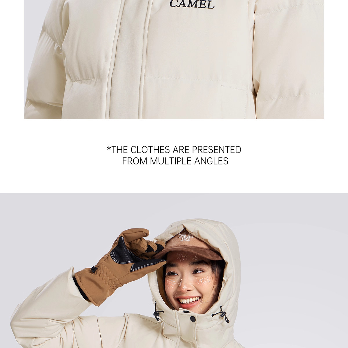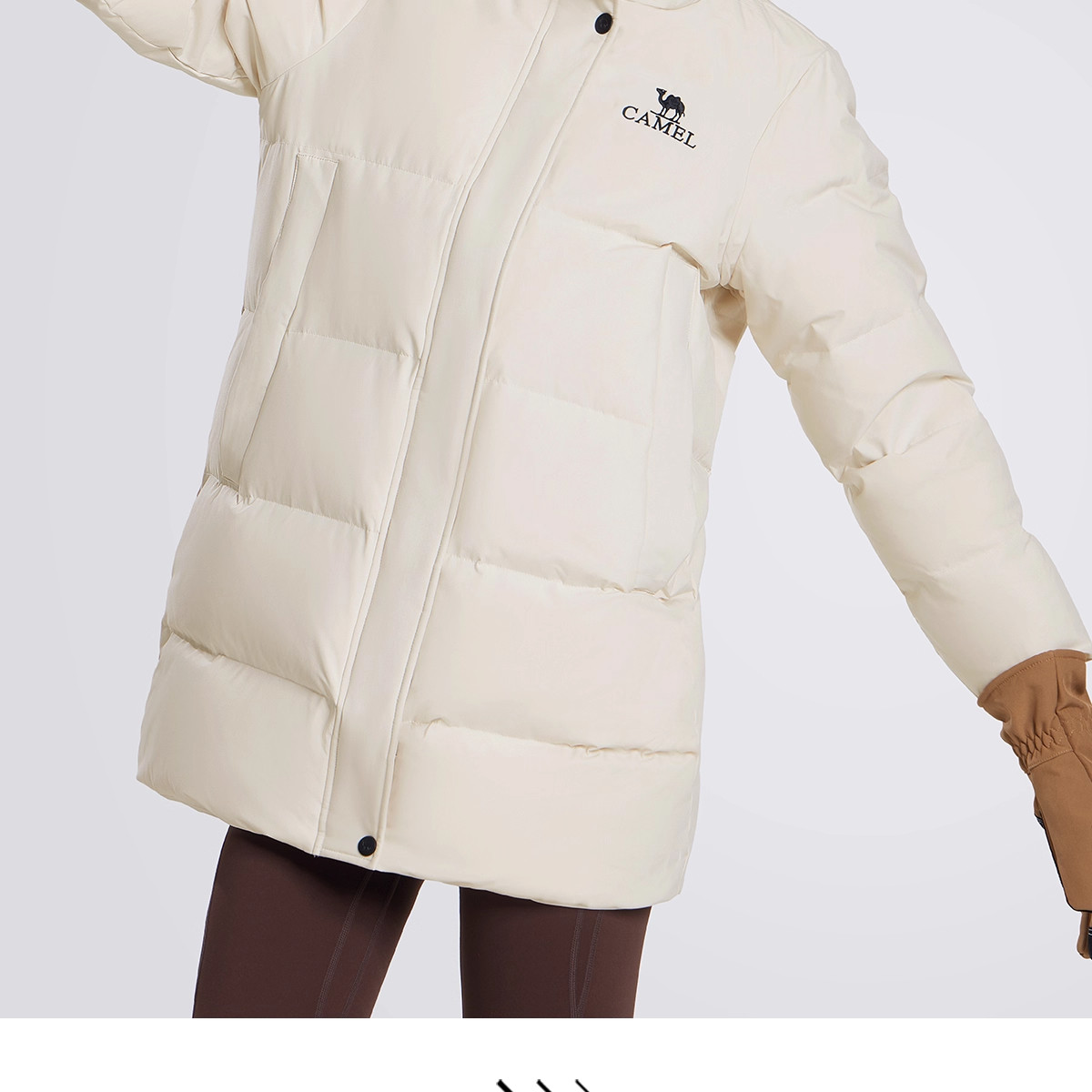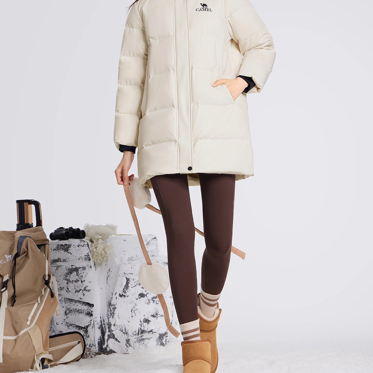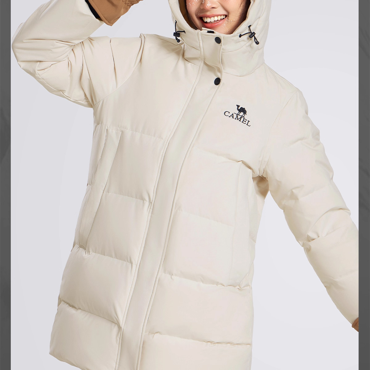 Clearance Camel Outdoor Mid-Length Hooded down Jacket for Women, Winter Coat, Thickened and Warm Parka, Men's down Jacket