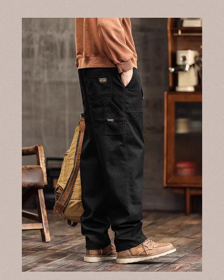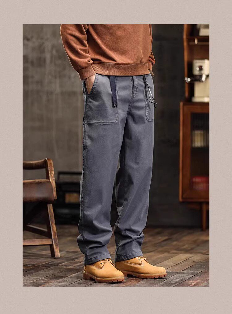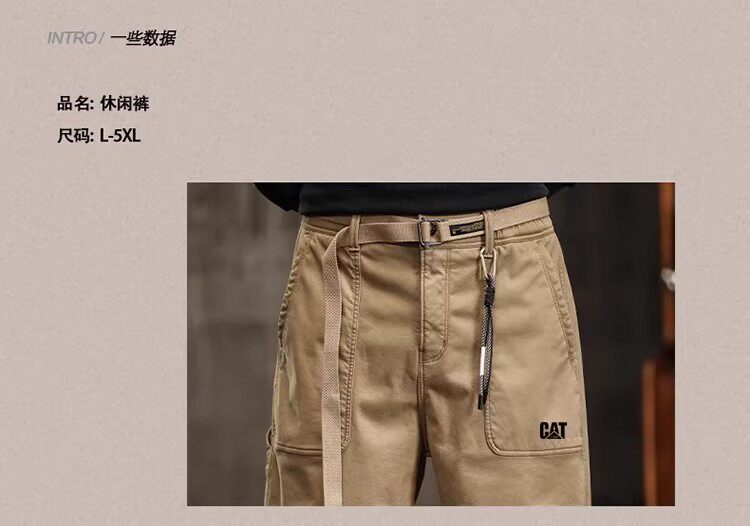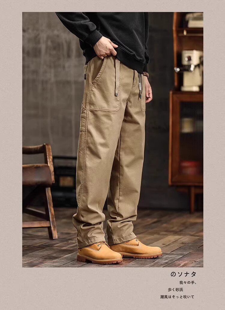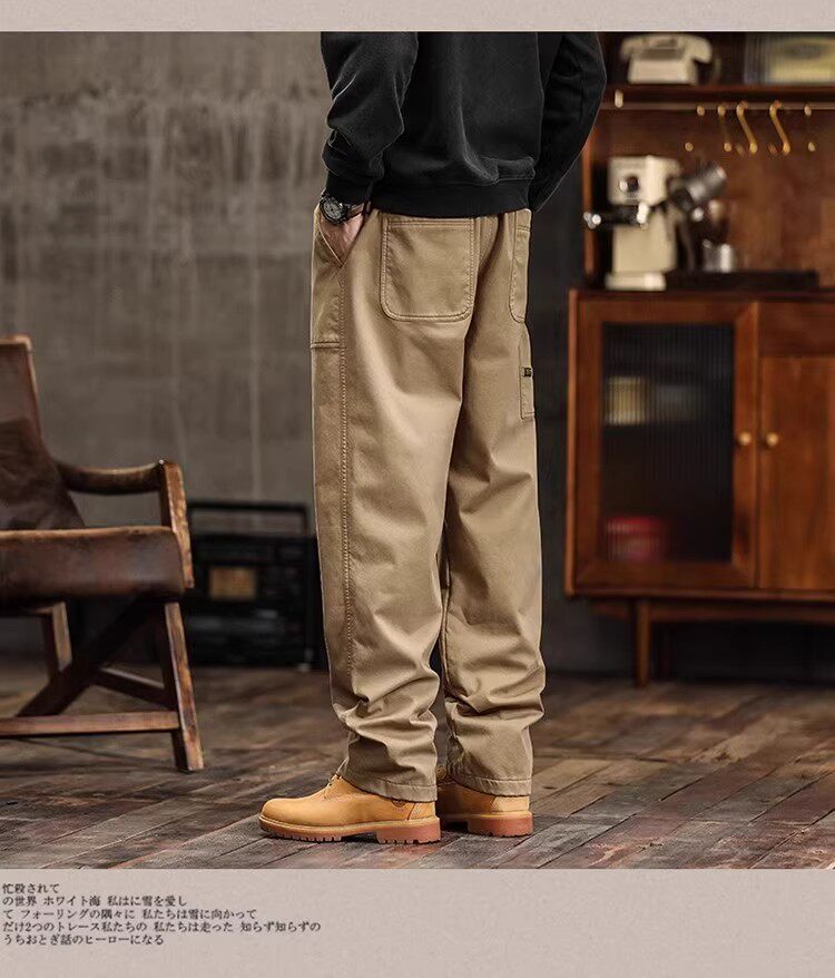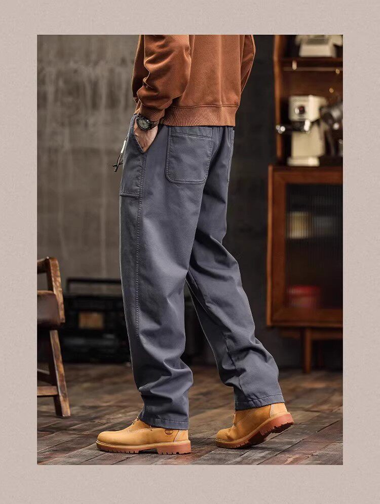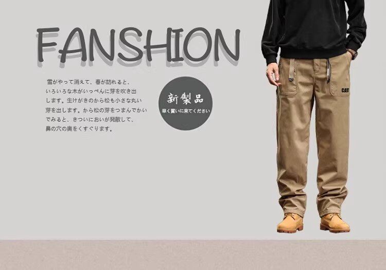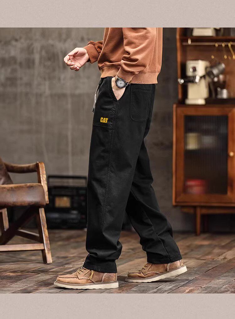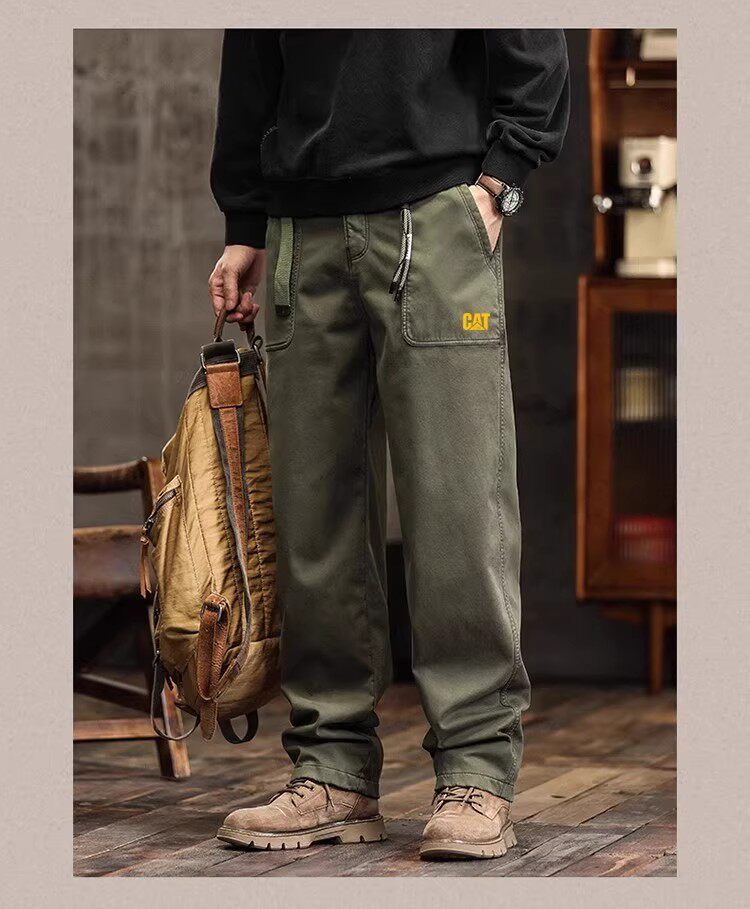 Men's Work Pants for Spring and Autumn, Durable Straight-Leg Trousers, Cat Brand, Pure Cotton, Washed American-Style Outdoor Casual Pants