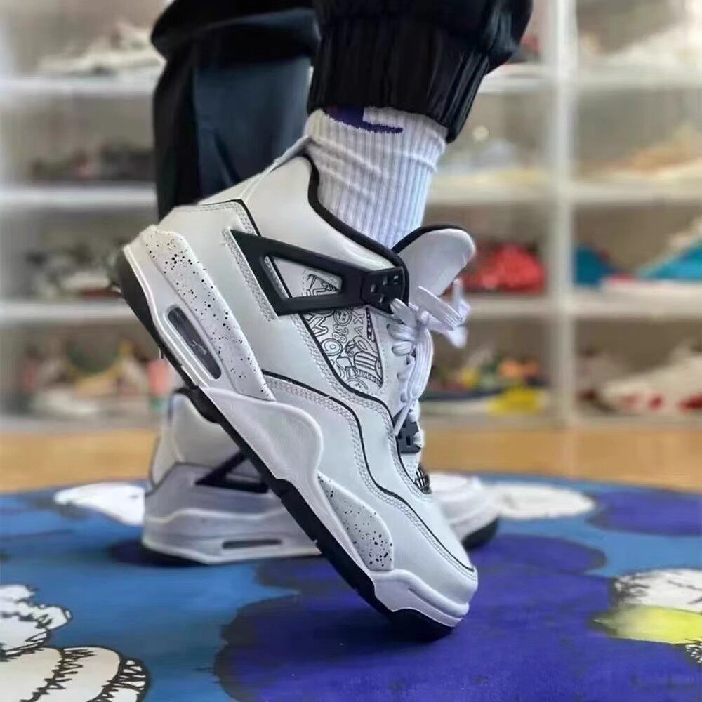 2025 New Basketball Shoes Midnight Blue Men's Shoes Aj4 Gray Rabbit Fear Collaboration Model Electric Mother-Daughter Sneakers