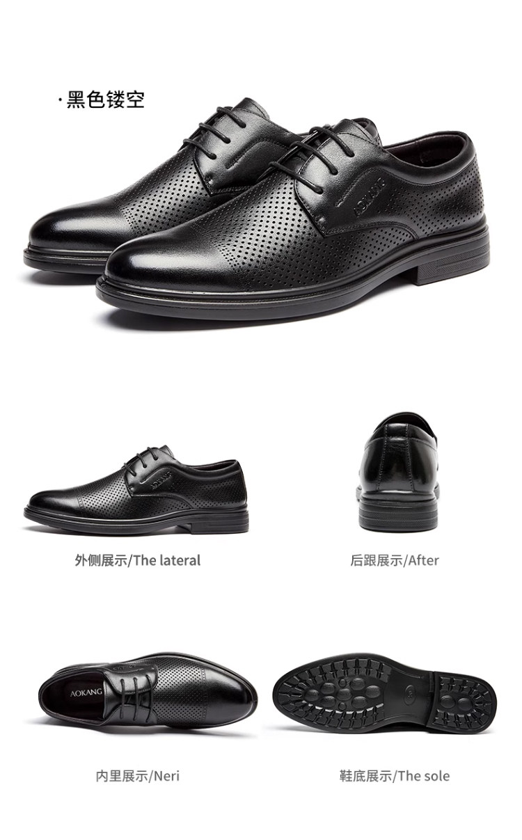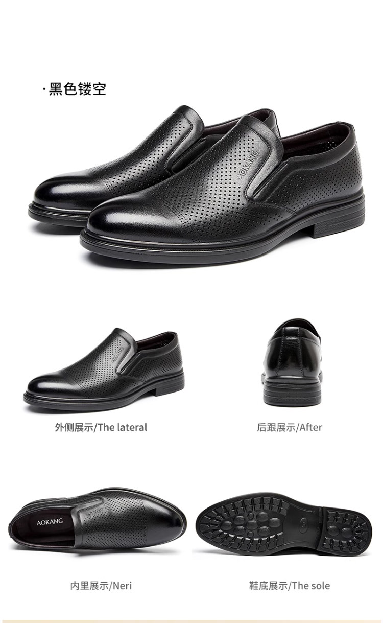 Aokang Men's Sandals 2026 Summer Hollow Breathable Genuine Leather Business Formal Men's Soft Sole Leather Shoes Large Size Clogs