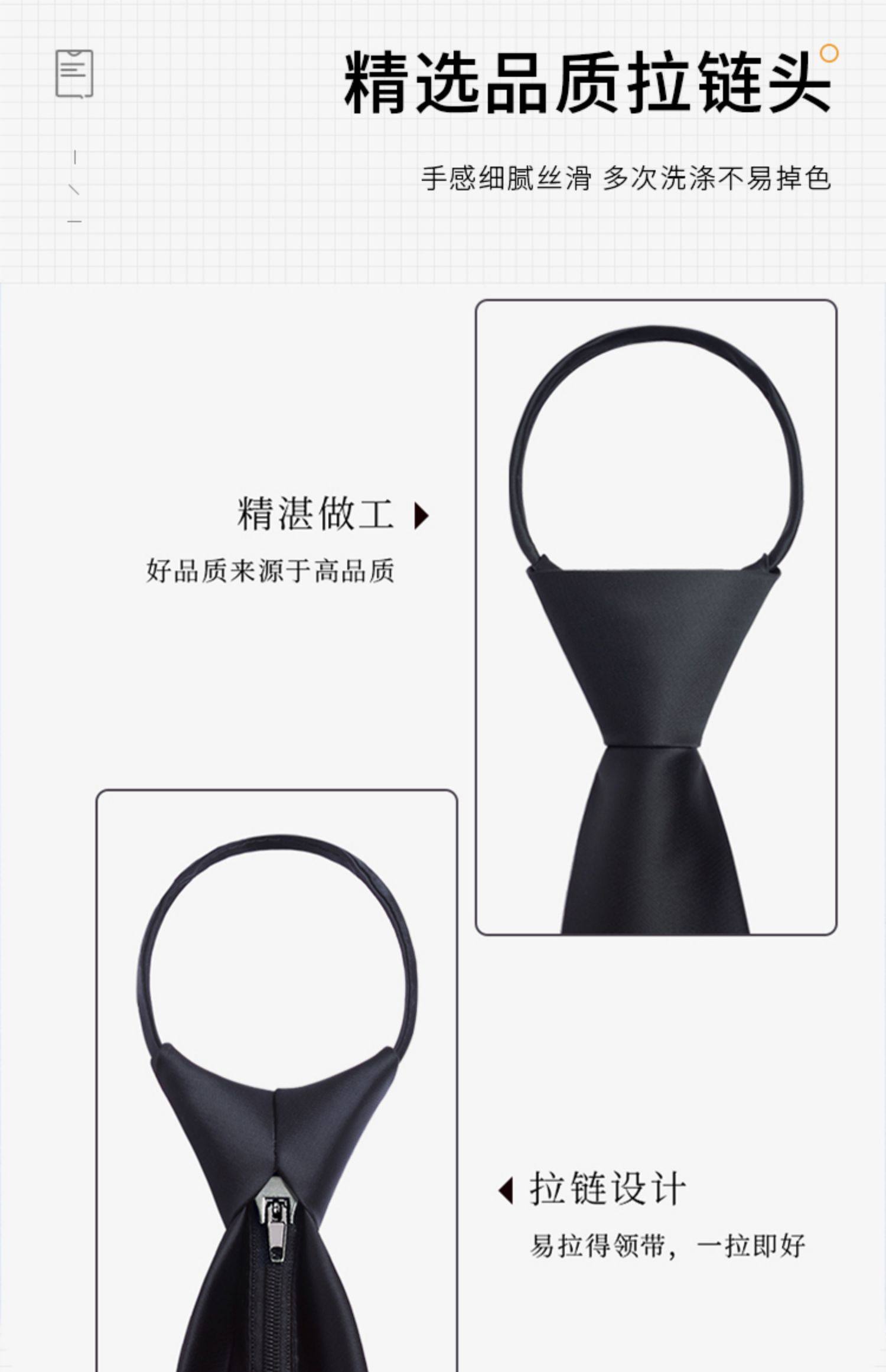 Pure Black Glossy Tie for Men and Women, Zipper Style, Formal Wear, No Need to Tie, Easy to Pull, Hand-Tied Style, Casual Hong Kong Style, Korean Style