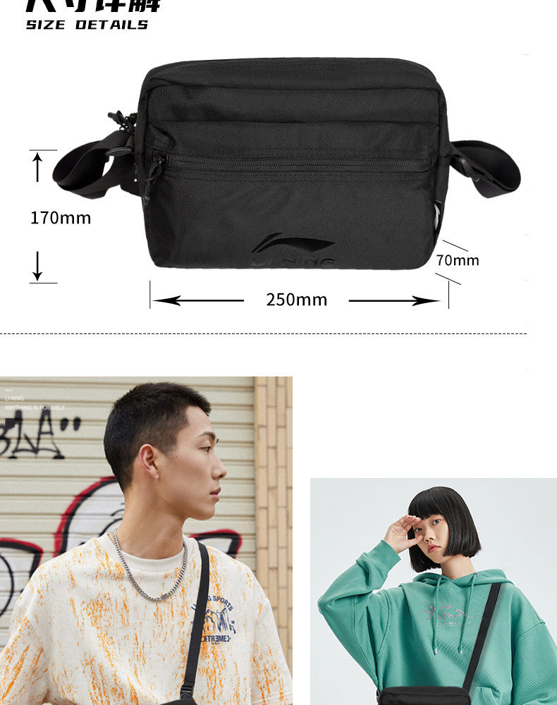 Li-Ning Crossbody Bag for Men, Large Capacity Canvas Shoulder Bag, Chest Bag, Commuter Bag, Portable Phone Bag for Dad, Small and Convenient