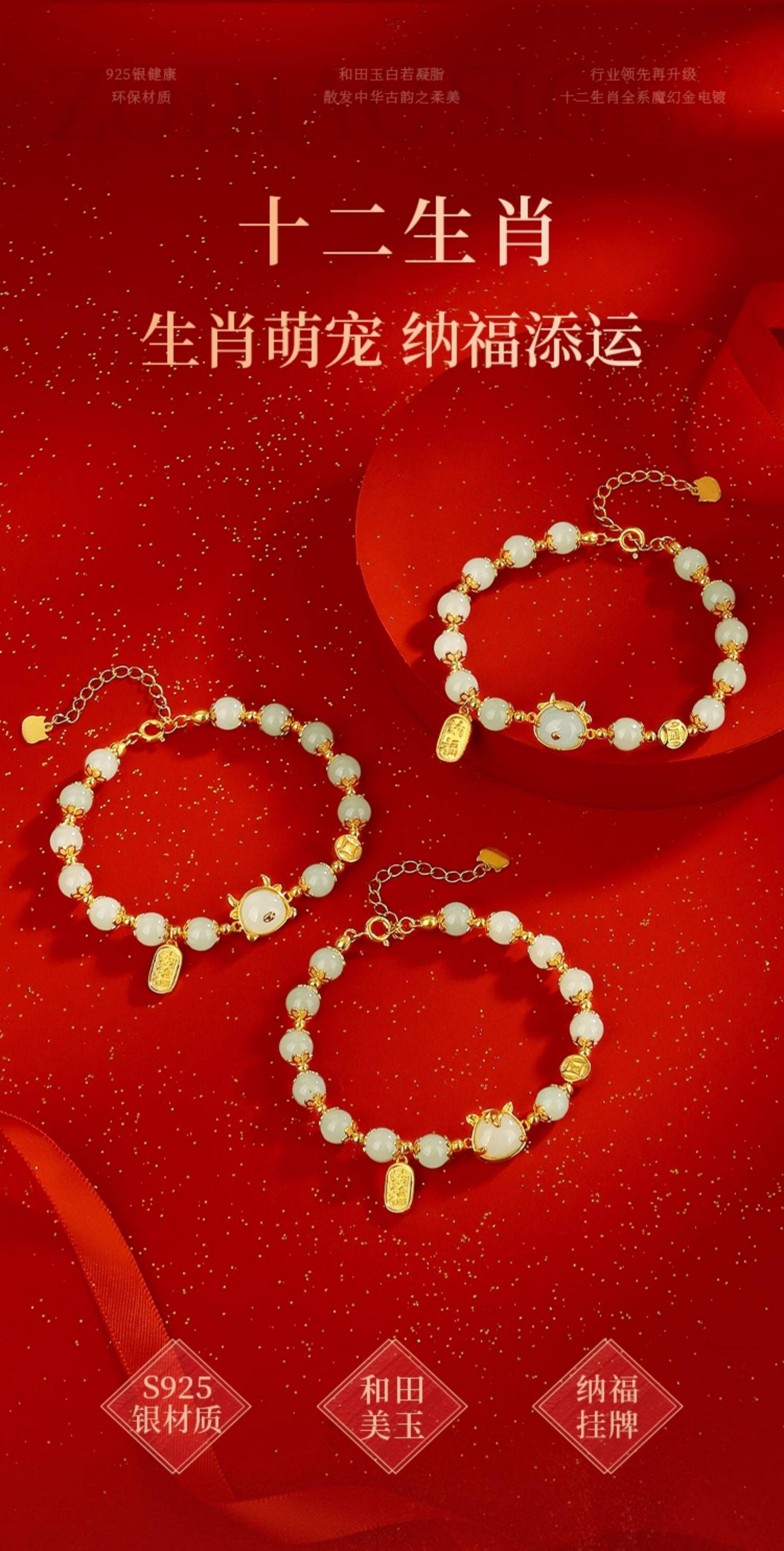 Sterling Silver Twelve Zodiac Hetian Jade Bracelet for Women, 2026 New Niche Bracelet, Silver Jewelry, Birthday Gift for Girls