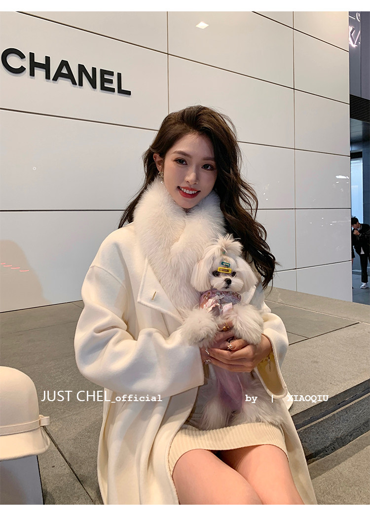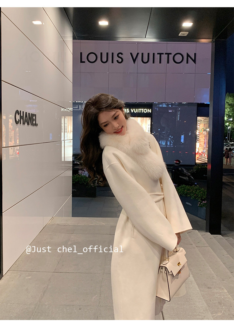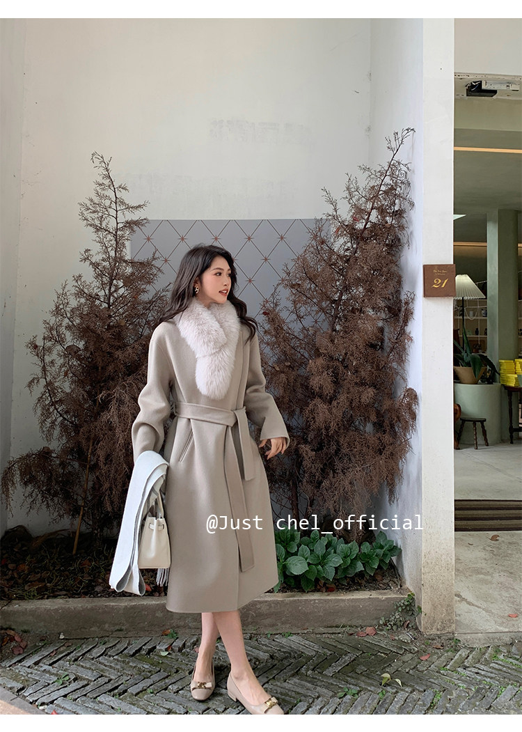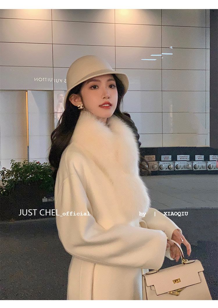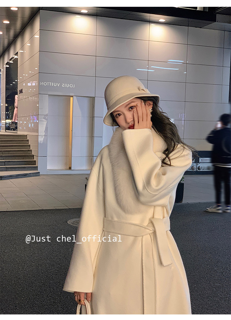 Overseas Daughter 2025 Winter New Double-Sided Wool Coat Women's Long Woolen High-End White Fur Collar Coat