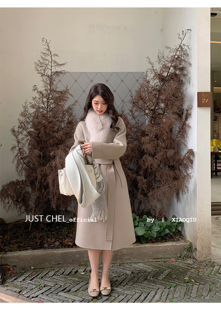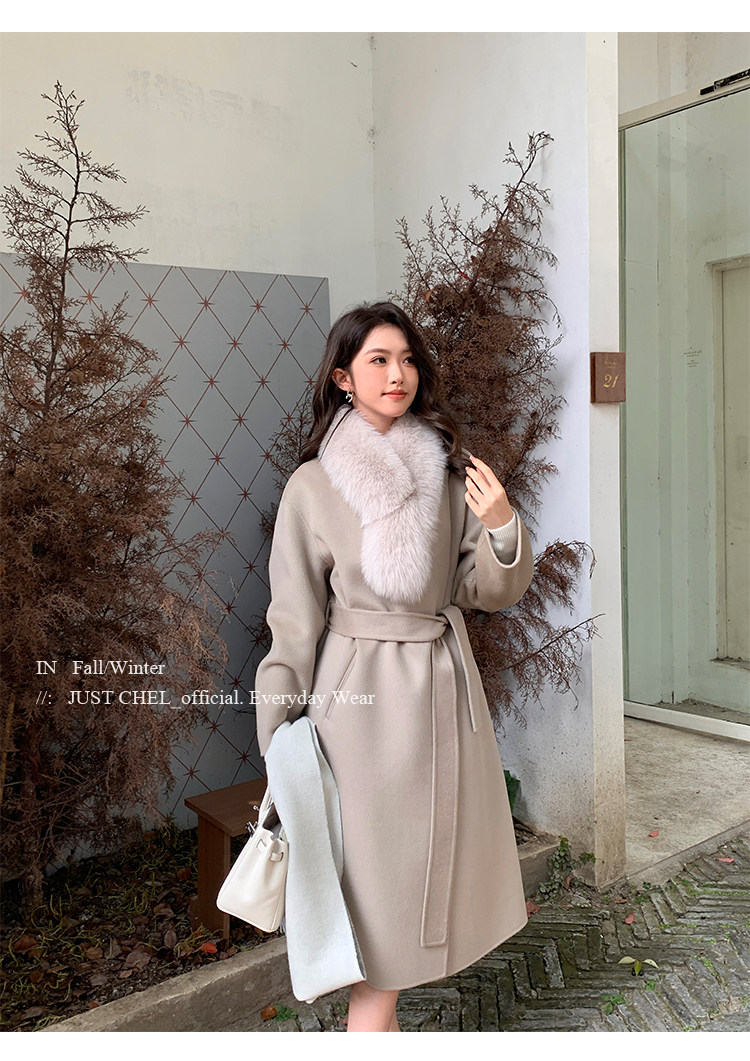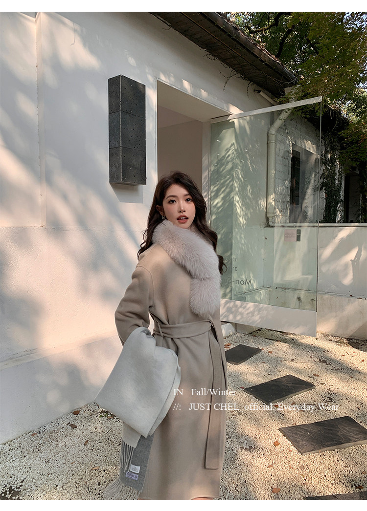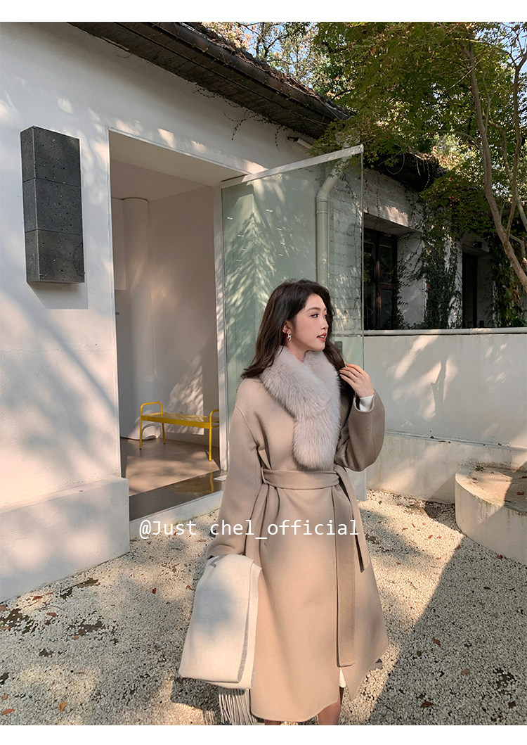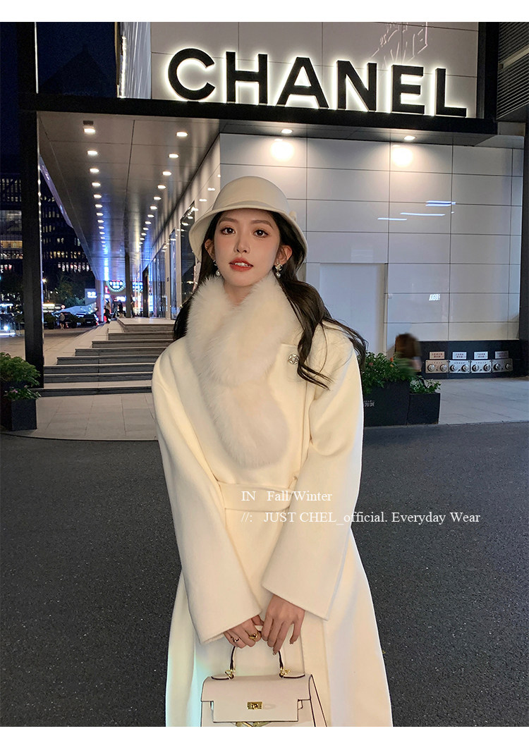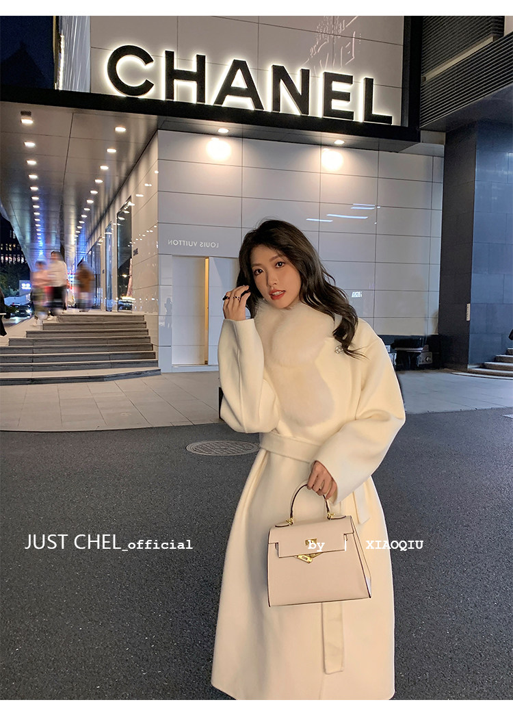 Overseas Daughter 2025 Winter New Double-Sided Wool Coat Women's Long Woolen High-End White Fur Collar Coat