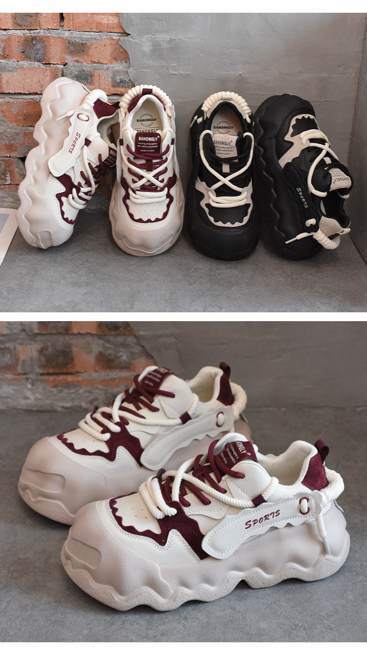 Hong Kong Style Height-Increasing Casual Sneakers for Women, 2026 Spring/Summer New Fashion Thick-Soled Chunky Dad Shoes