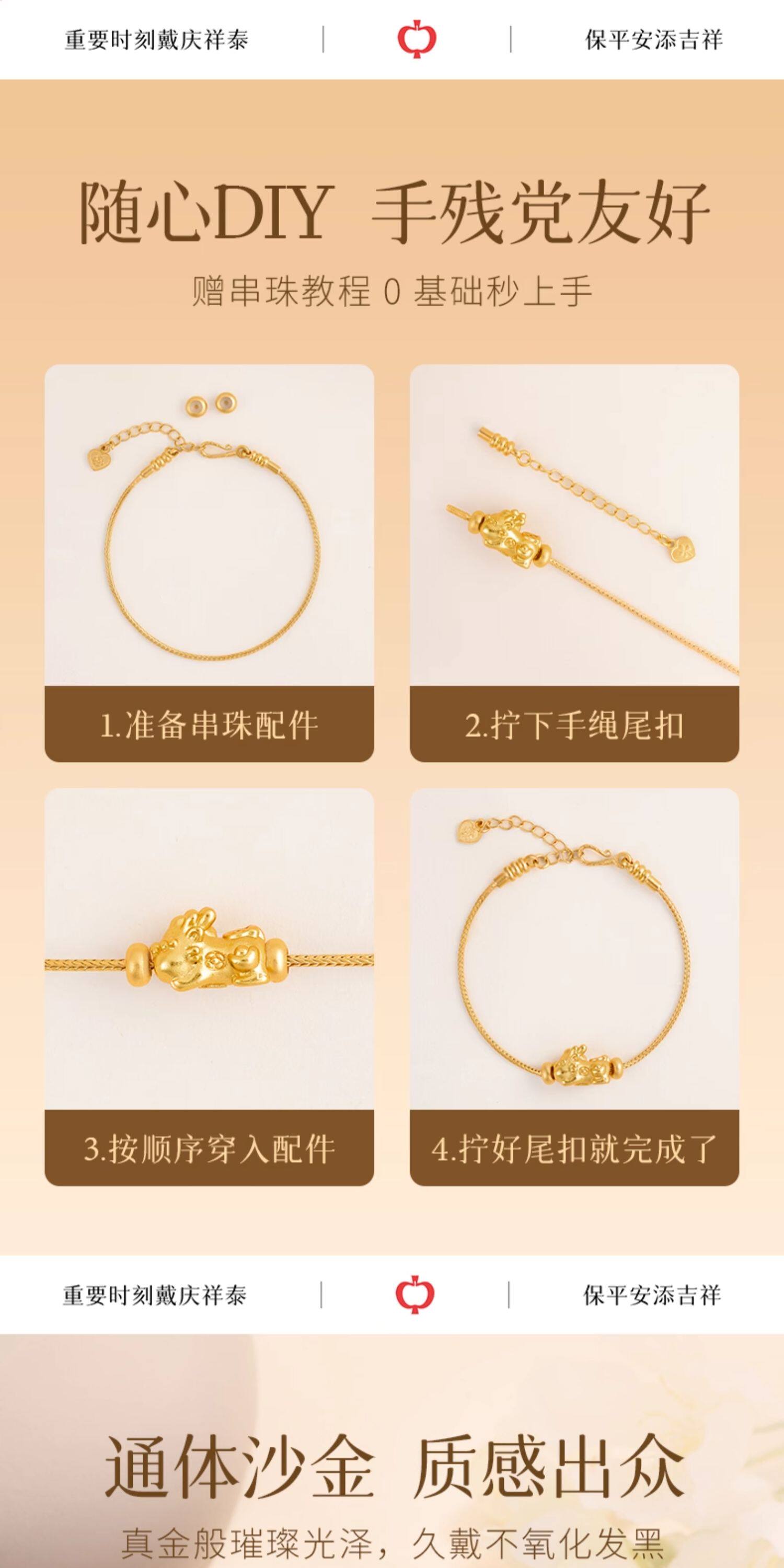 Qingxiangtai No-Tie Beaded Bracelet, Suitable for Threading Gold DIY Accessories, Direct Threading of Fortune Beads, Woven Bracelet Accessories