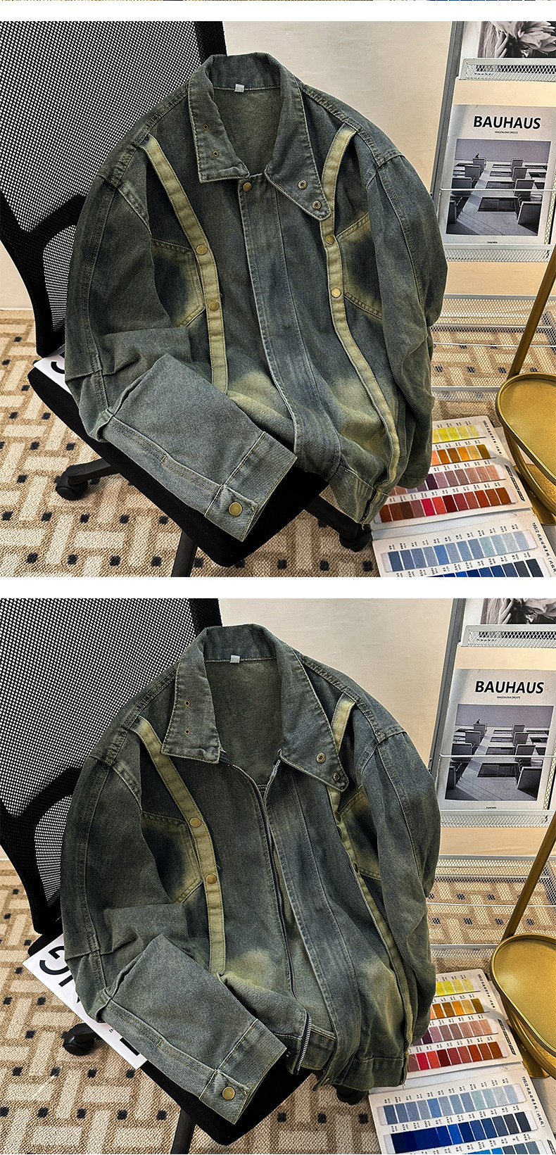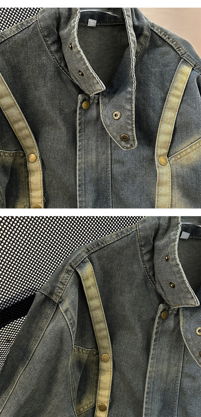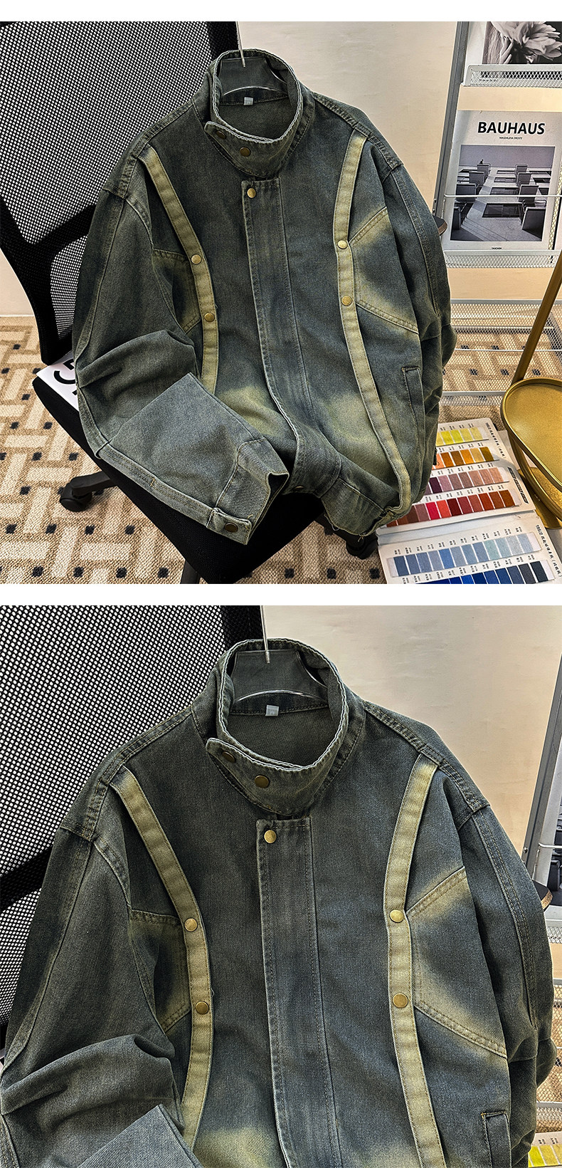 Distressed Deconstructed Denim Jacket for Men, Spring and Autumn Vintage American Workwear Top, Loose Stand Collar Trendy Brand Jacket