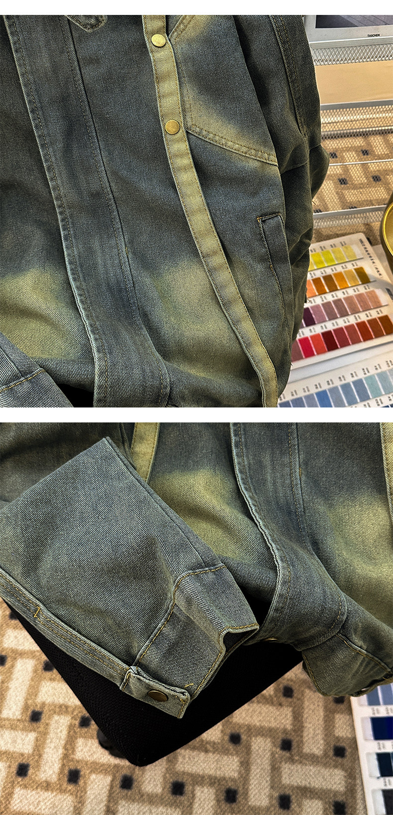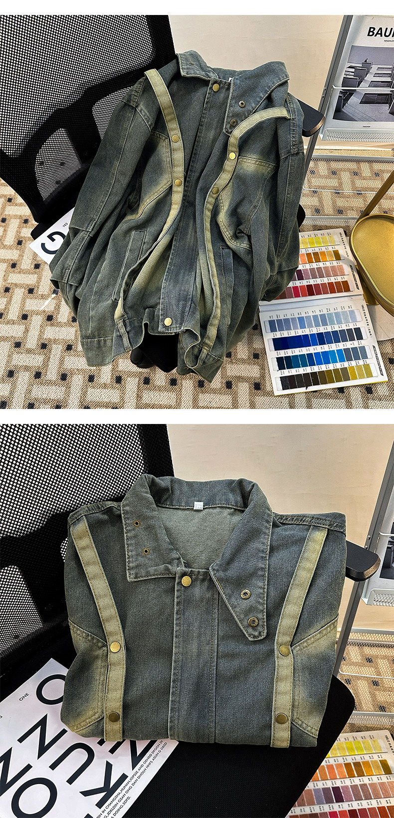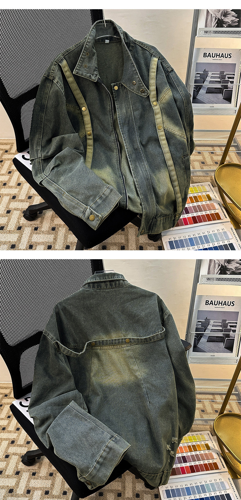 Distressed Deconstructed Denim Jacket for Men, Spring and Autumn Vintage American Workwear Top, Loose Stand Collar Trendy Brand Jacket