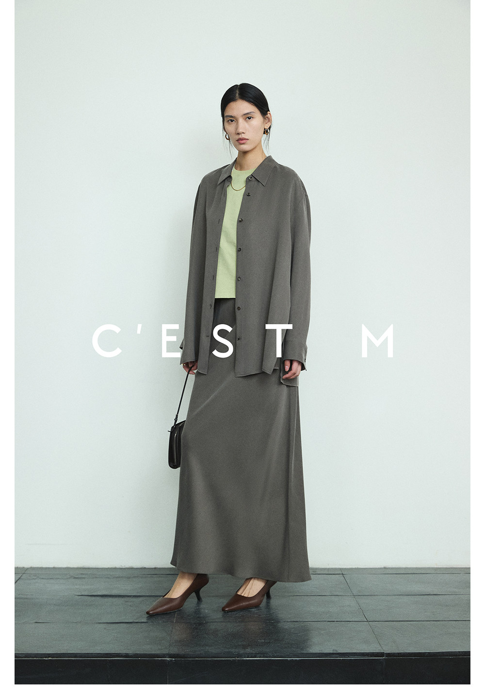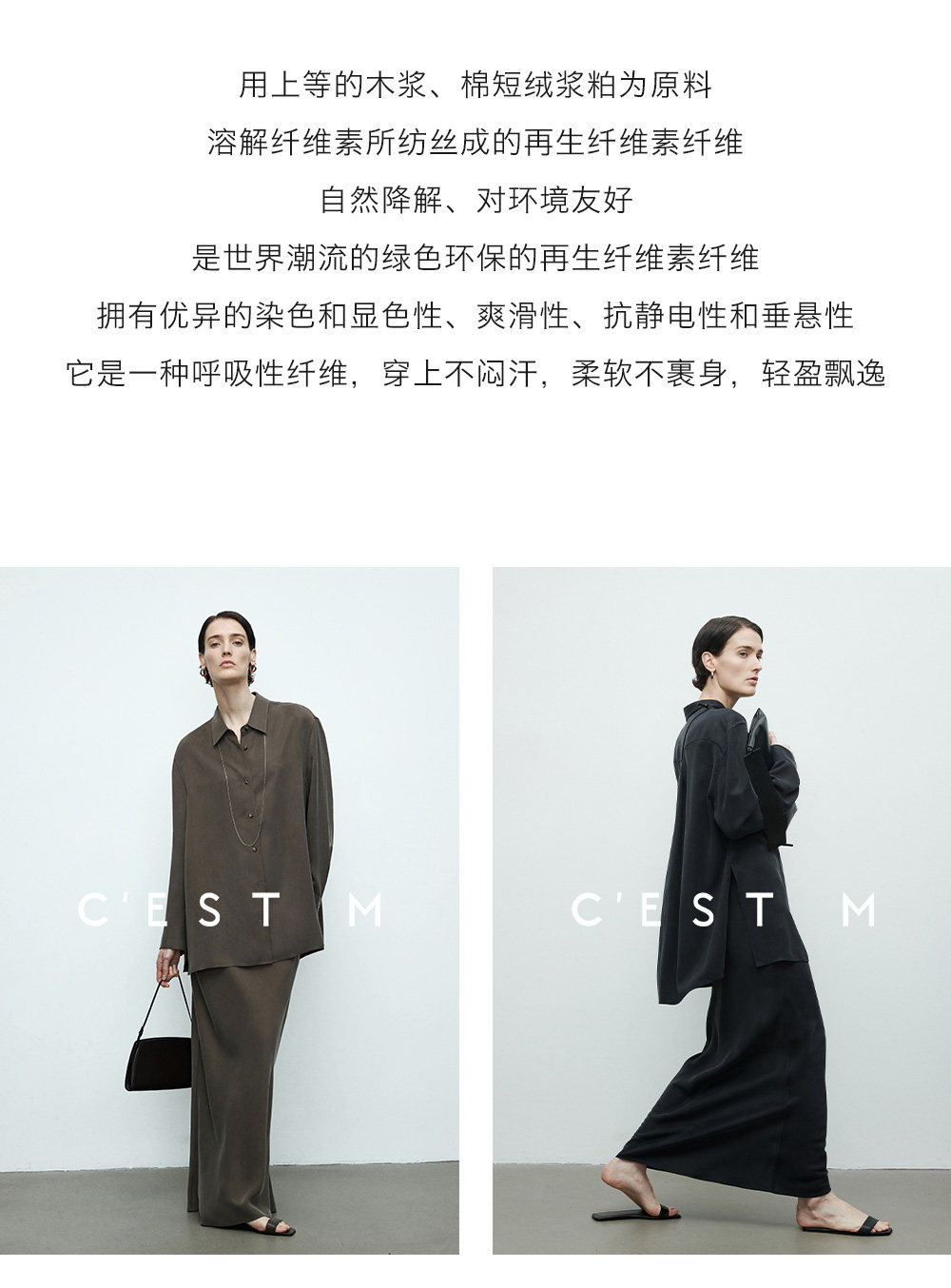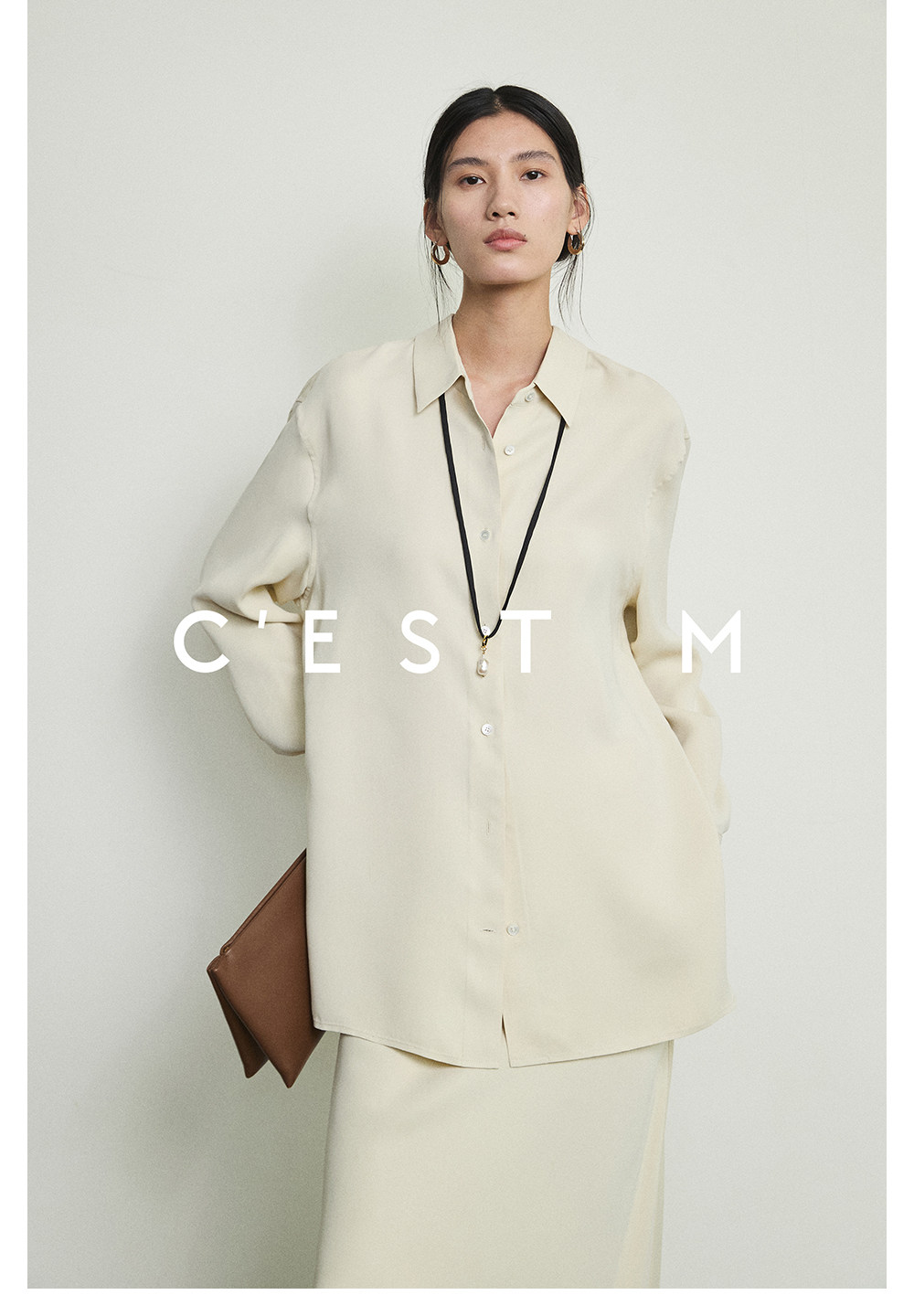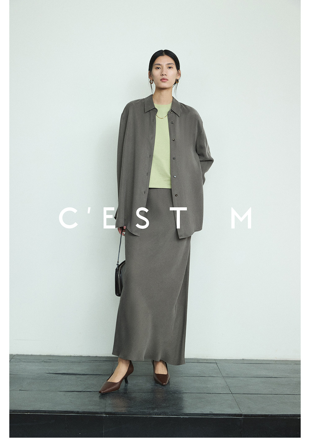 Cest M丨Imported Sand-Washed Cupro Silk Matte Tencel Minimalist Shirt with Extra-Long Fishtail Skirt