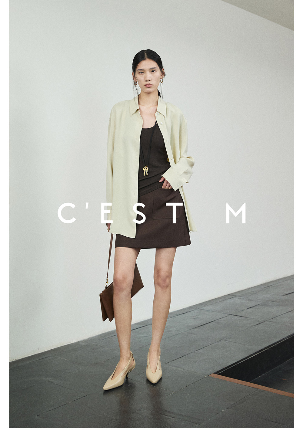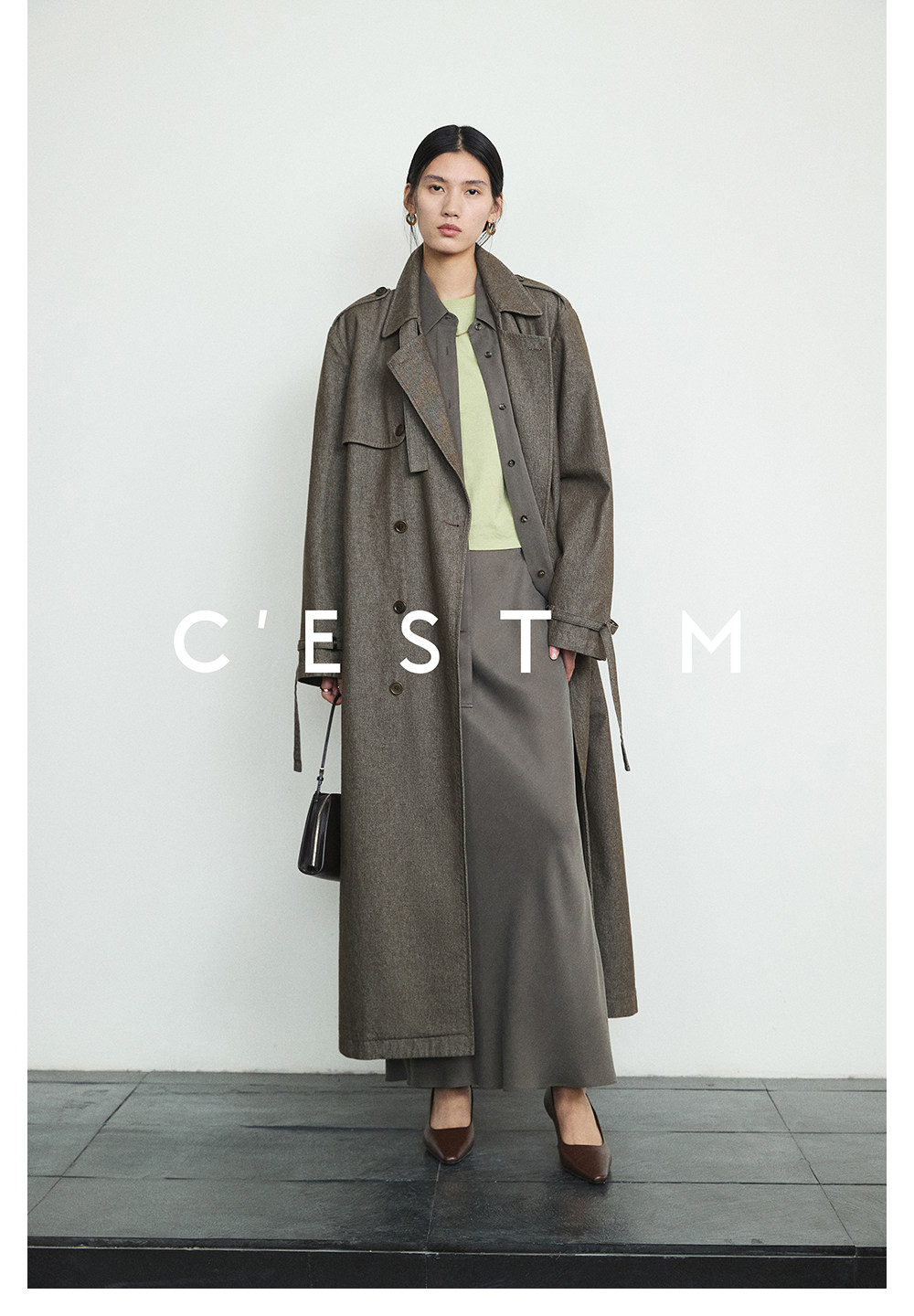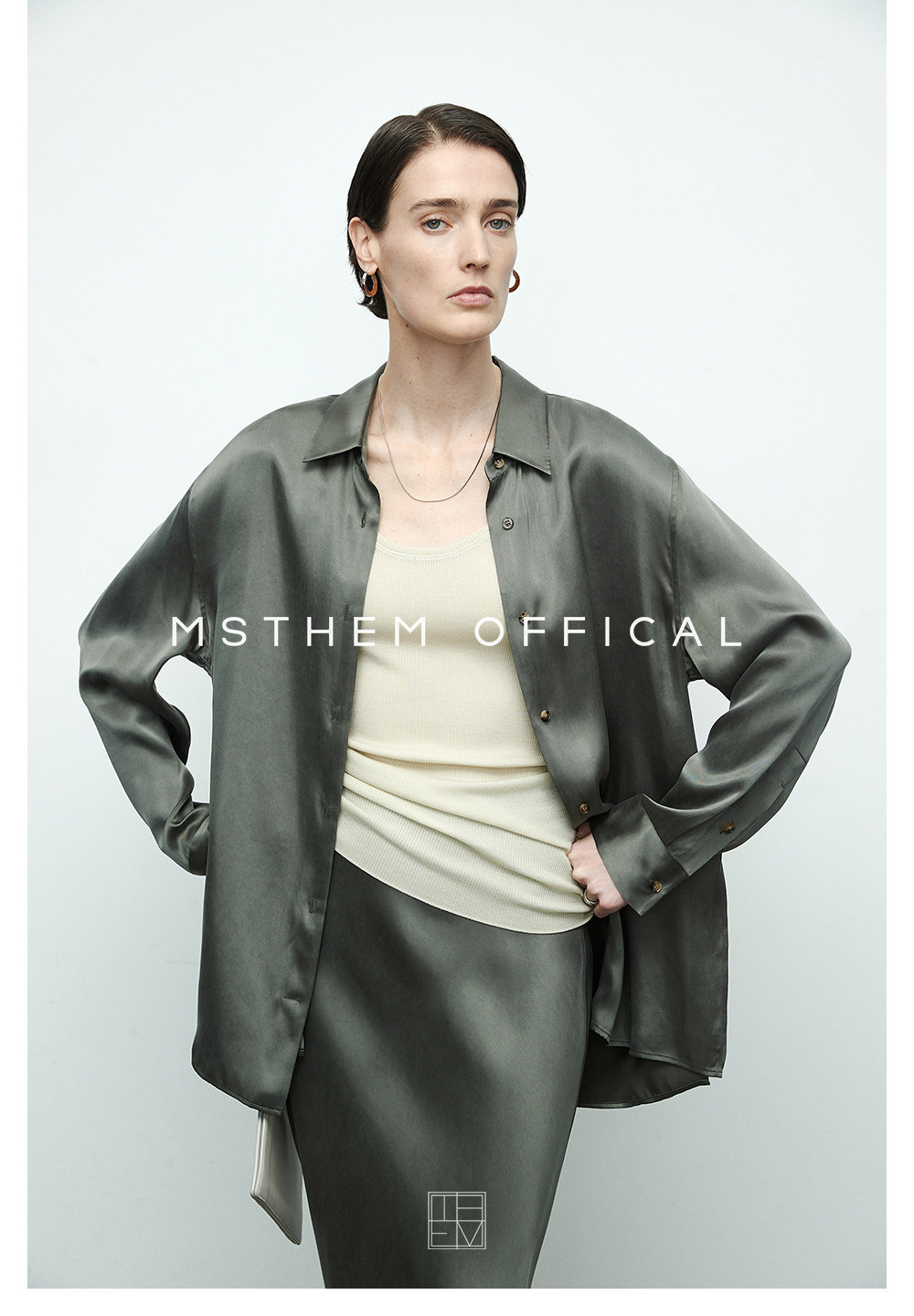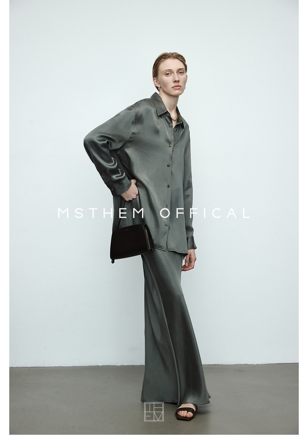 Cest M丨Imported Sand-Washed Cupro Silk Matte Tencel Minimalist Shirt with Extra-Long Fishtail Skirt