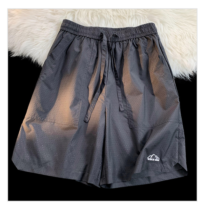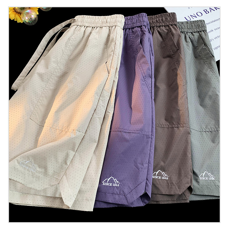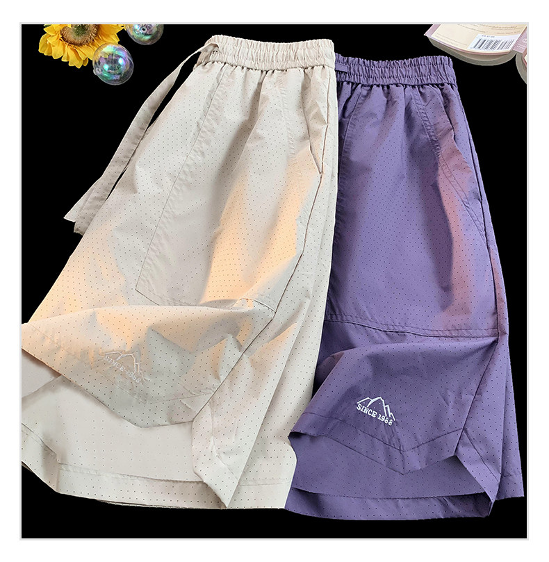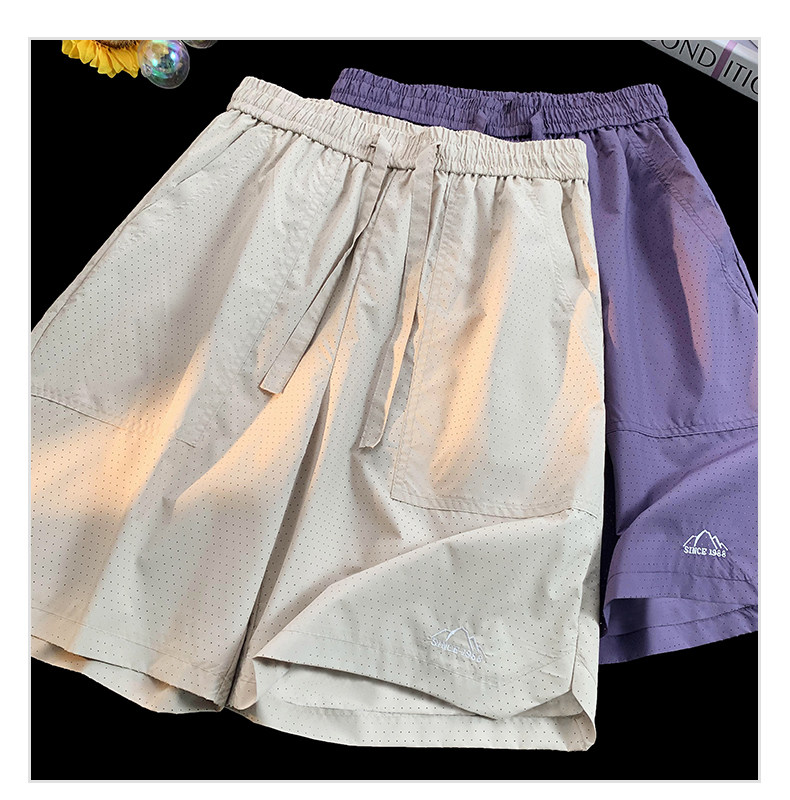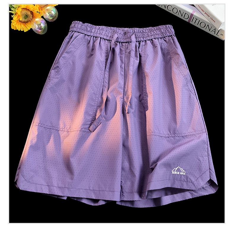 Mesh Quick-Dry Basketball Shorts for Men, Summer Thin Style, Trendy Brand Embroidered Sports Pants, Loose Fit, Purple Five-Point Shorts for Outdoor Wear