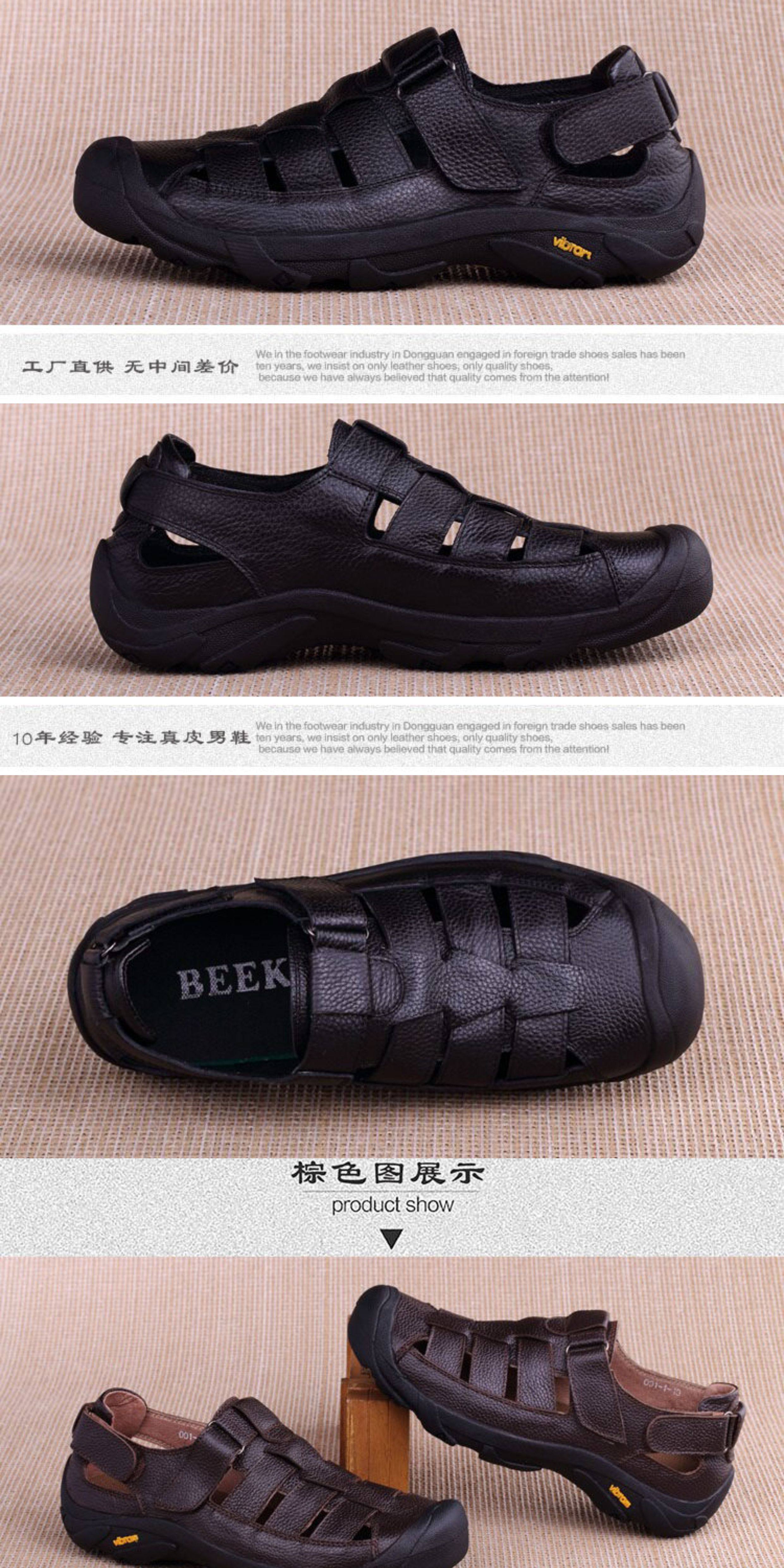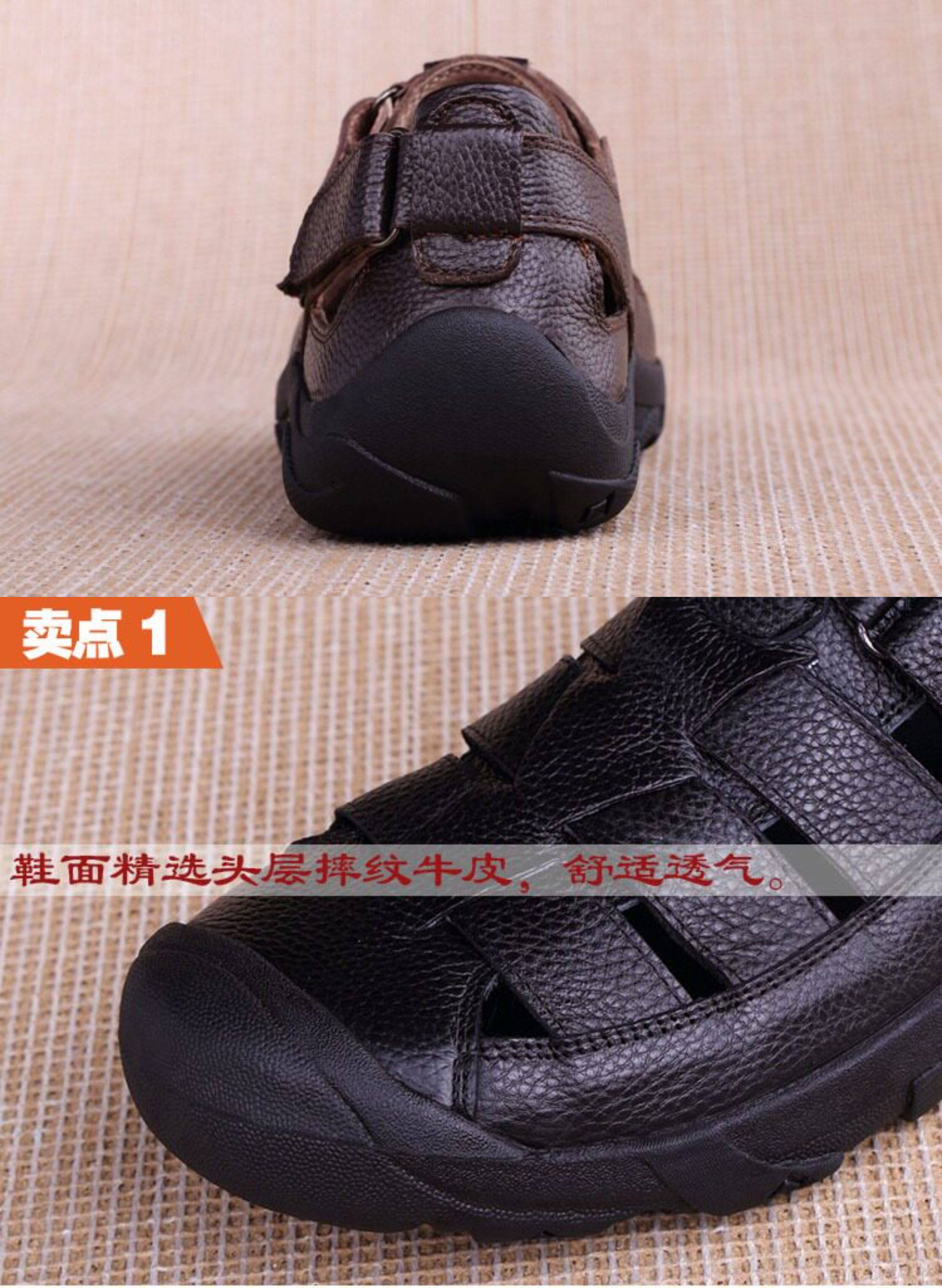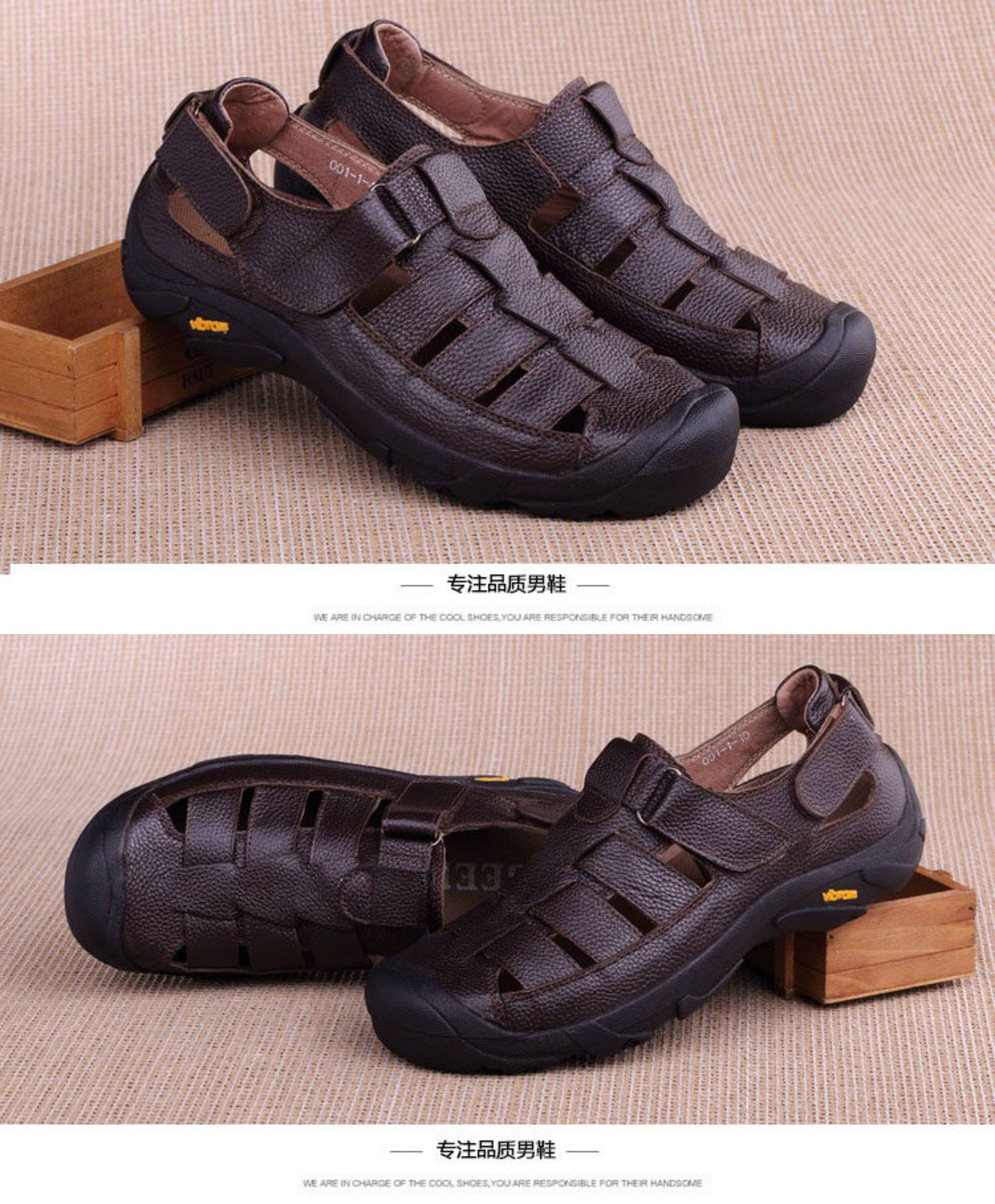 Men's Genuine Leather Sandals for Export, Summer Non-Slip Casual Shoes, Closed-Toe Shoes, Beach Shoes, Wear-Resistant Dad Shoes