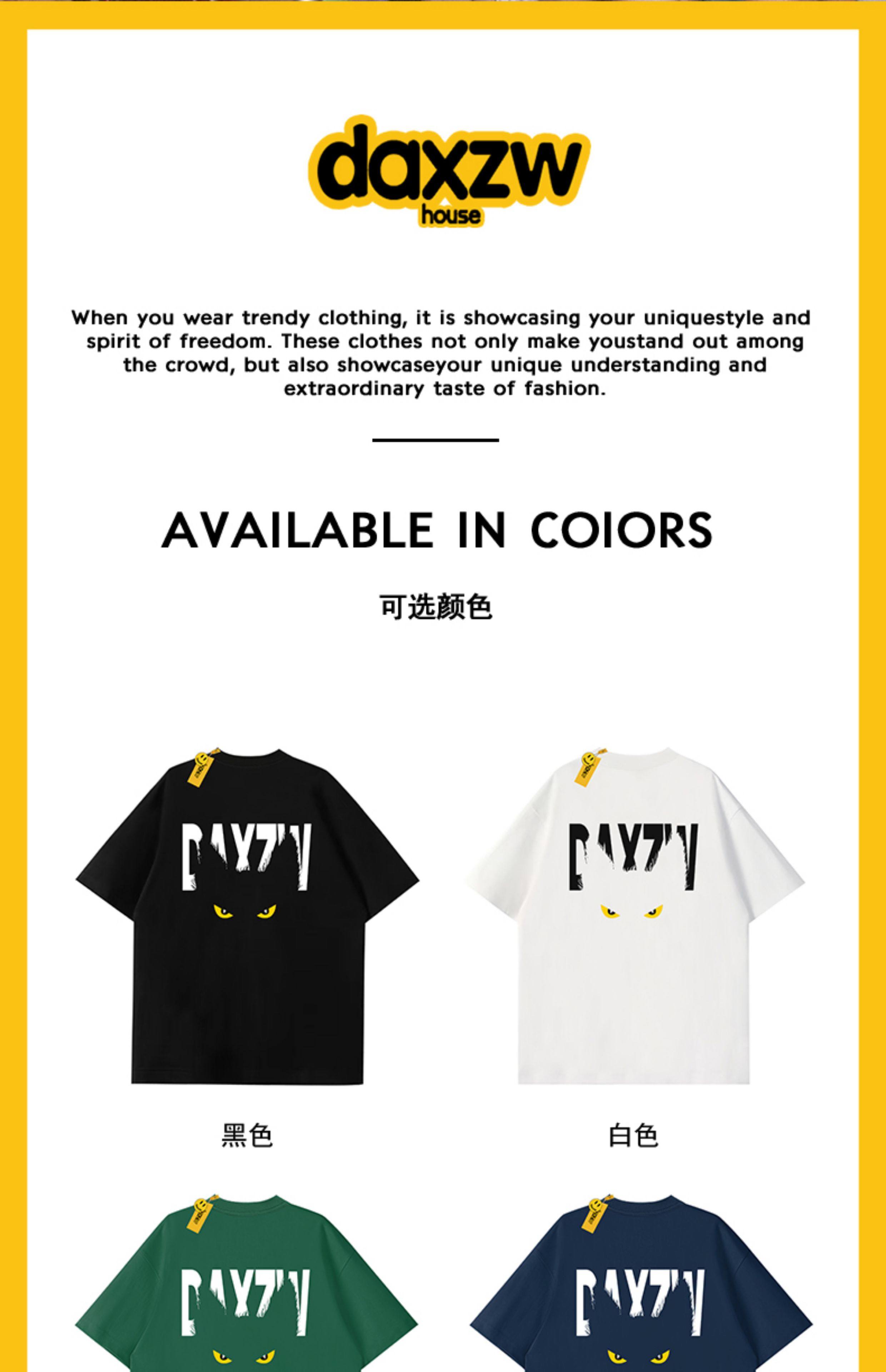 Daxzw Trendy Retro Heavyweight Pure Cotton Loose Round Neck Summer Top Design Short-Sleeve T-Shirt Unisex