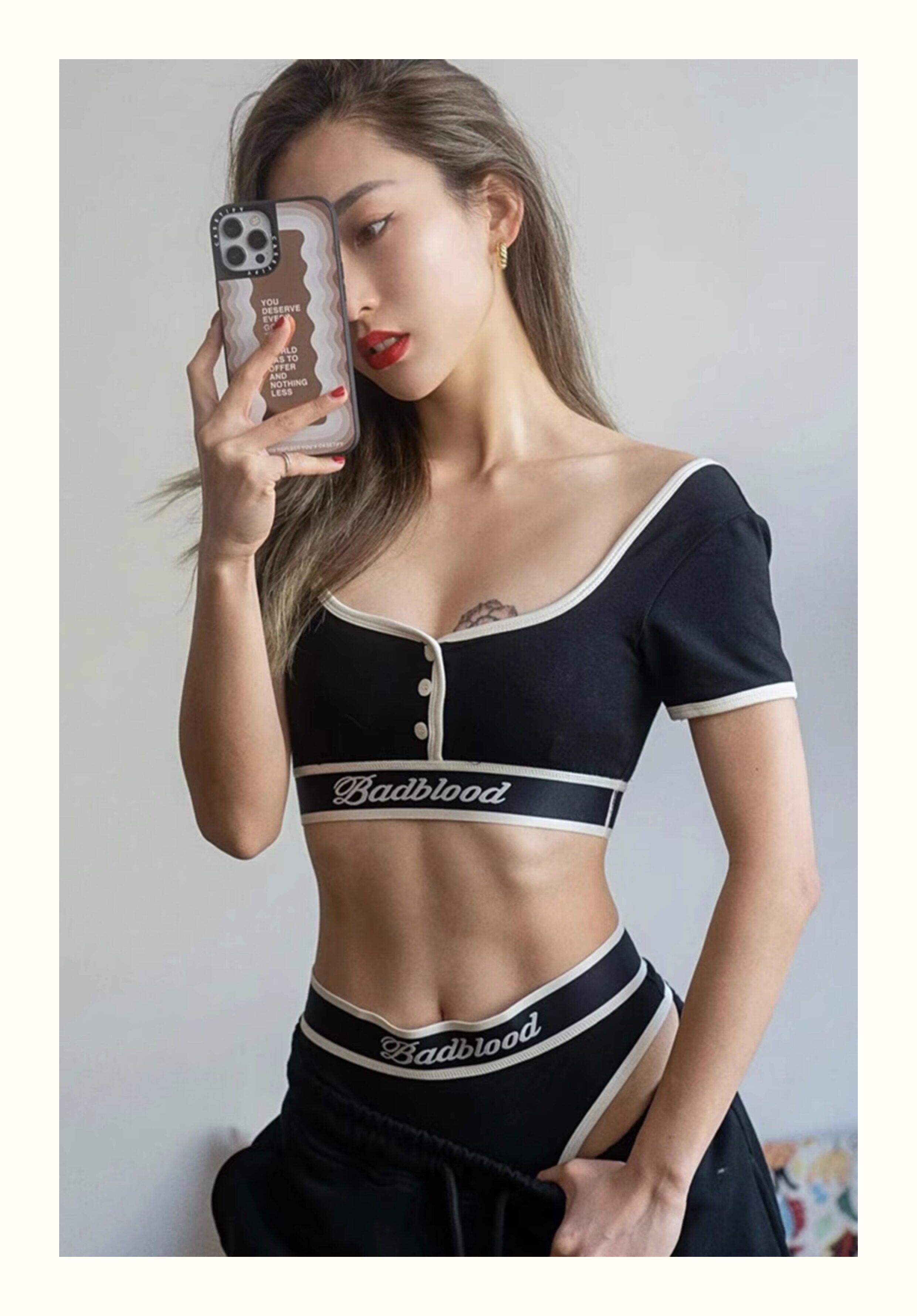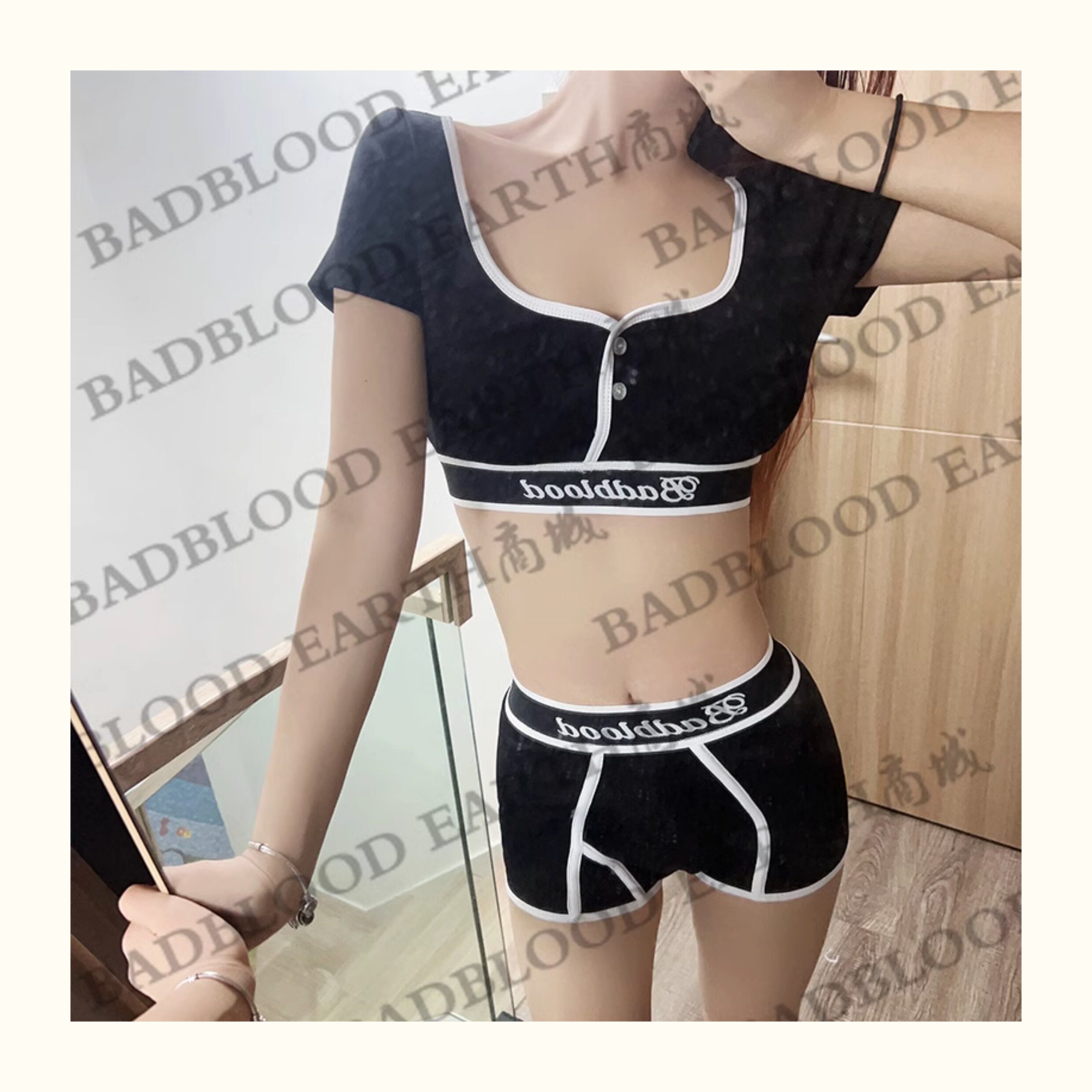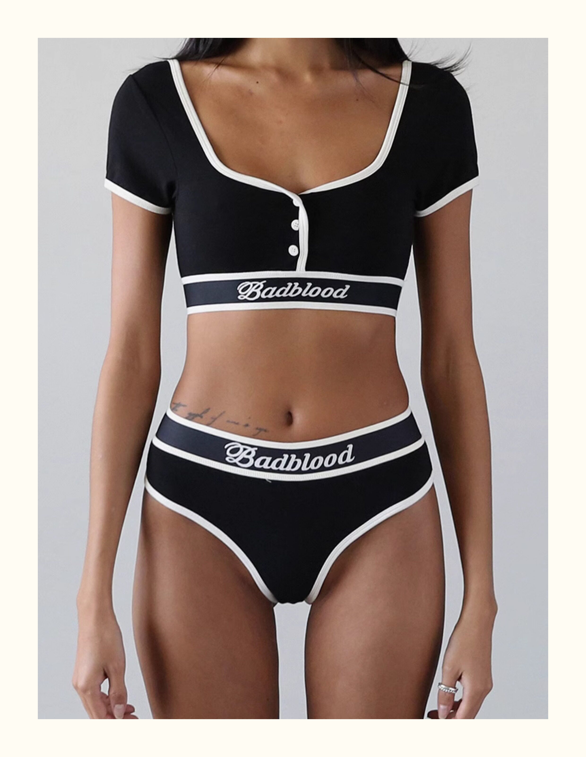 Badblood High-Waisted Wide-Brimmed Letter Belt Sexy Sports Hottie Thong Briefs Boxer Briefs Shorts