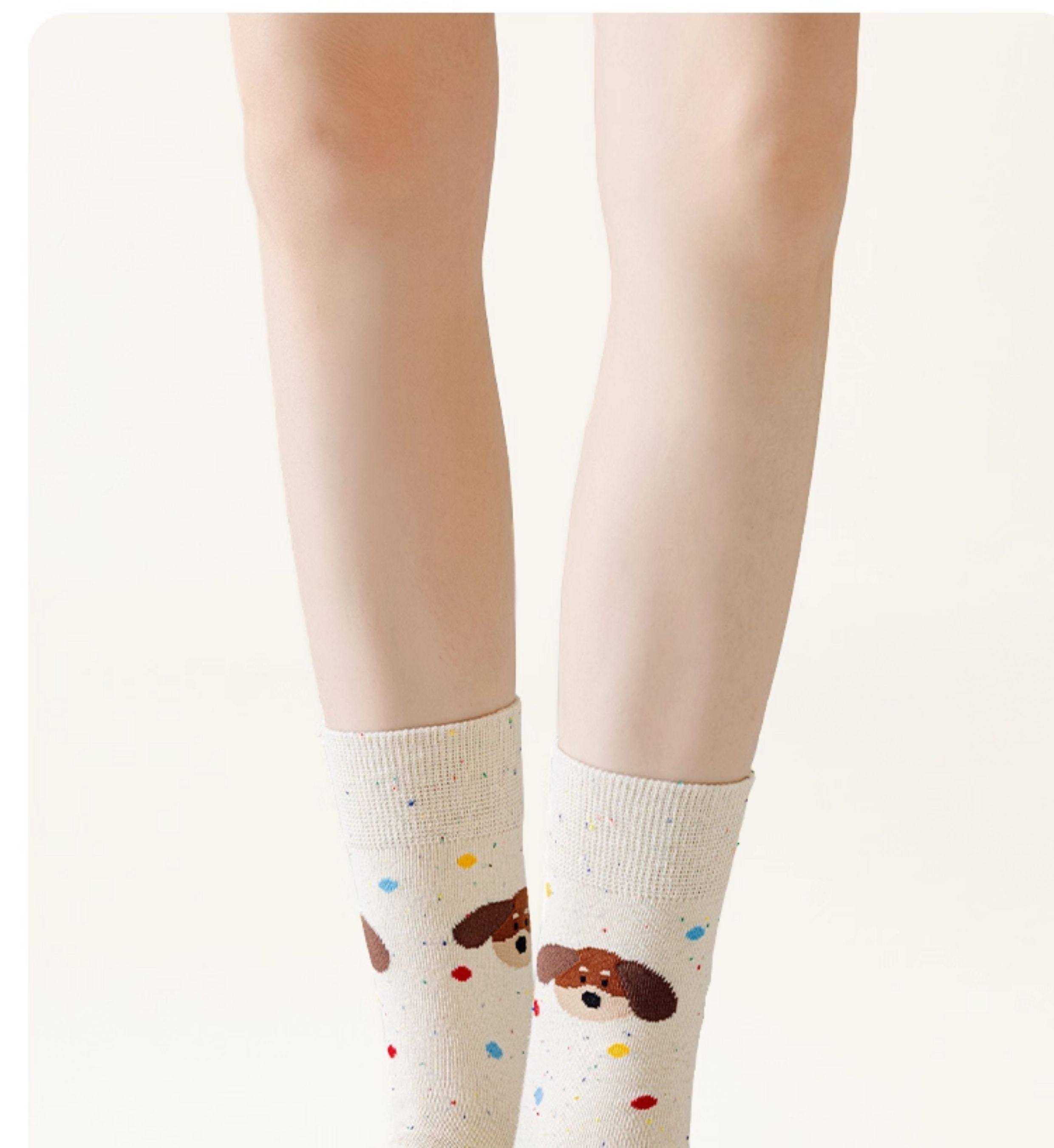 Cotton Cheese Cartoon Puppy Socks for Women, Mid-Calf Socks, Trendy Polka Dot Striped Long Socks, 2026 New Hot Style