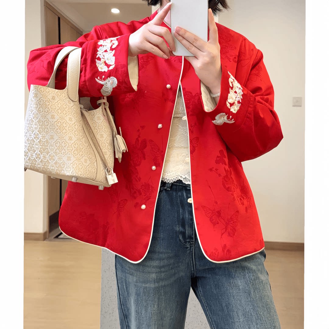【Gorgeous and Alluring】New Chinese-Style Red Double-Sided Wear National Style Jacket for Women, Acetate Autumn High-End Slimming Coat