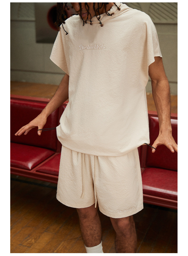 Unshackled Trendy Brand Hooded Vest Bubble Gauze T-Shirt Unisex American-Style Loose Shorts Sports Suit Yang Zheng