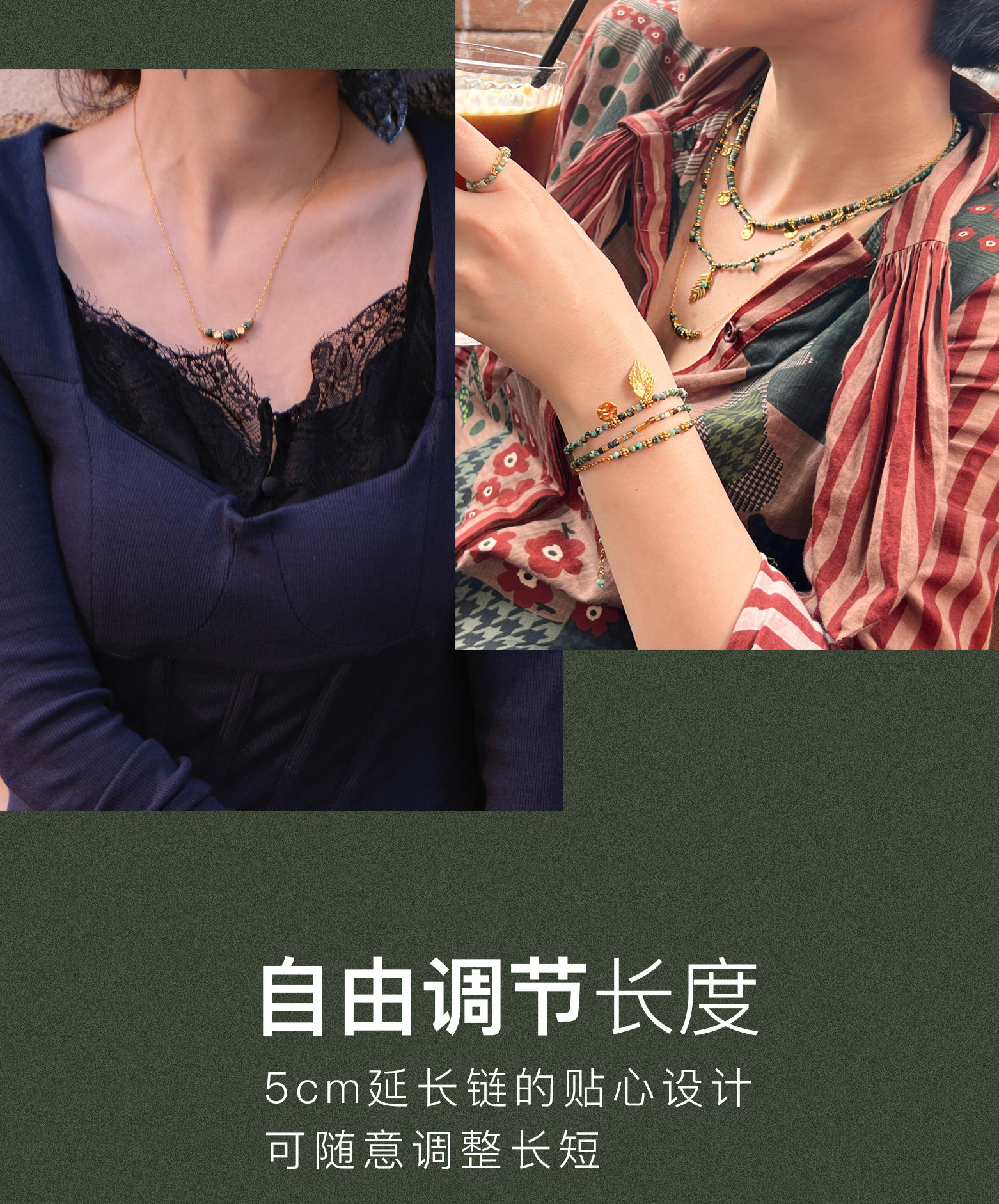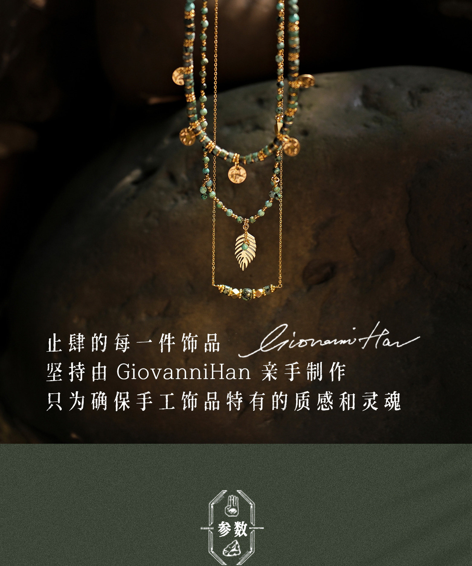 Zhishiy. Original Green Turquoise Ethnic Style Clavicle Chain, New Chinese Style Retro Bohemian Sweater Chain, Women's Necklace