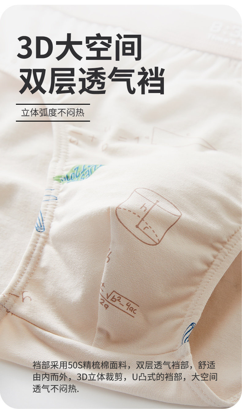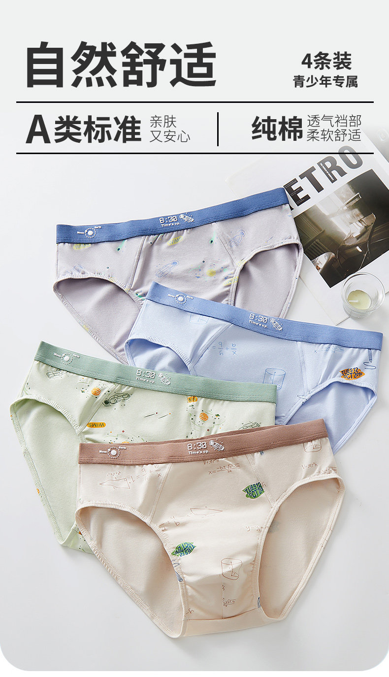 Teenage Boys' Briefs, Early Development Period, High School Boys, Cotton, Antibacterial, Breathable, Large Size, Loose Fit
