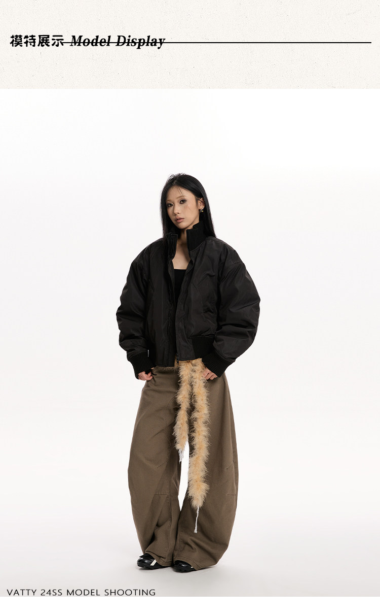 Vatty American Street Style Silhouette Stand-Up Collar Versatile Commuter Padded Jacket Short Thickened Bomber Cotton Jacket