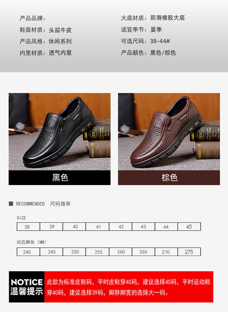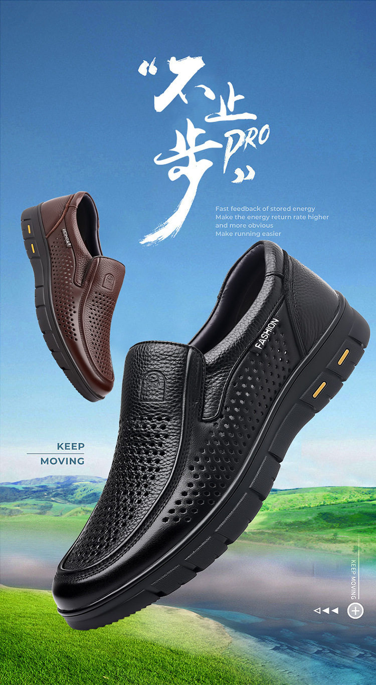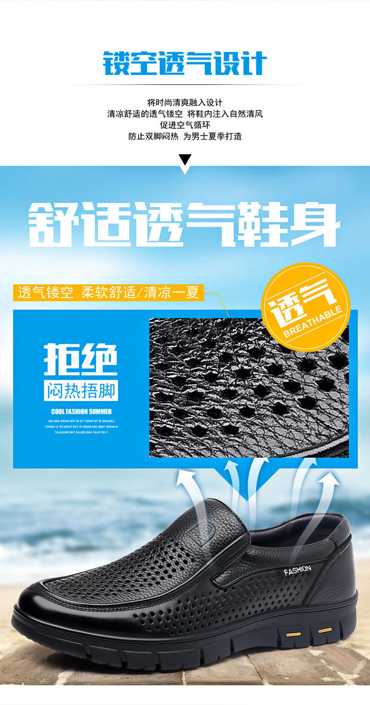 Leather Shoes for Men, Genuine Leather, Summer Hollow Breathable Sandals, Business Casual, Soft Sole, Non-Slip, Comfortable for Middle-Aged and Elderly People, Dad Shoes