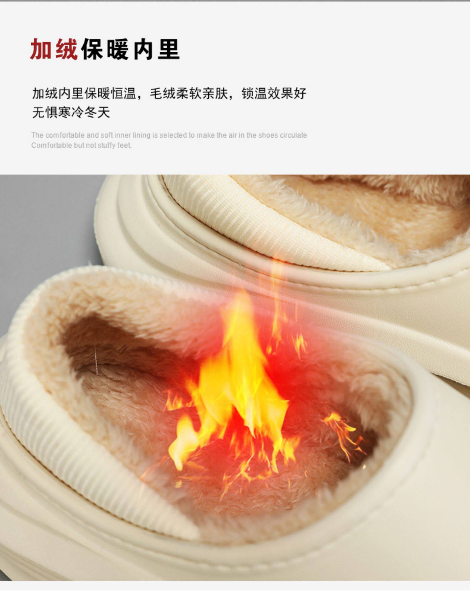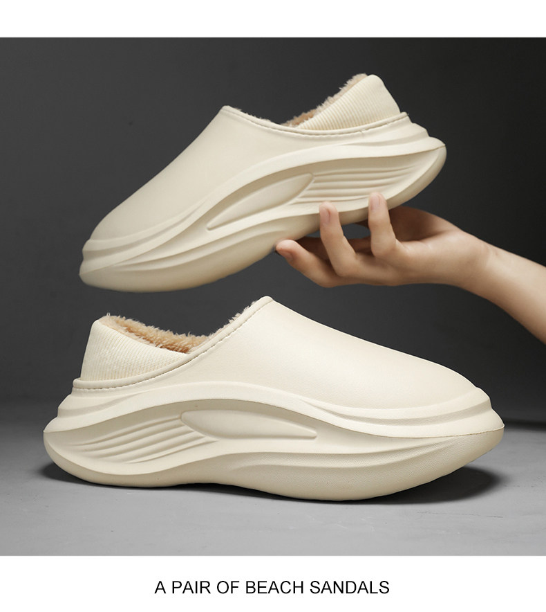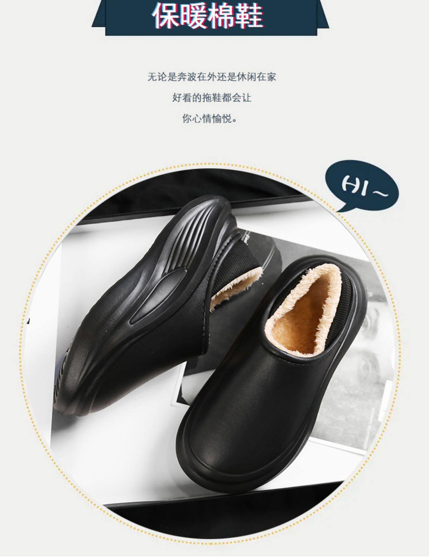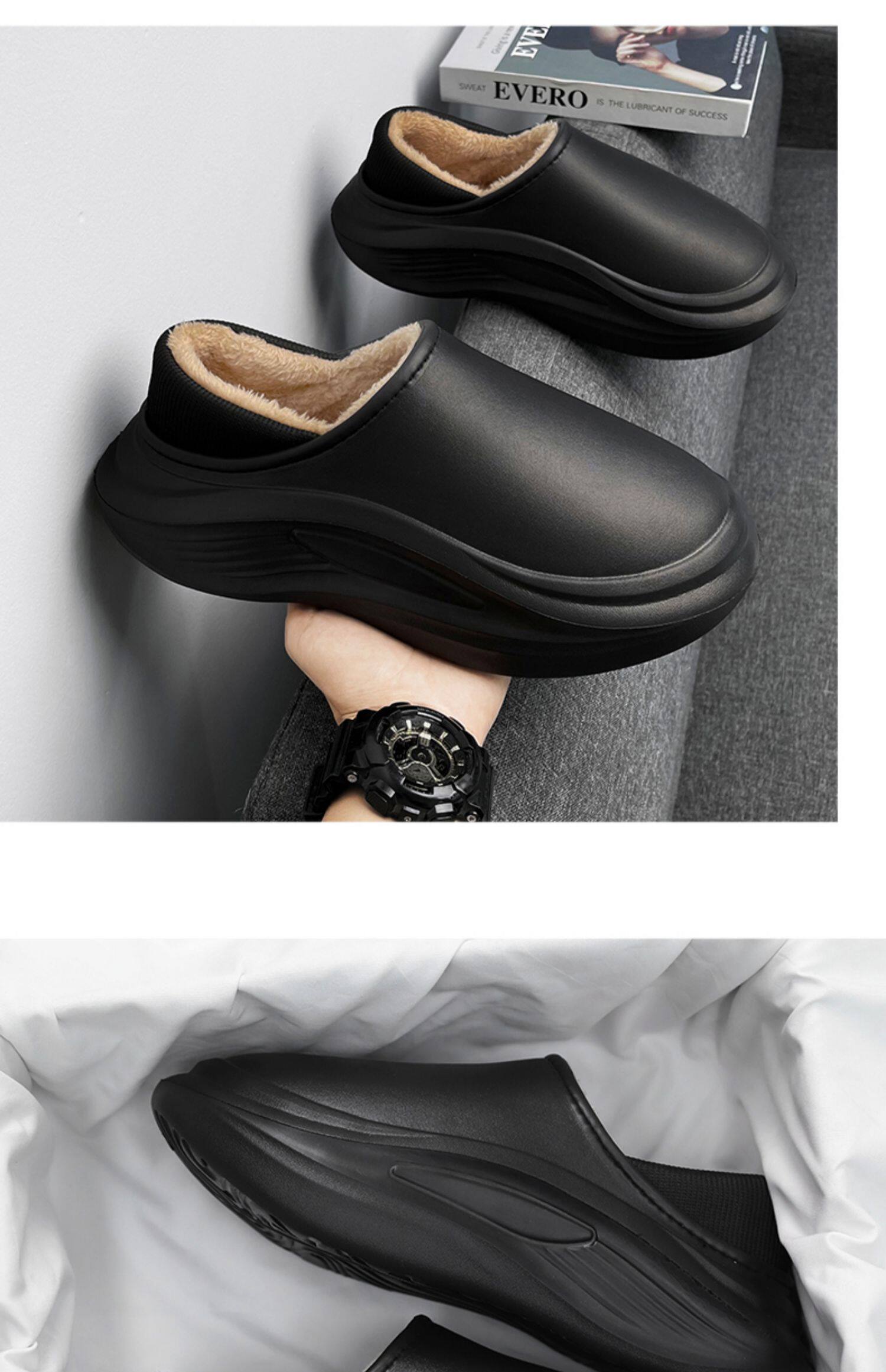 Men's Cotton Slippers for Winter, with Heel, Fleece-Lined, Thickened, Non-Slip, Waterproof, Large Size, Suitable for Outdoor Wear, Warm, Sporty Cotton Shoes