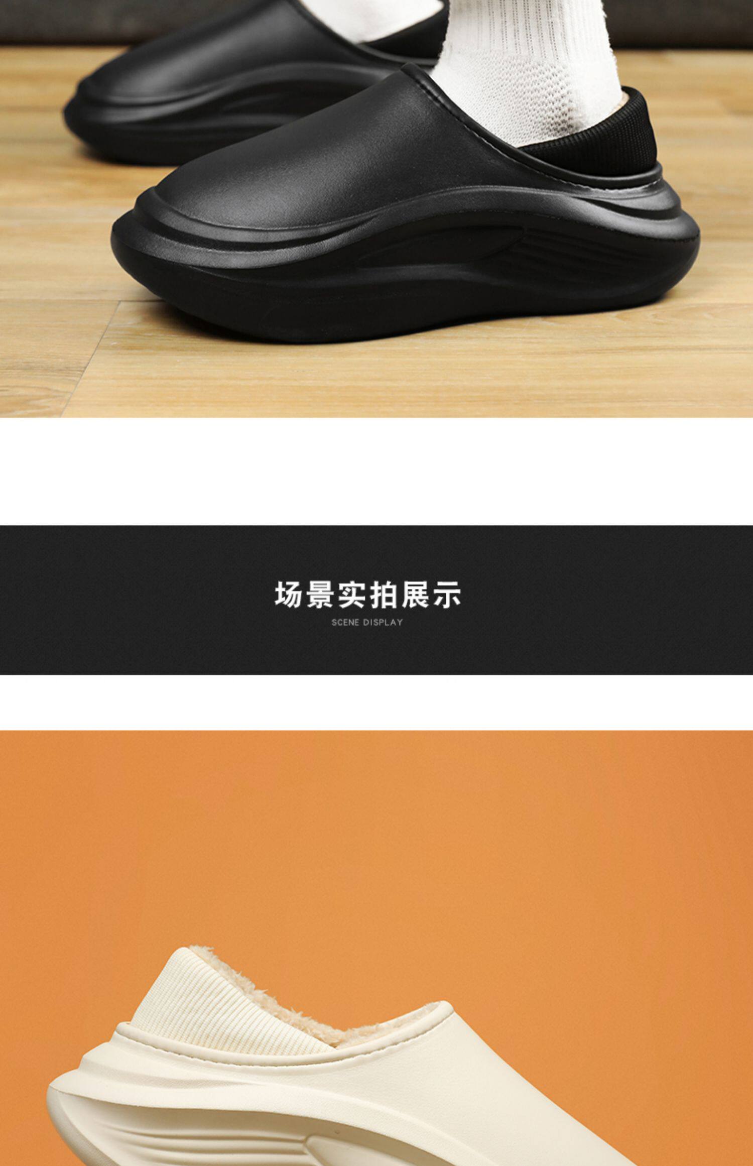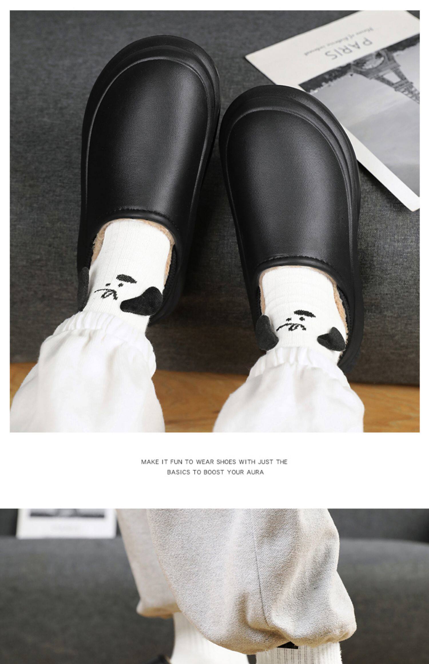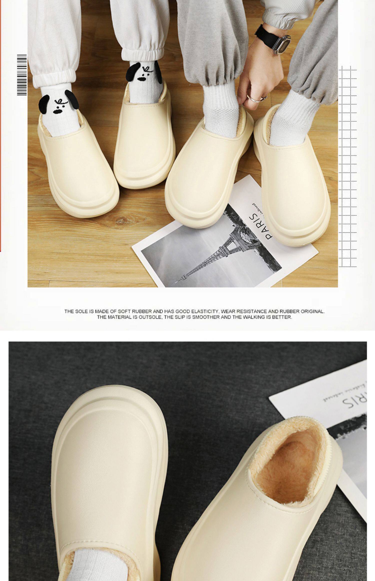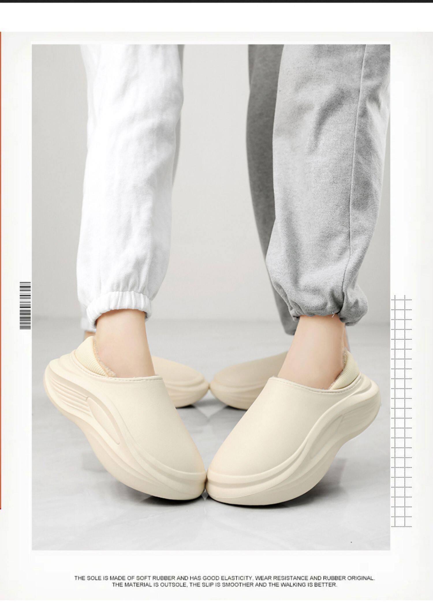 Men's Cotton Slippers for Winter, with Heel, Fleece-Lined, Thickened, Non-Slip, Waterproof, Large Size, Suitable for Outdoor Wear, Warm, Sporty Cotton Shoes
