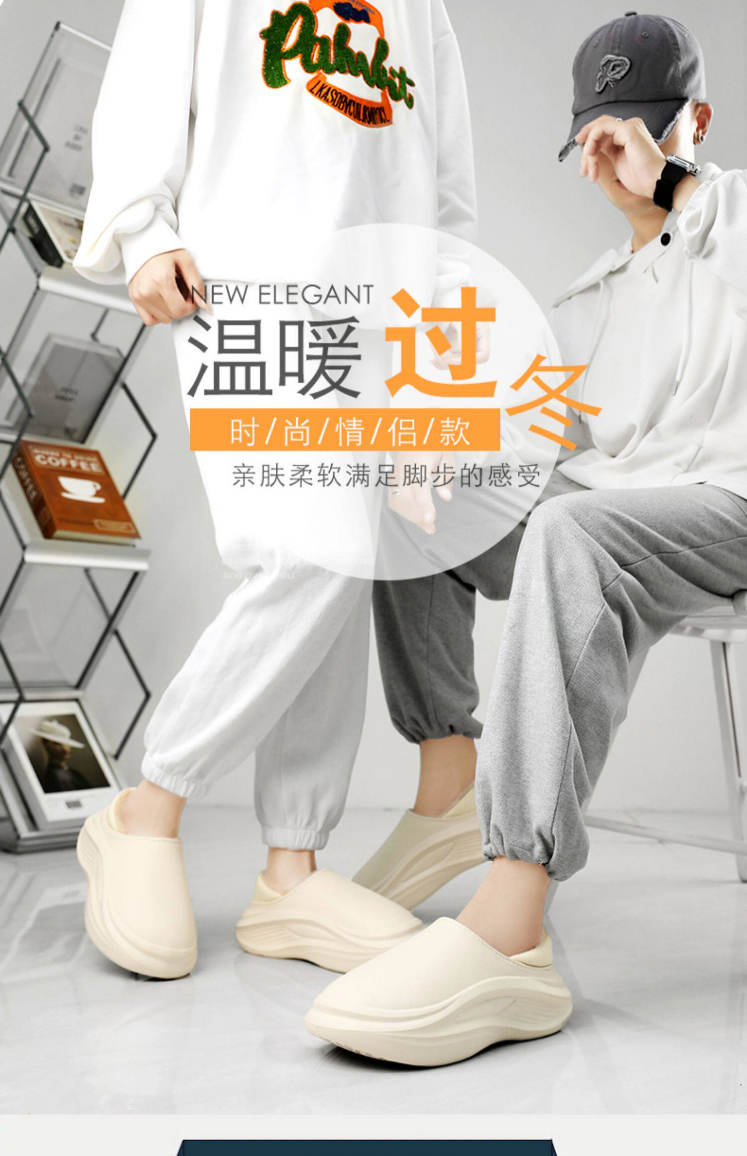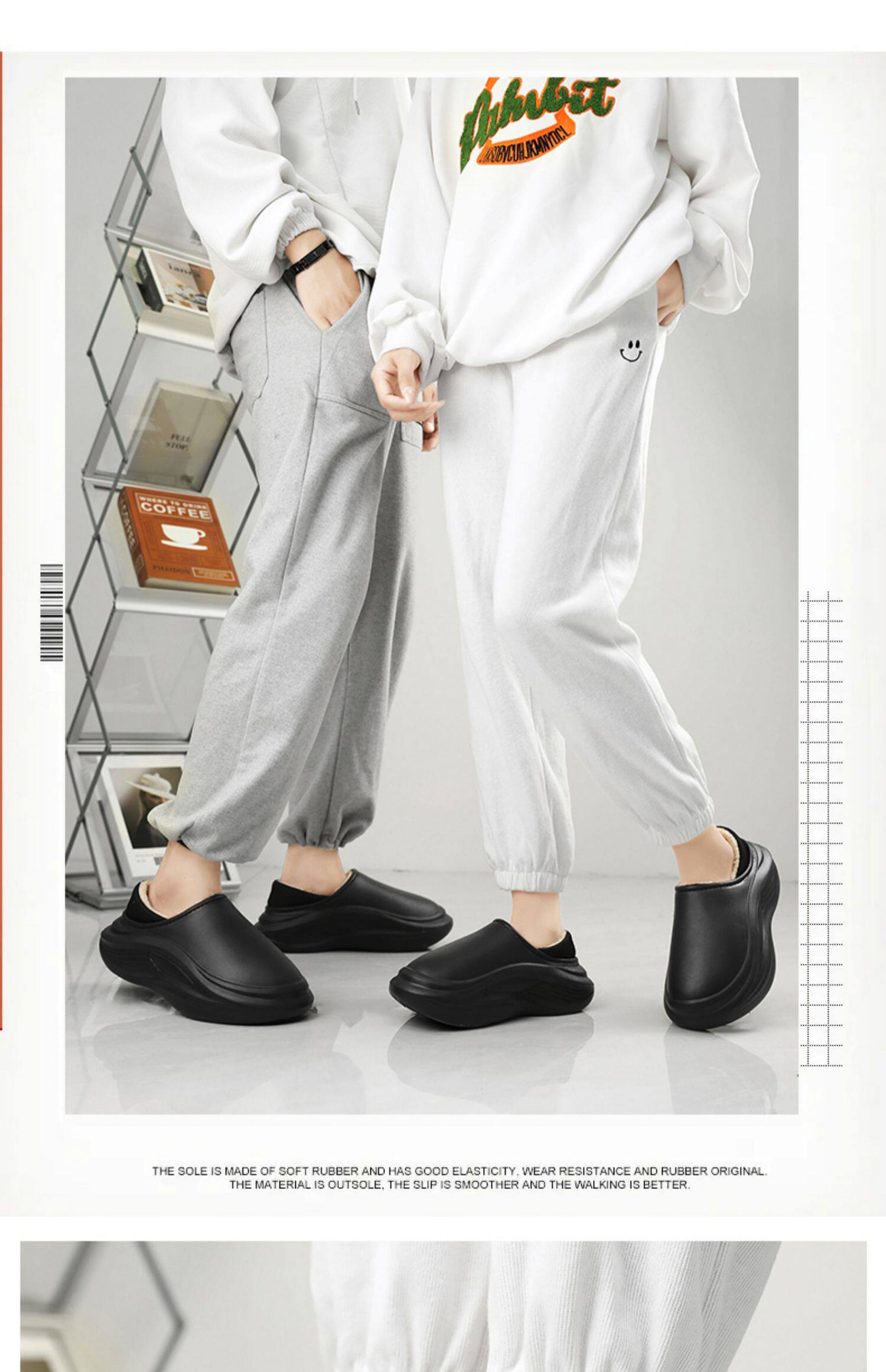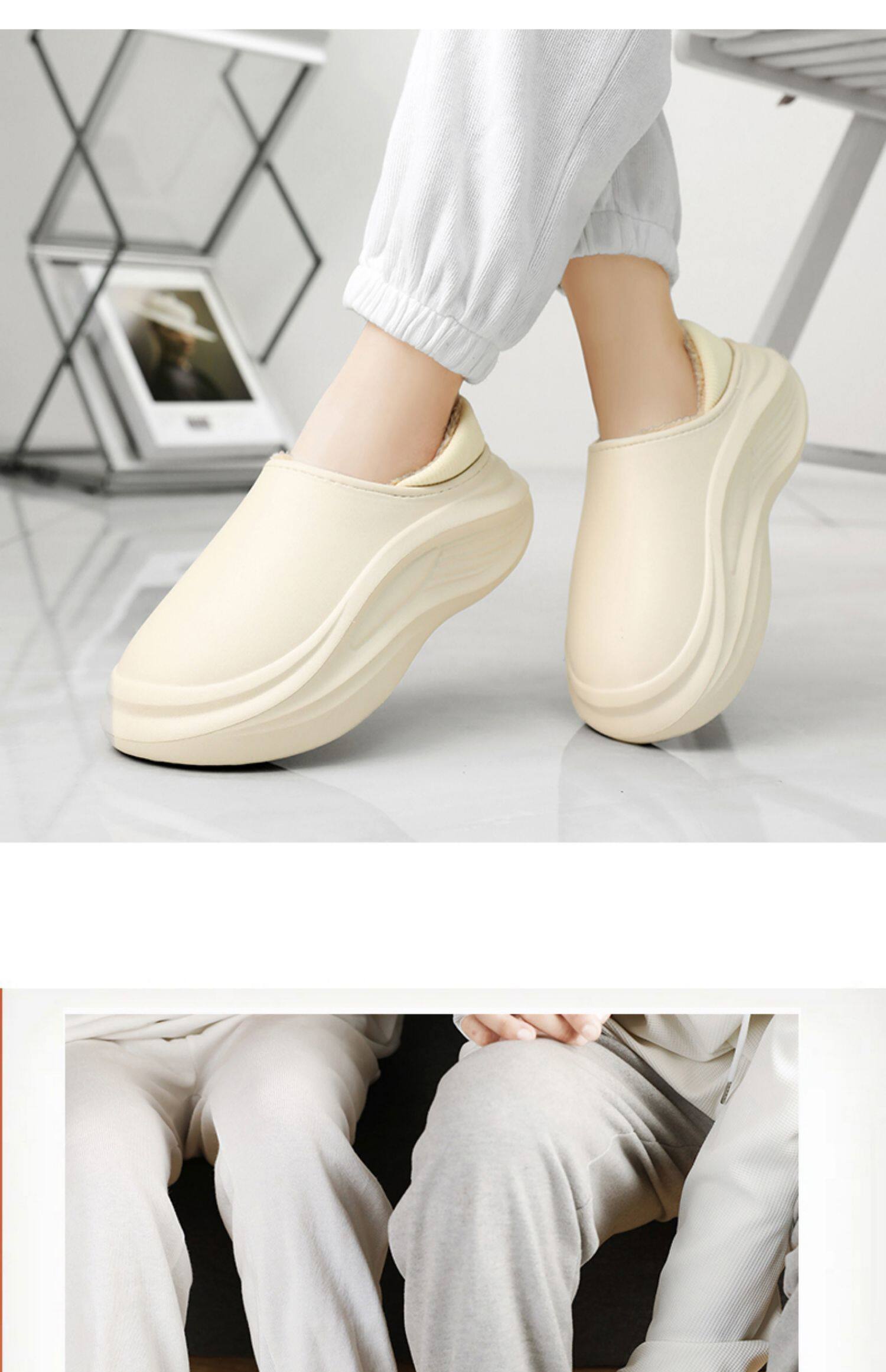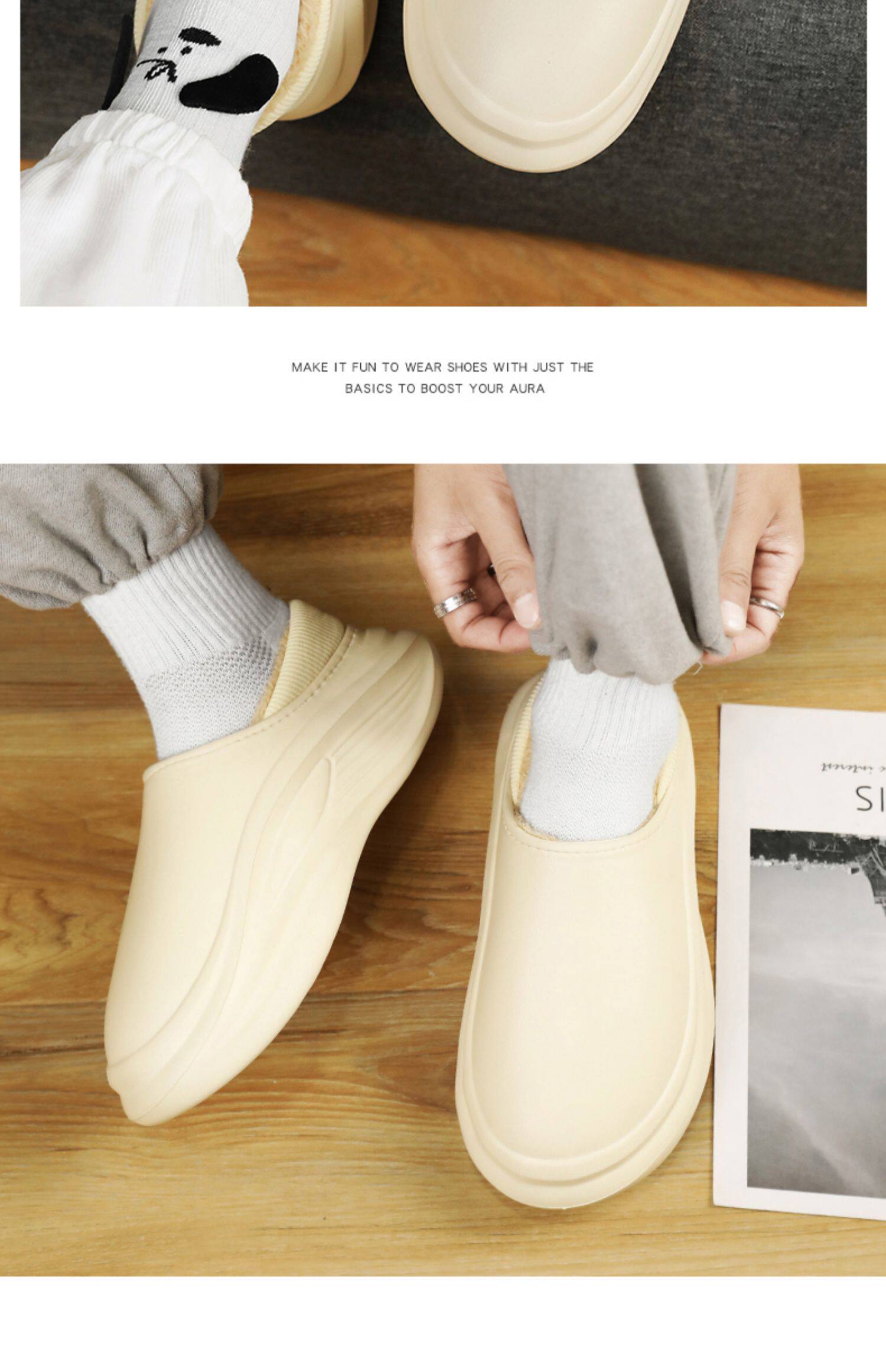 Men's Cotton Slippers for Winter, with Heel, Fleece-Lined, Thickened, Non-Slip, Waterproof, Large Size, Suitable for Outdoor Wear, Warm, Sporty Cotton Shoes