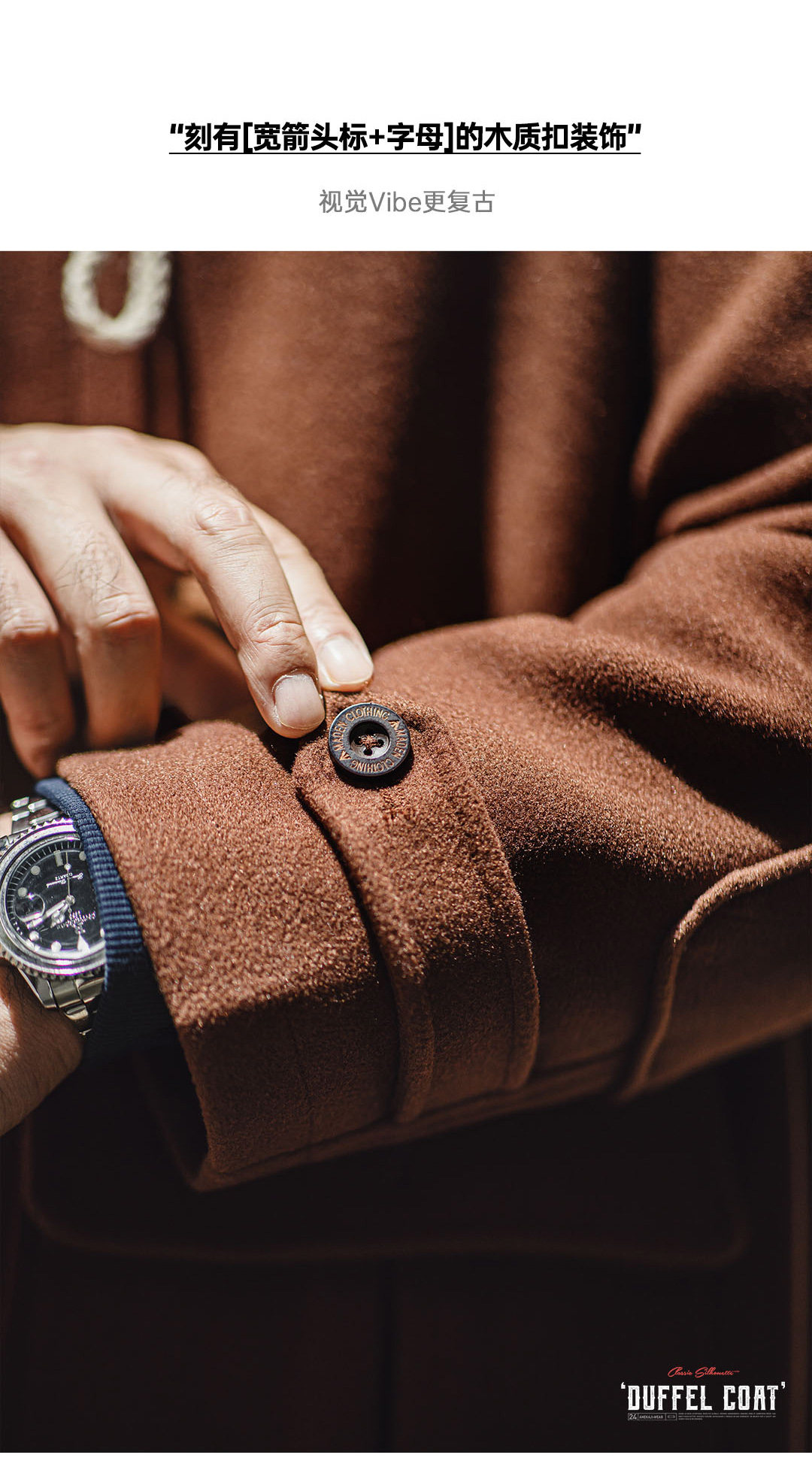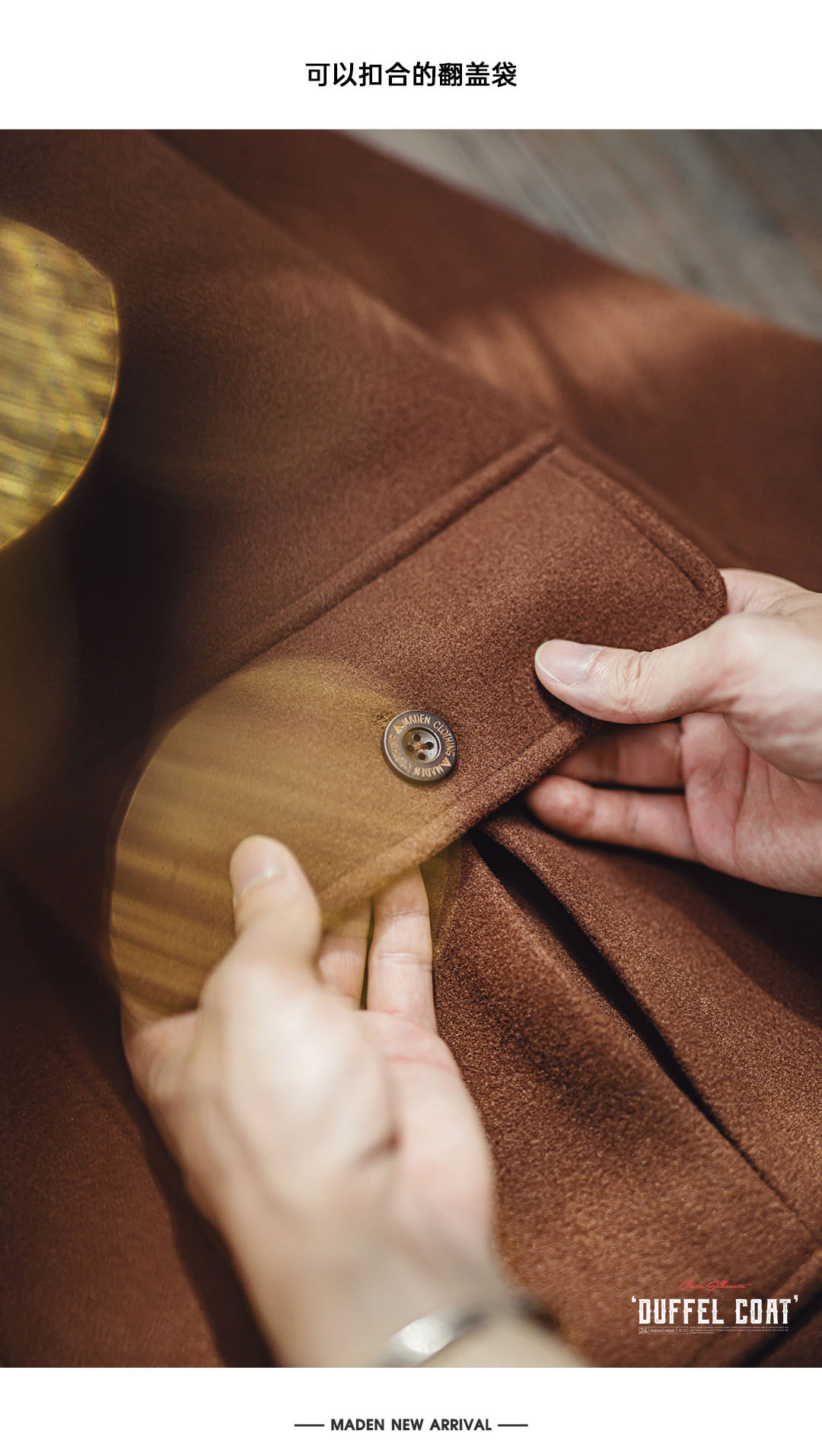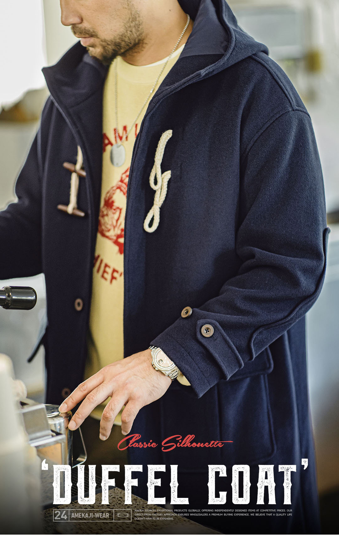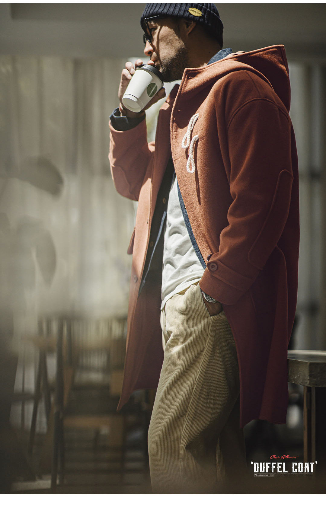 Madden Workwear American Retro Toggle Button Hooded Woolen Coat, Preppy Style Loose Long Coat for Men and Women, Spring and Winter