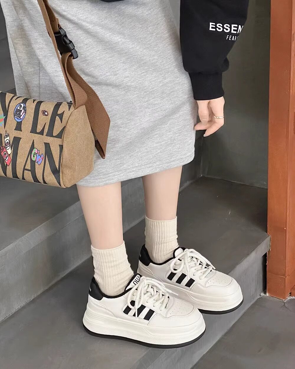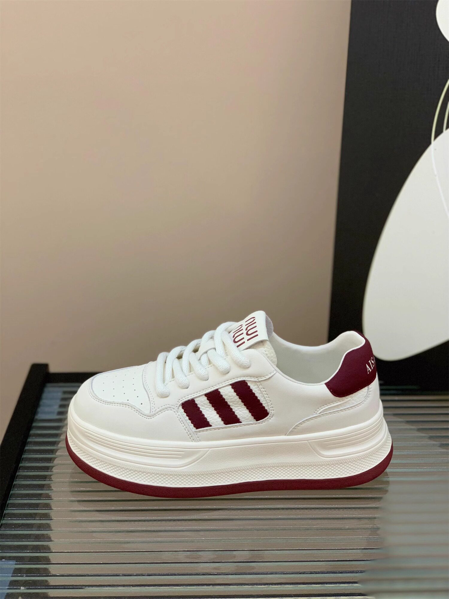 Hong Kong Genuine Leather White Sneakers for Women 2026 Spring New Lace-Up Breathable Versatile Color-Block Casual Thick-Soled Sneakers Korean Style