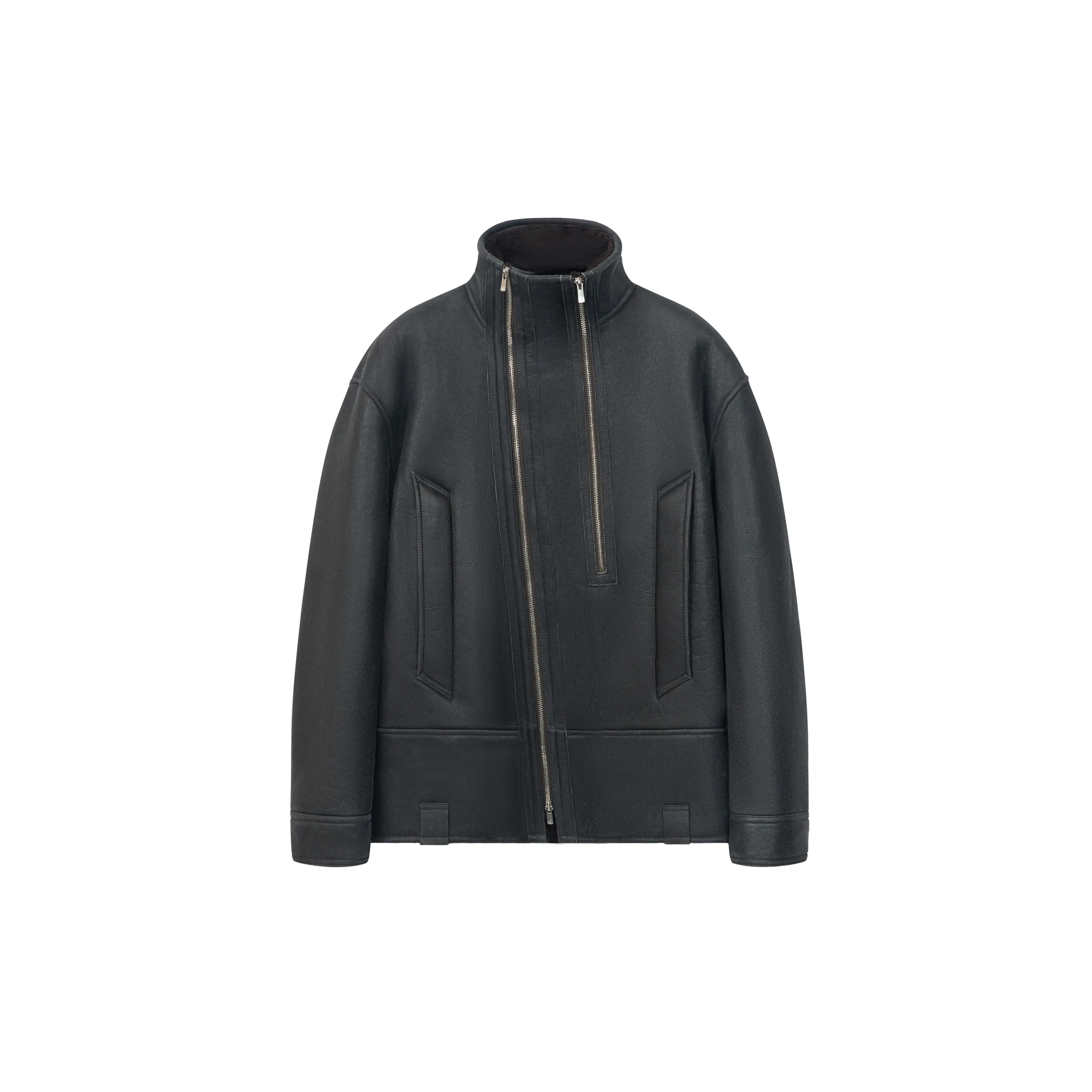 G for Innerthought Turkish Retro Oil Wax Double Zipper Sheepskin Leather Jacket