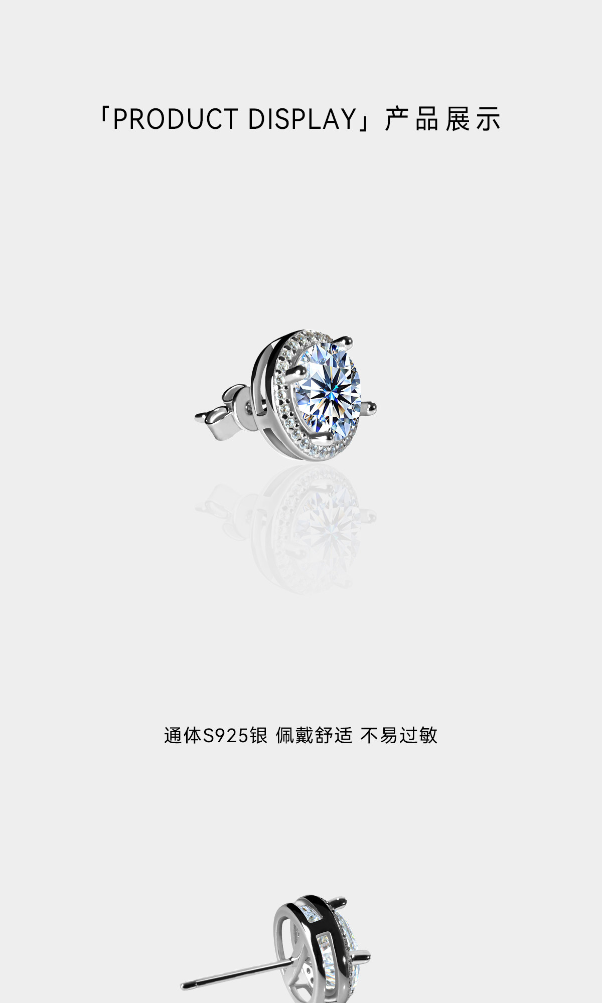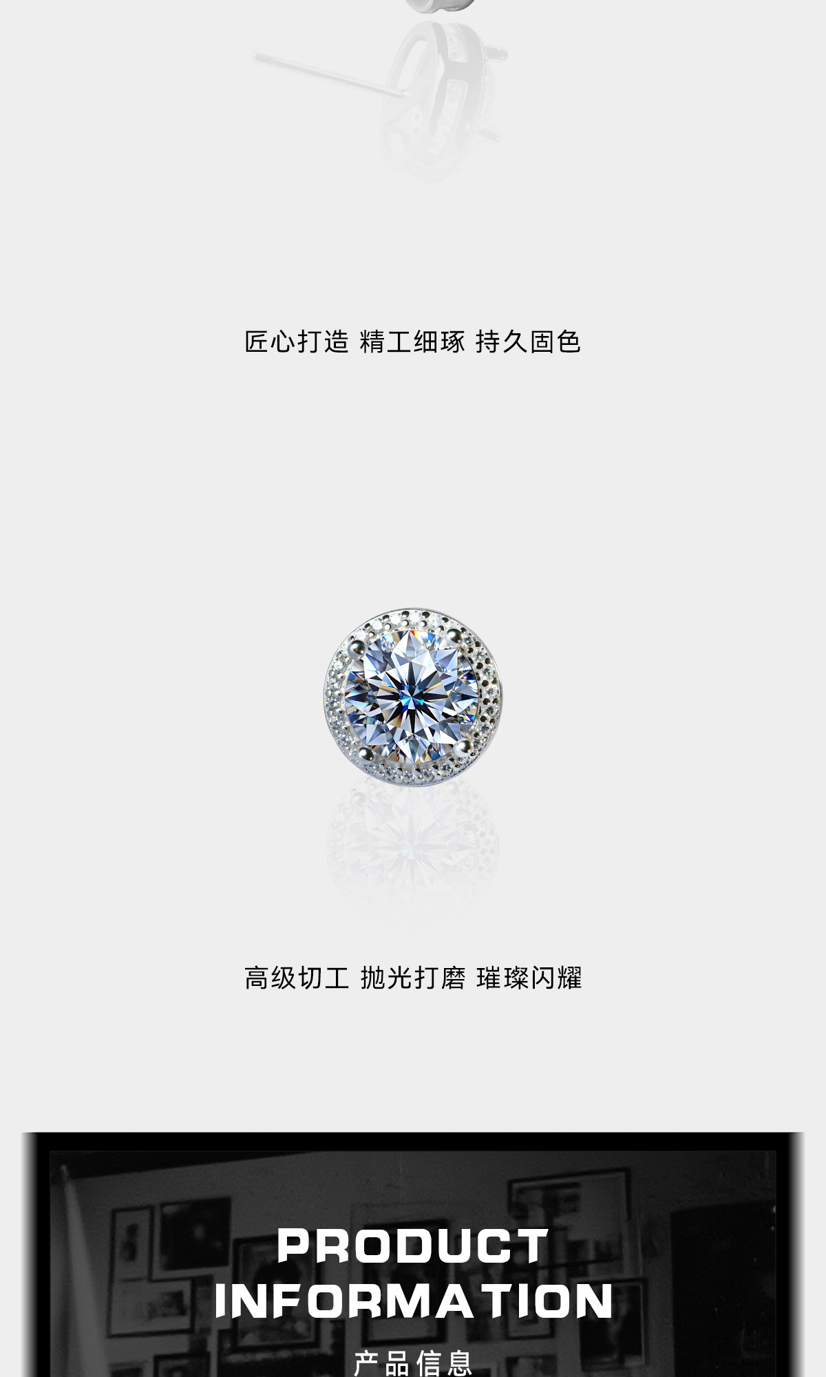 William Chan's Same Style Men's Earrings, High-End, Cool and Stylish, Pure Silver Moissanite Diamond, Single Piece, Niche Design