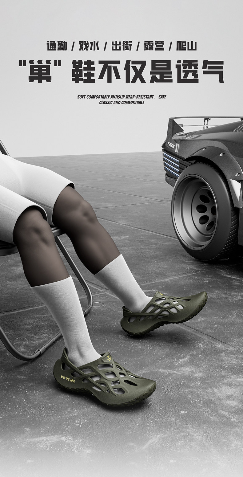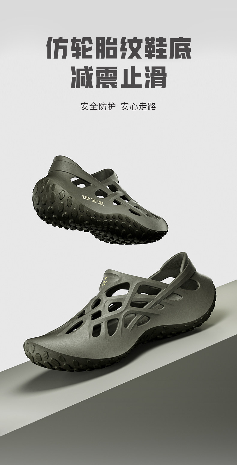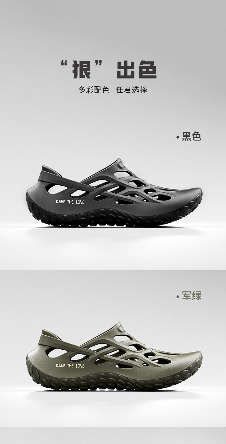 Fan Shuo Hollow Breathable Sports Sandals for Men, Summer Outdoor Closed-Toe Perforated Shoes, Non-Slip Lightweight Thick-Soled Casual Beach Shoes