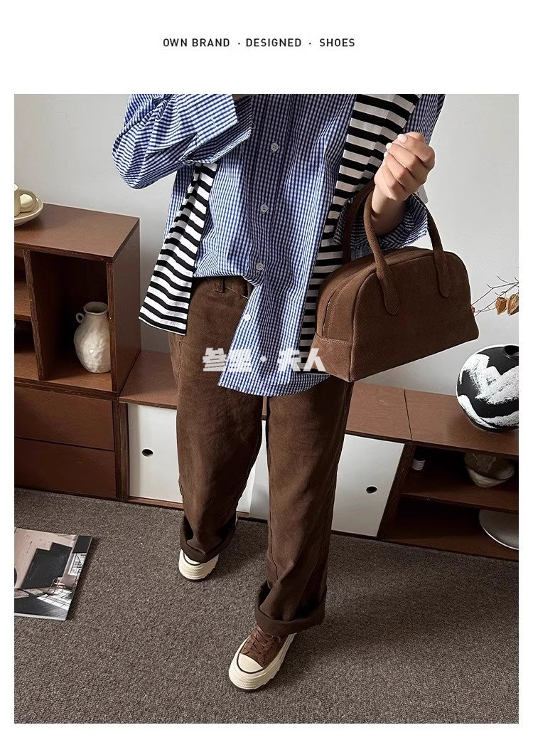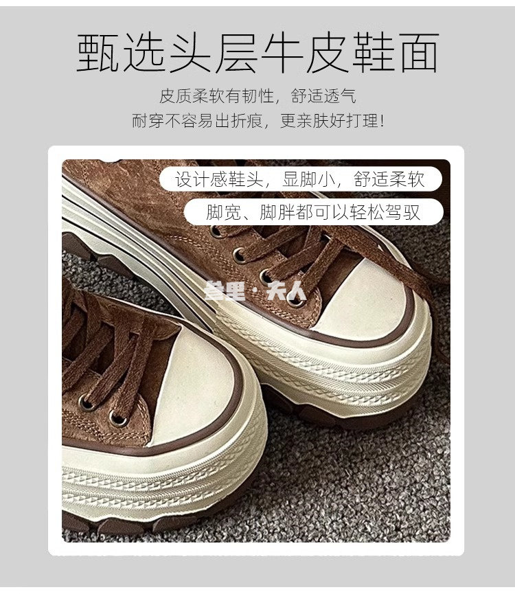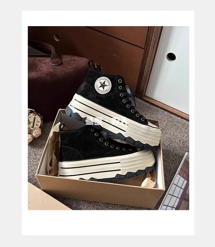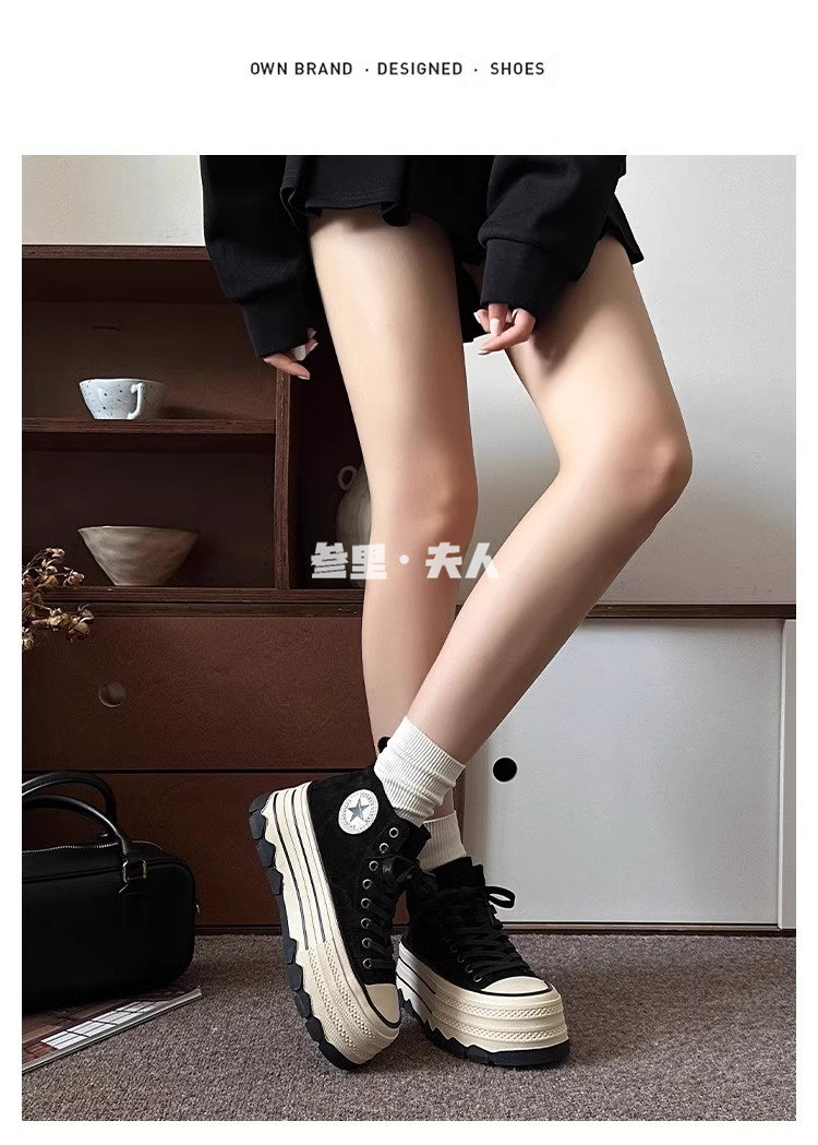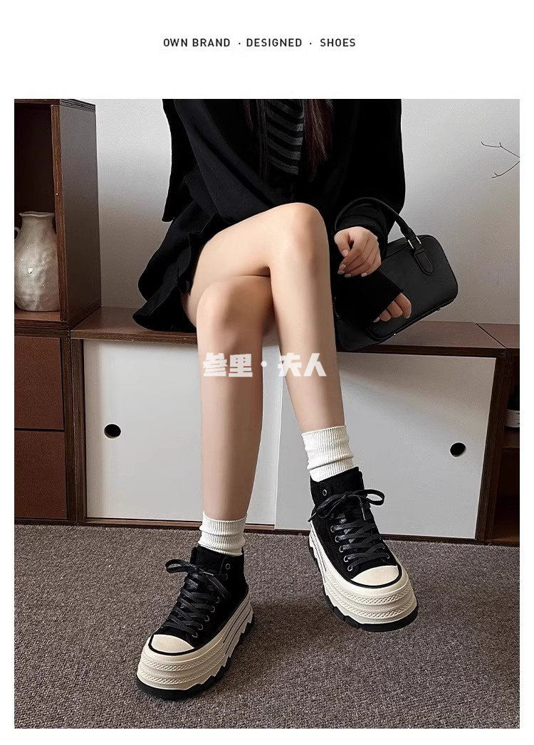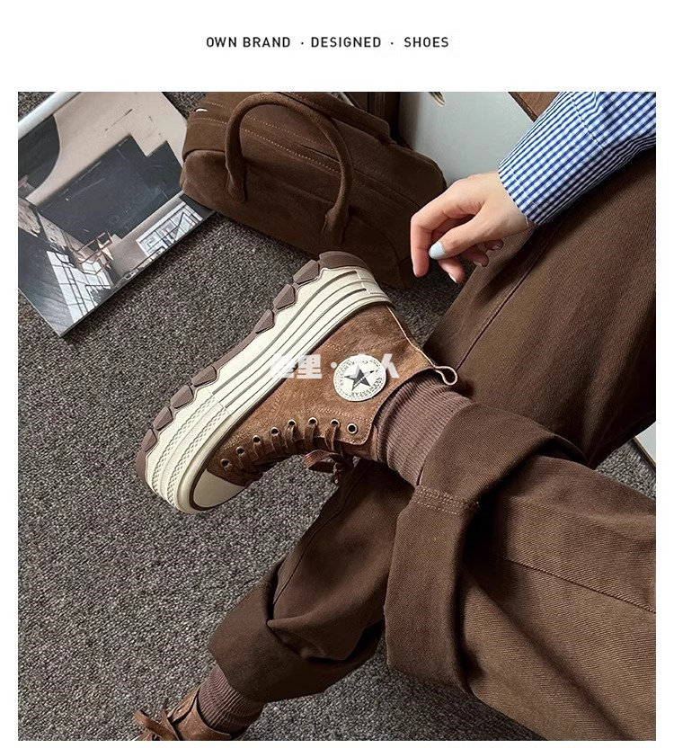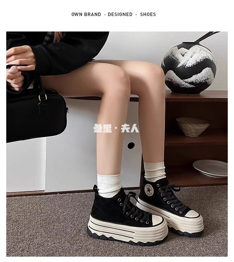 Italy Sanli~ Fashionable High-Top Thick-Soled Round-Toe Canvas Shoes for Women, Retro Style Versatile Suede Lace-Up Casual Shoes