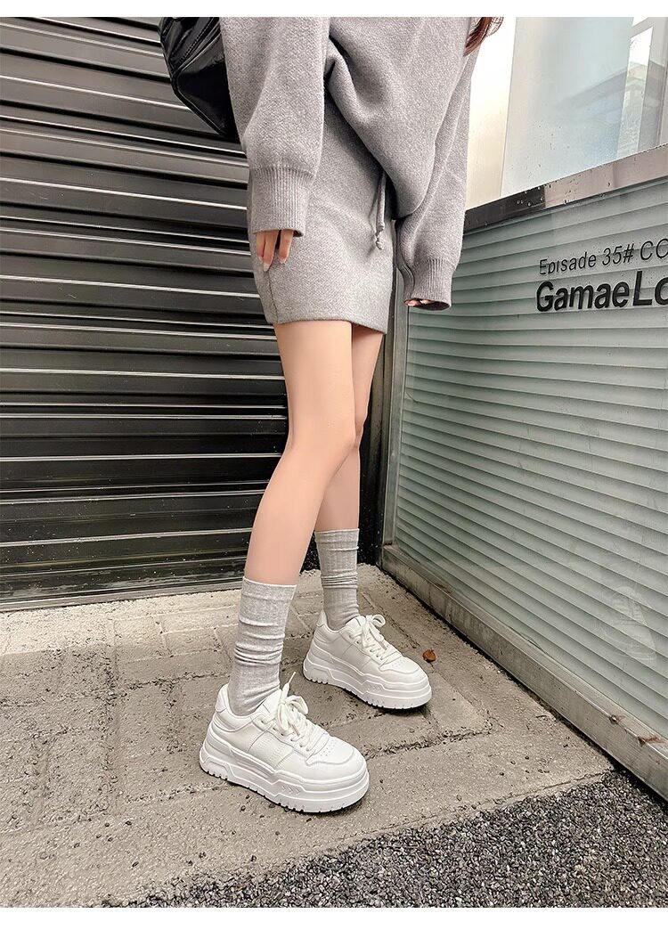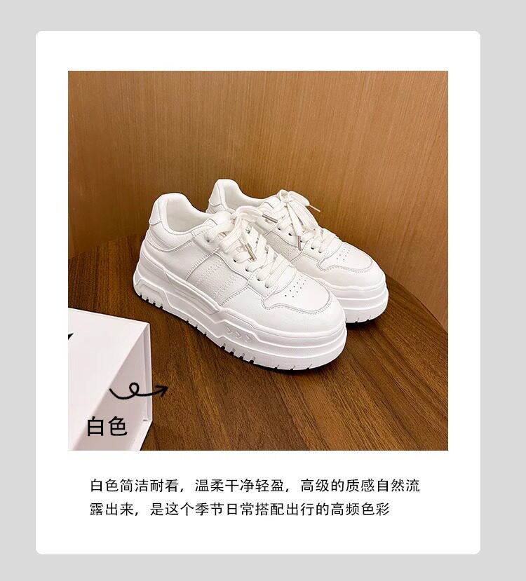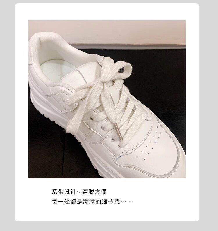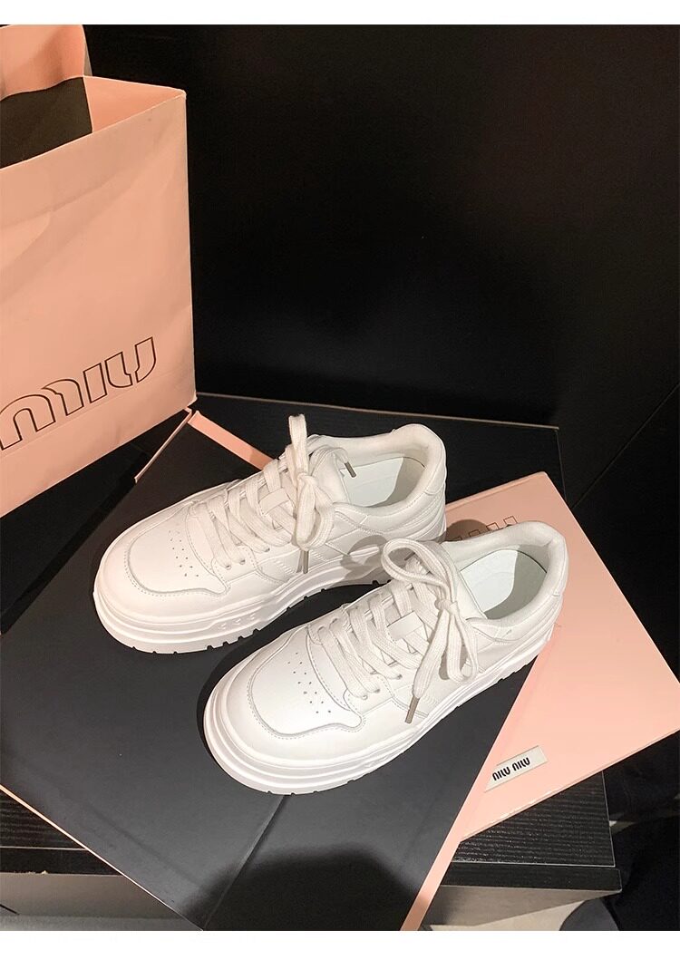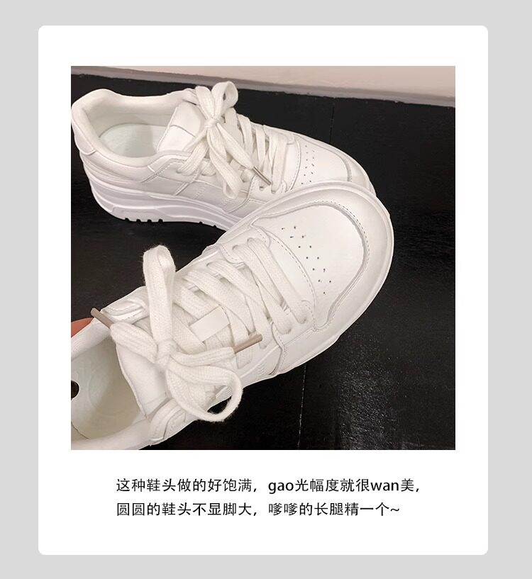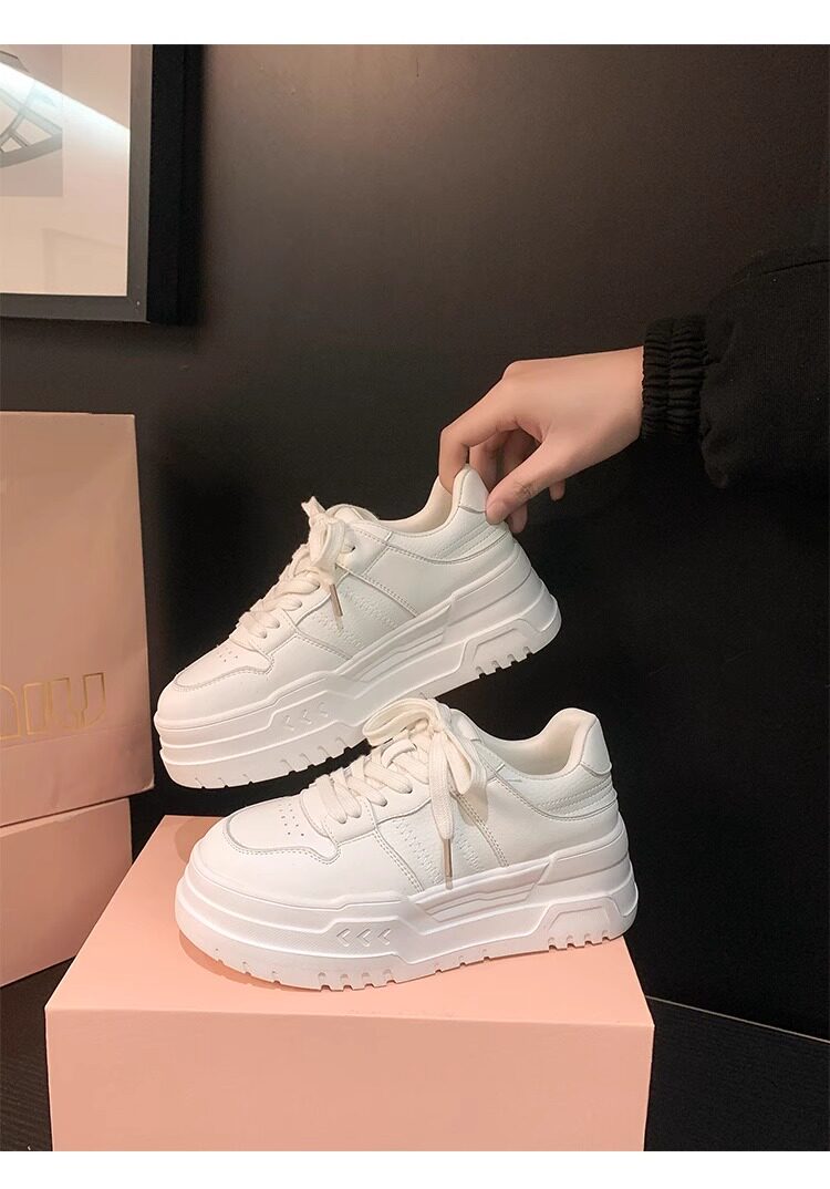 Hong Kong Genuine Leather Thick-Soled Casual Sneakers for Women 2026 Spring and Autumn New Breathable Versatile Round-Toe Sports Style White Shoes