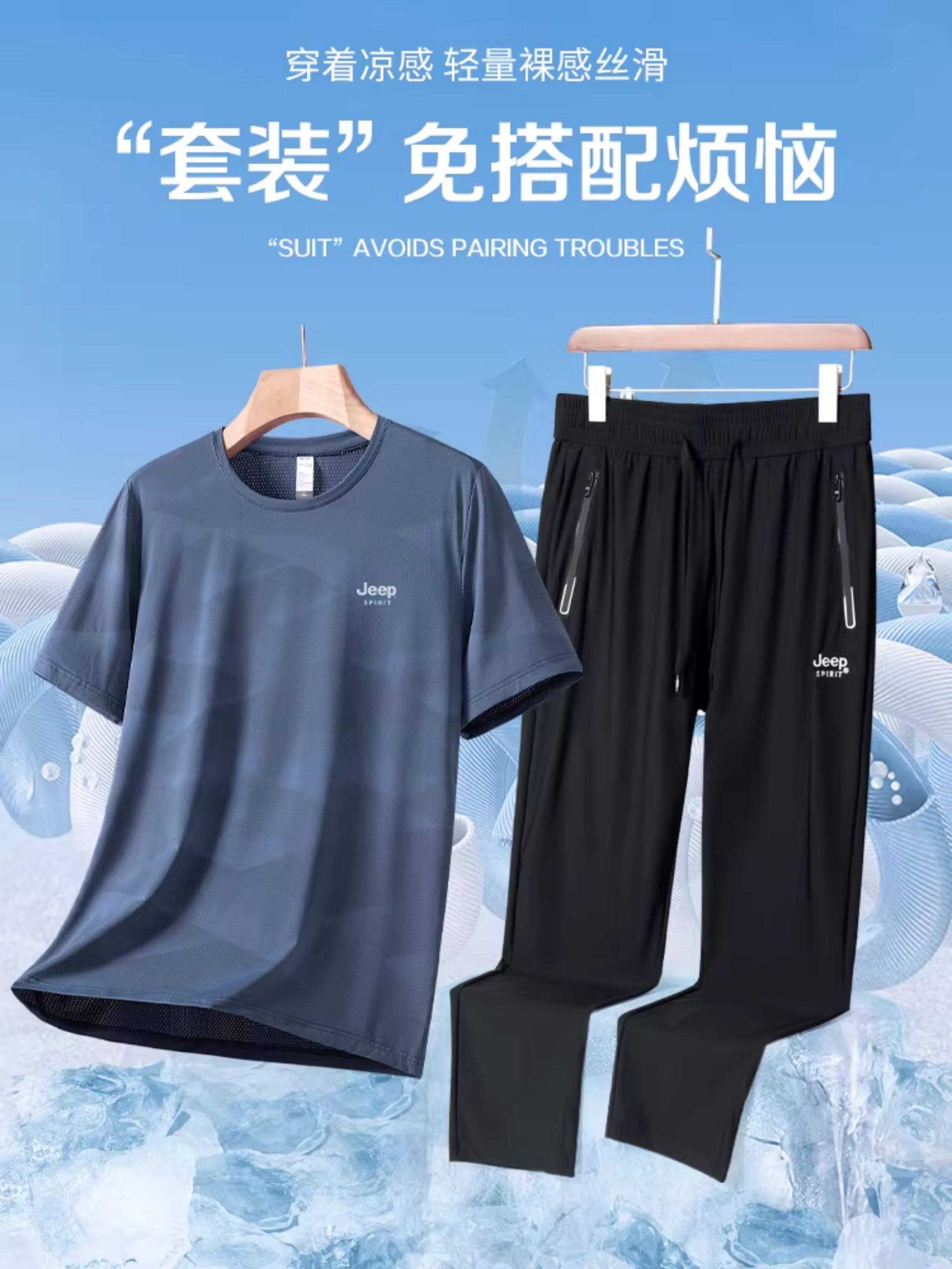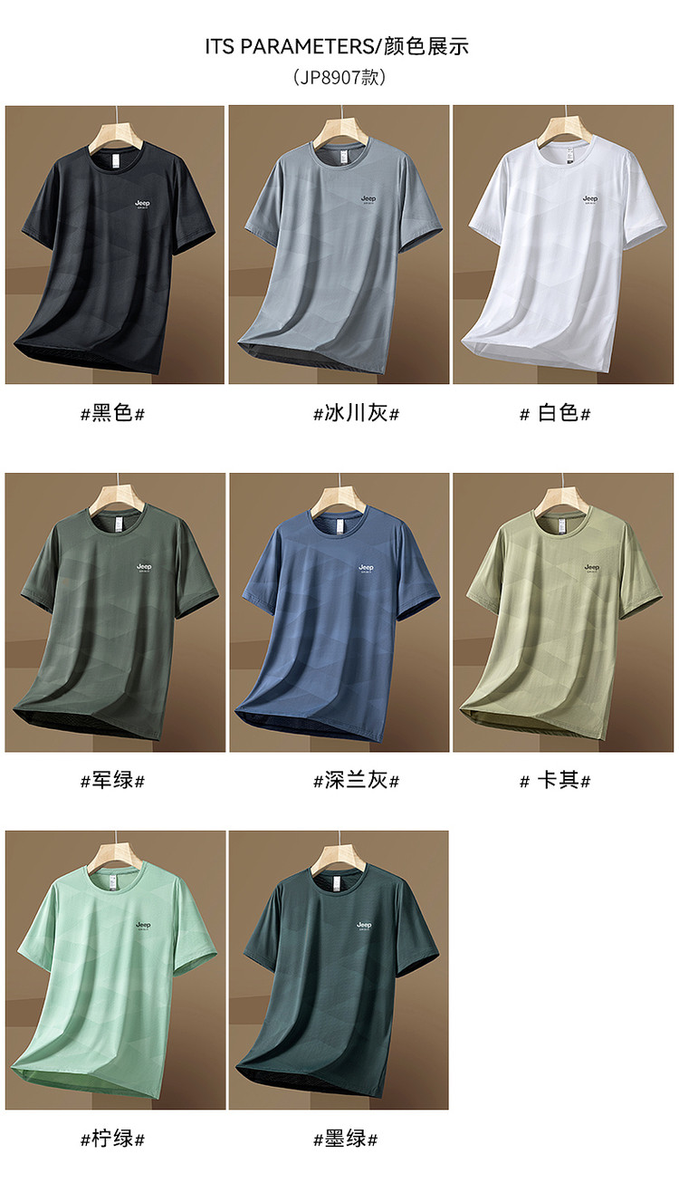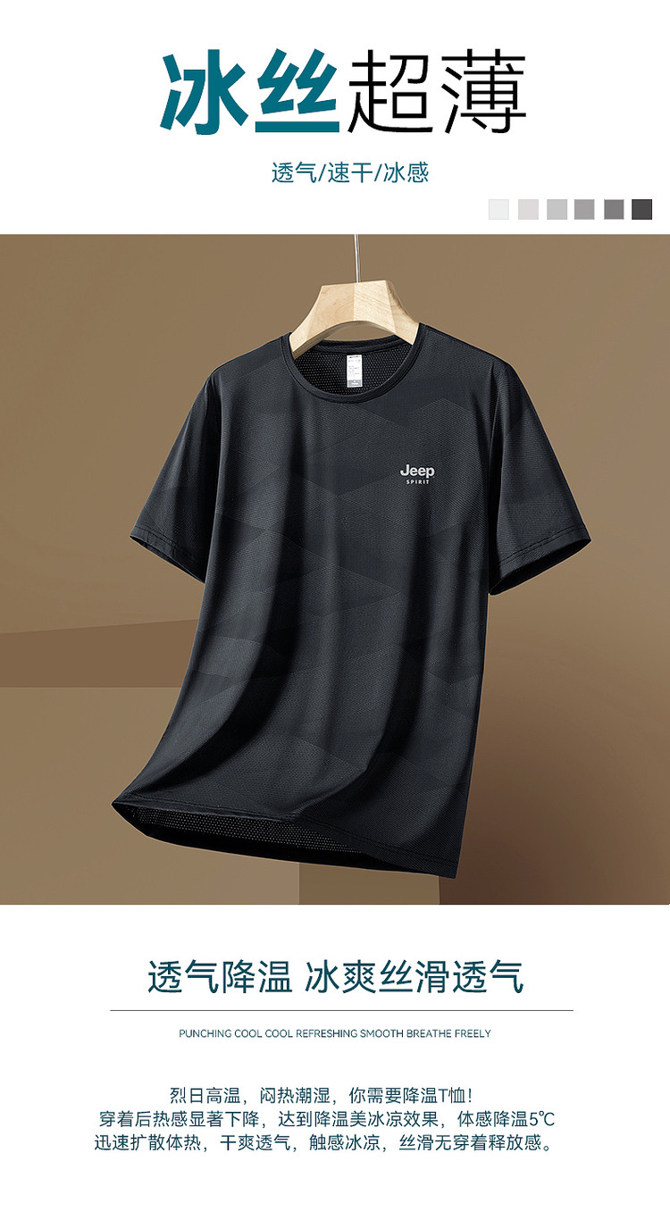 Jeep Men's Short-Sleeve T-Shirt 2026 New Style Summer Ice Silk Dad's Clothing Plus Size Quick-Dry Sports
