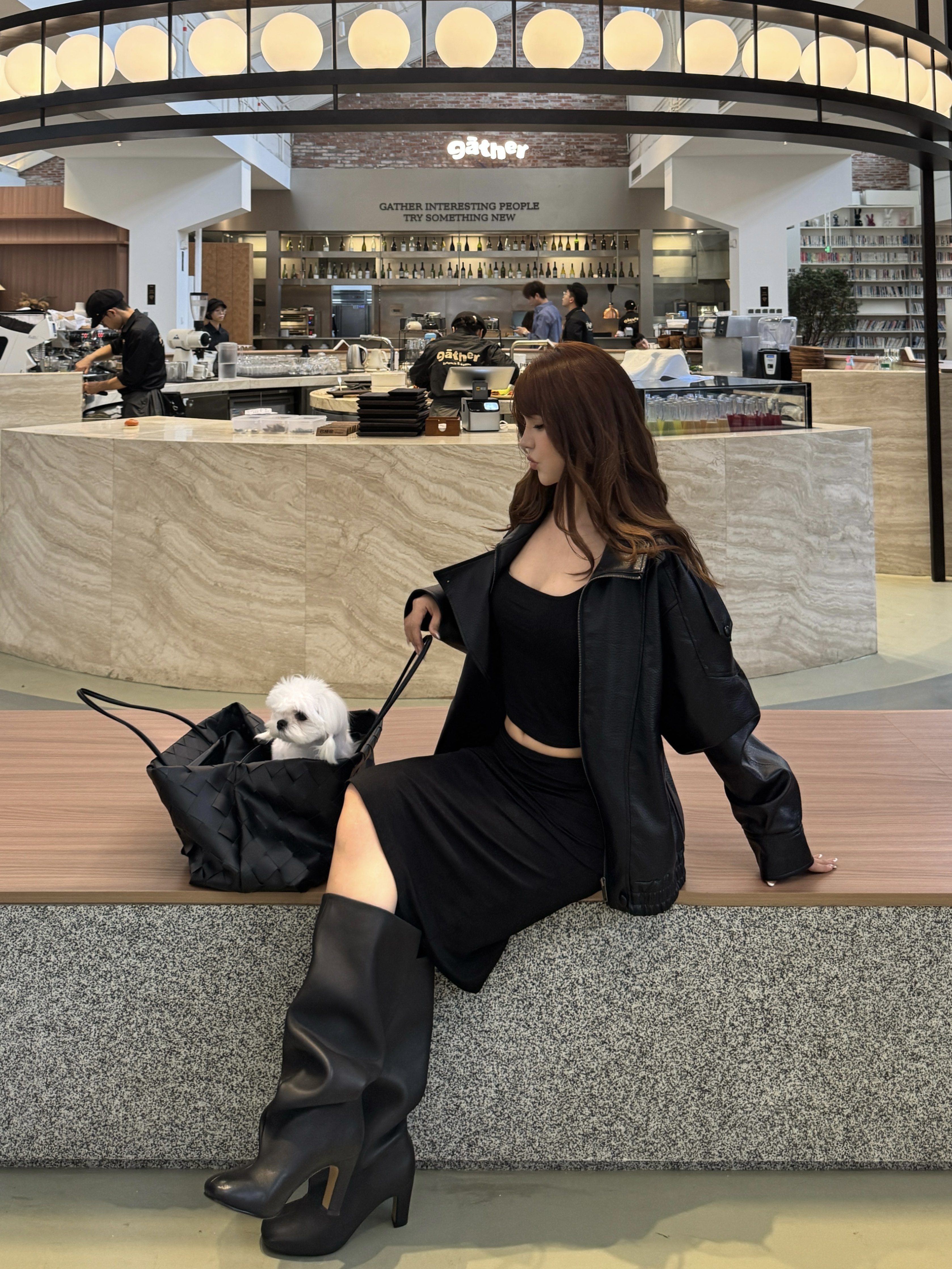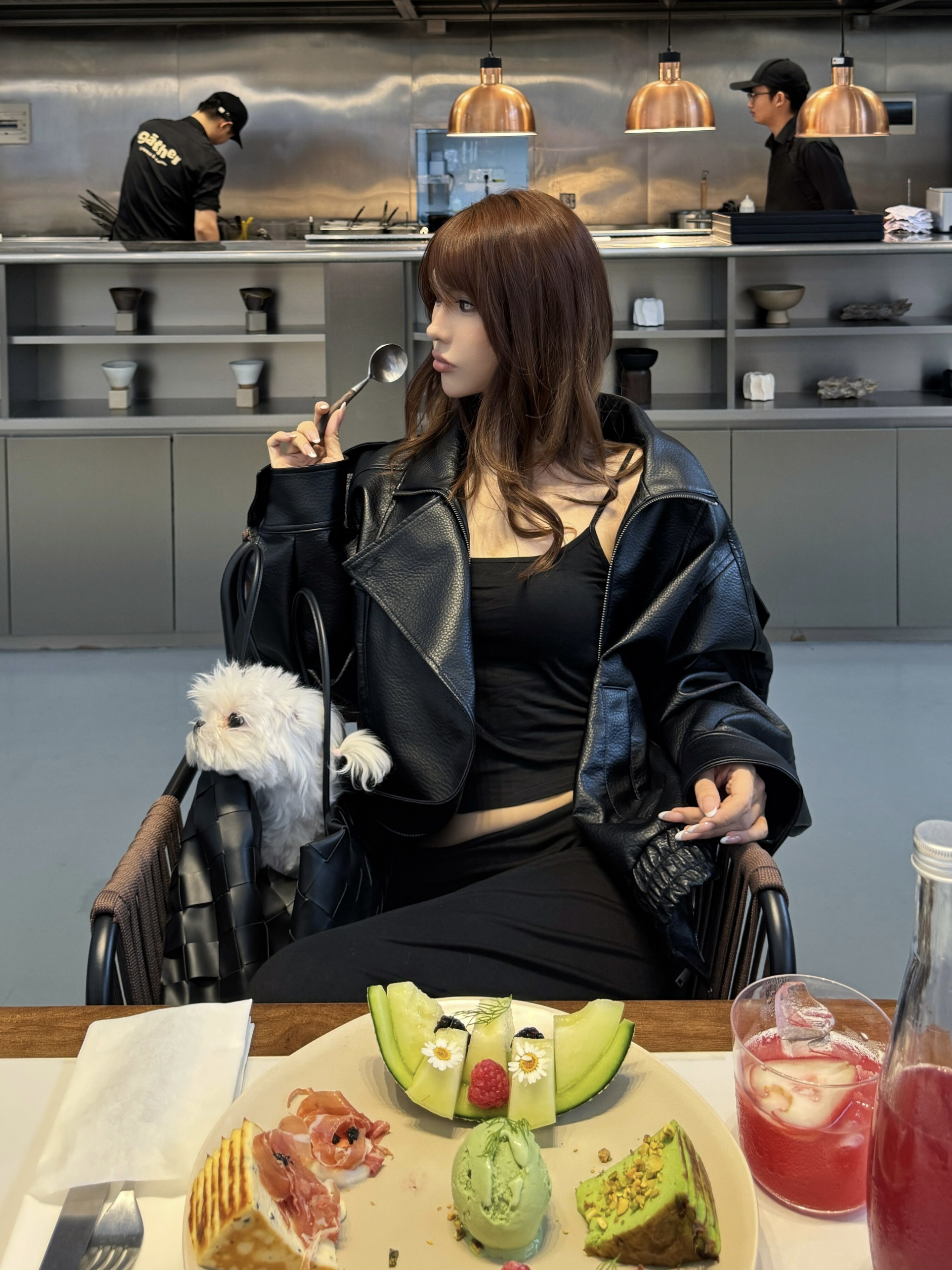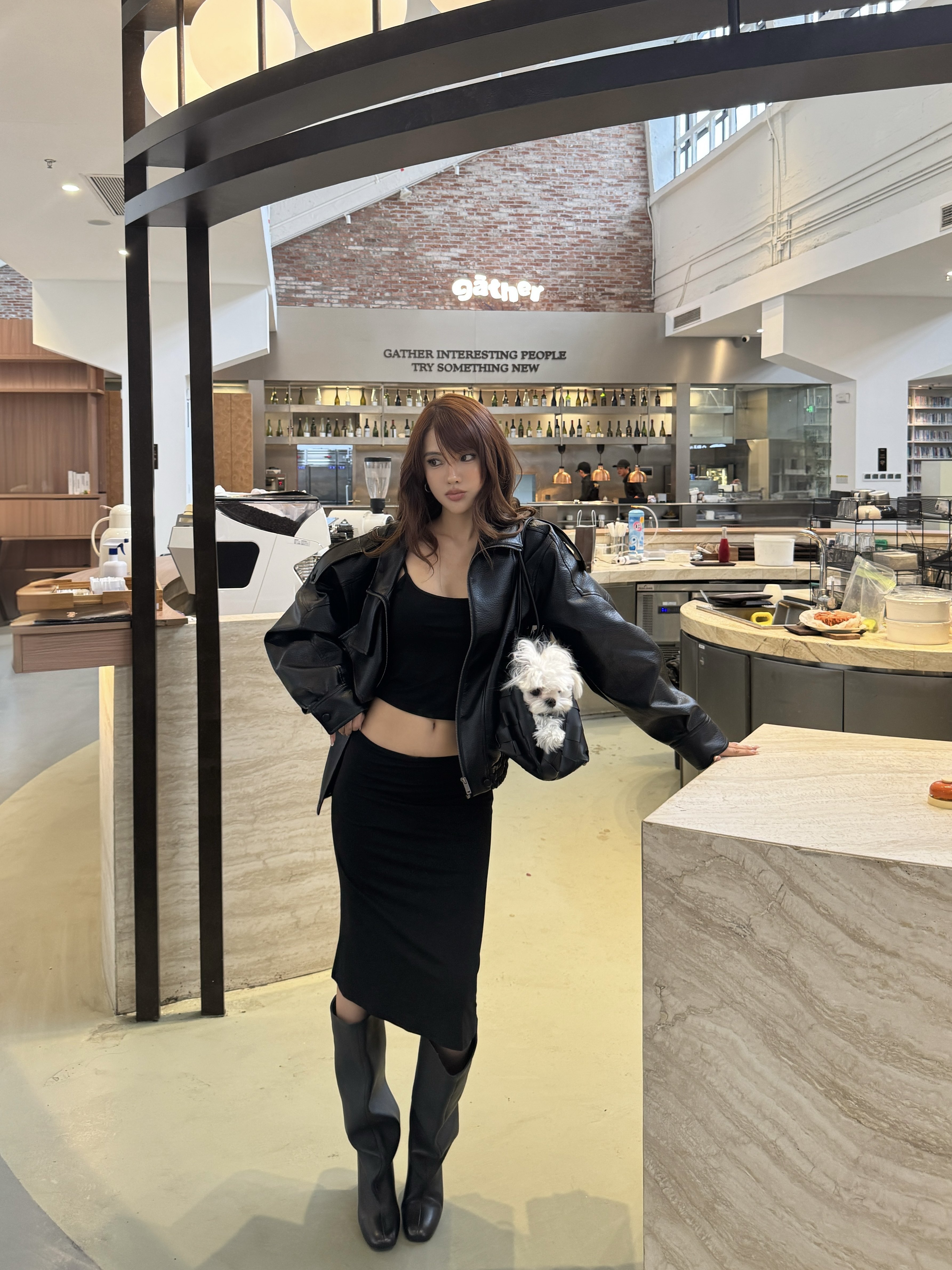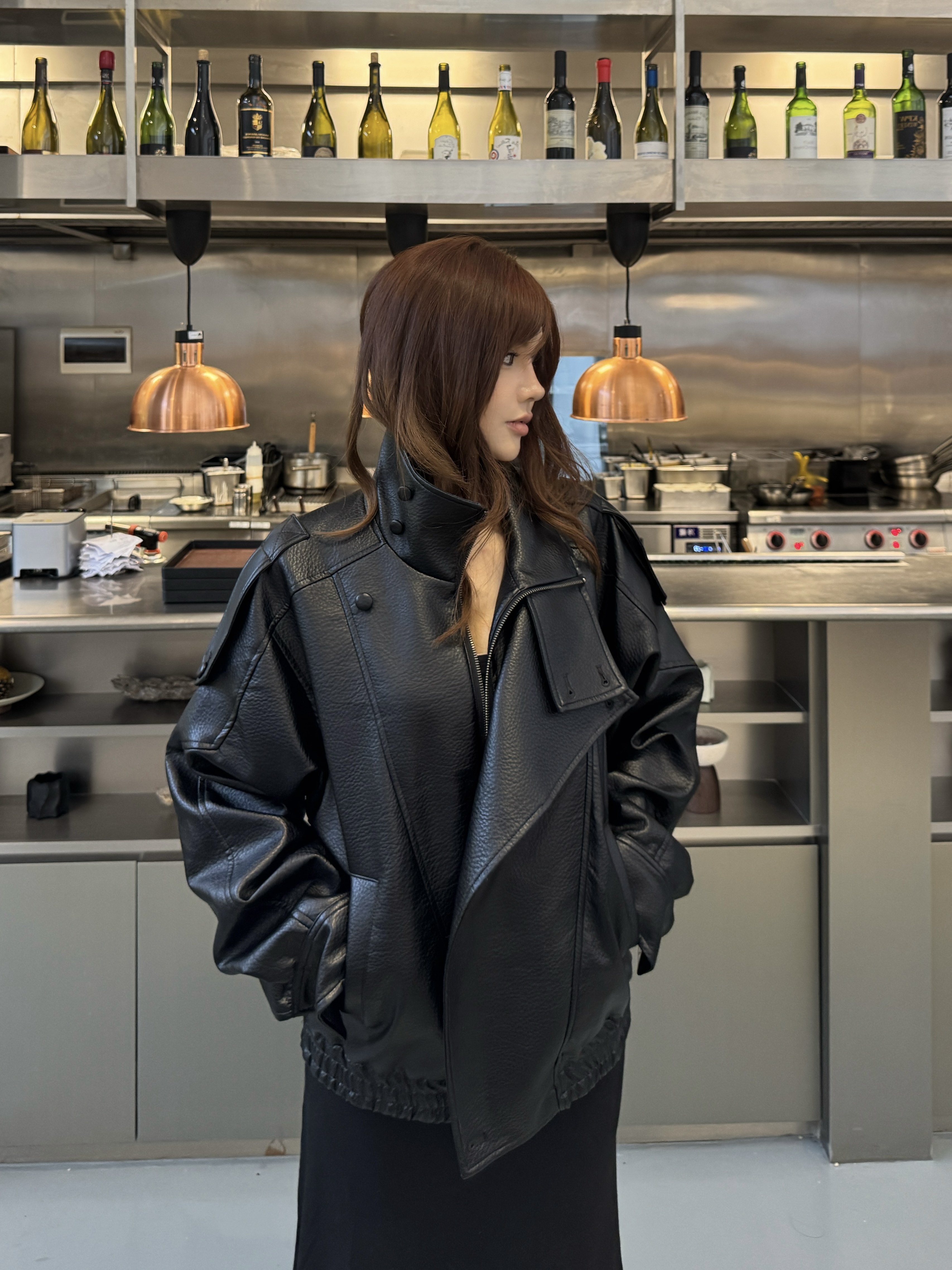 【Spicyfairyhood】 "Just Black" Pure Black Textured Fashionable Hot Girl Oversized Leather Jacket