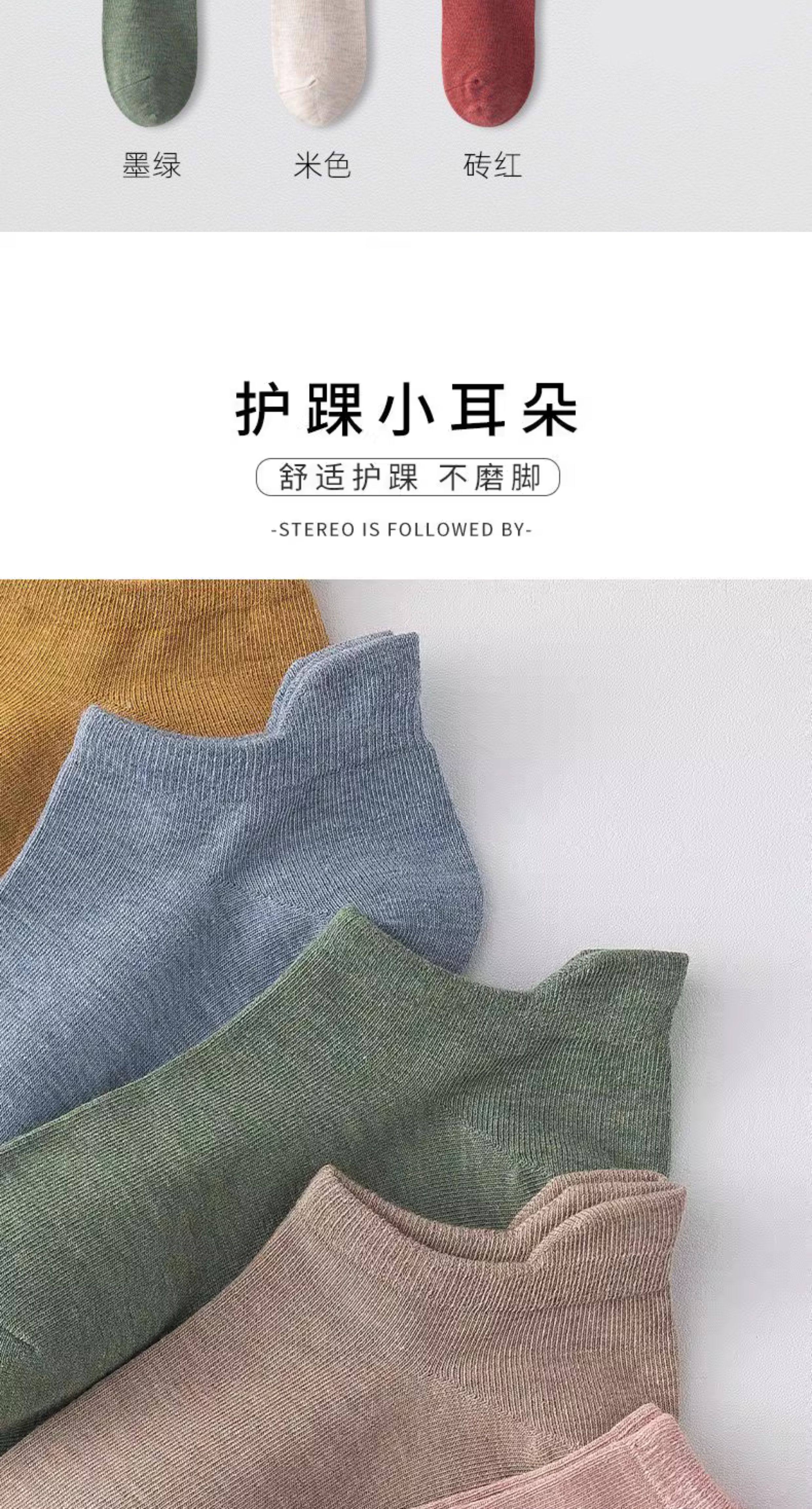 Women's Short Socks, Spring and Autumn Style, Short Cotton Socks, Non-Slip, with Ear Loops, No Heel Slippage, Odor-Resistant, Breathable, Women's No-Show Socks, Trendy and Versatile