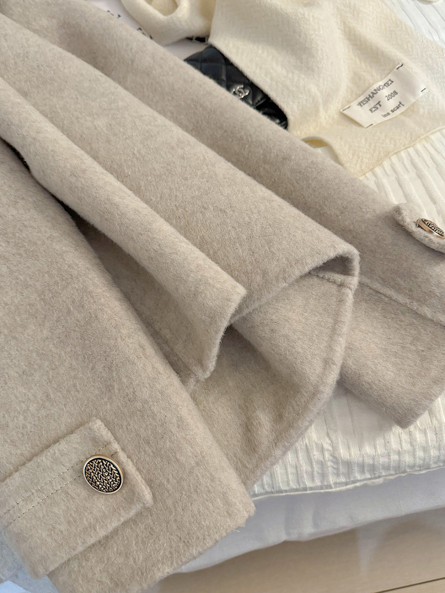 Oatmeal Color Simple and Elegant Double-Sided Woolen Short Coat for Women 2026 Autumn and Winter New Slimming Cashmere Woolen Coat