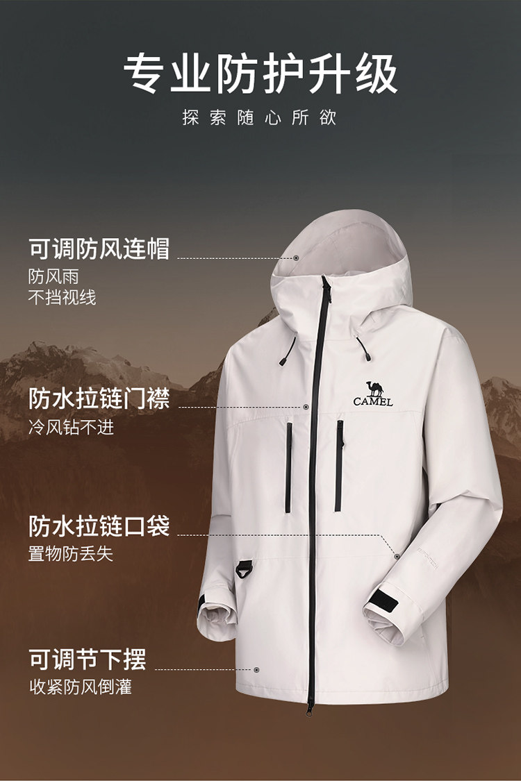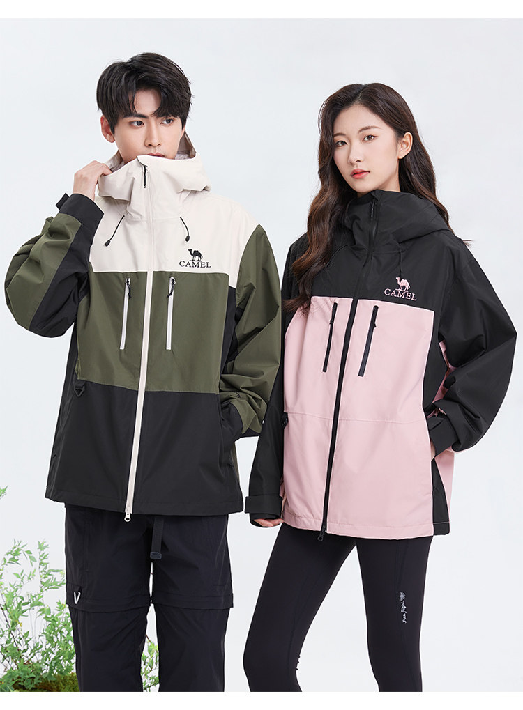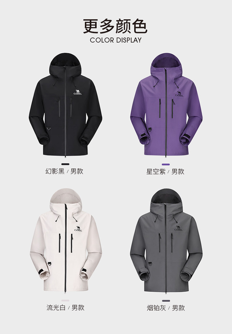 Camel Night Purple Hard Shell Waterproof Jacket for Men and Women, Outdoor Professional Windproof and Rainproof Mountaineering Clothing